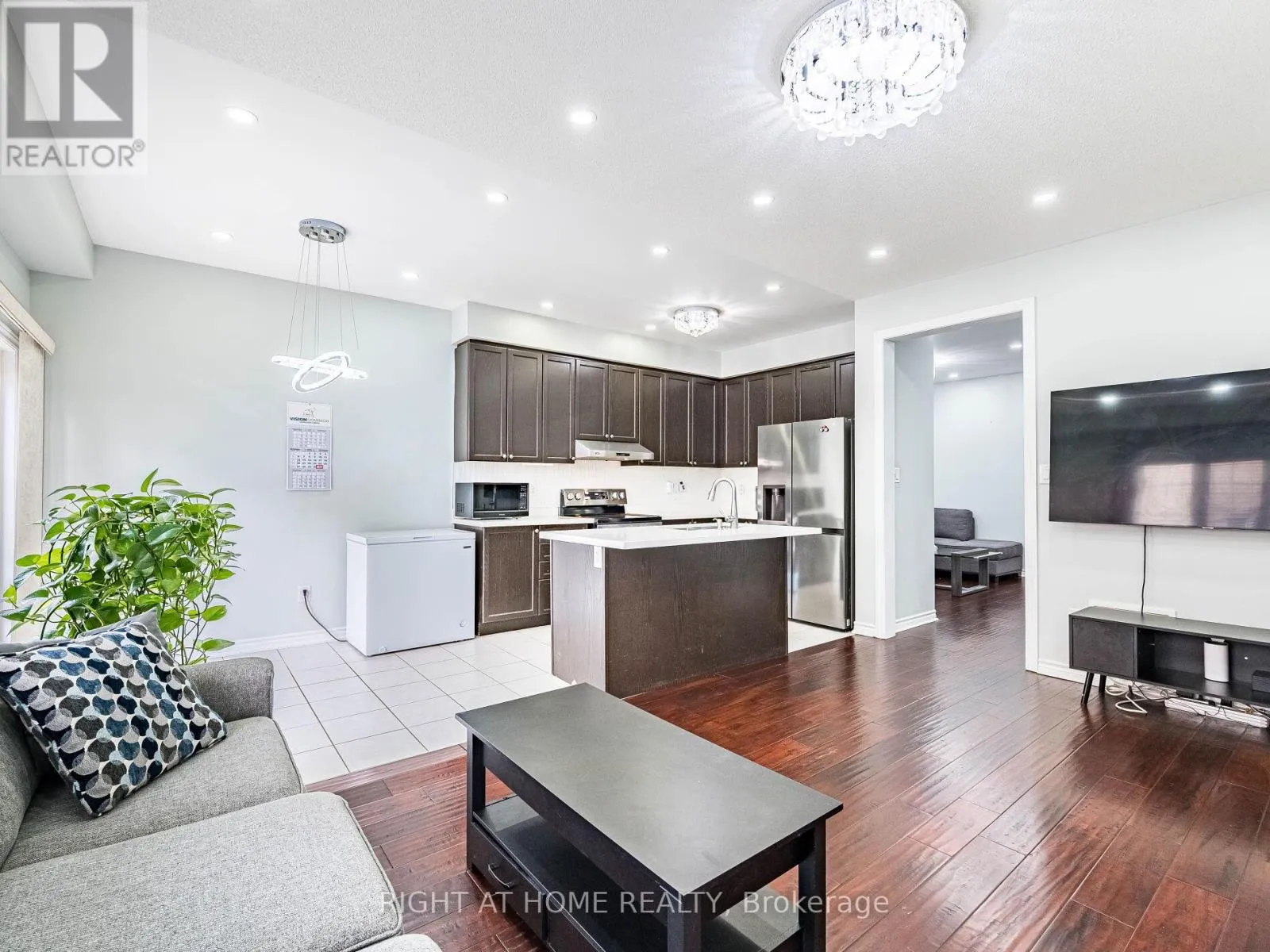 Derry & Sauve Absolutely gorgeous and bright 4-bedroom semi that feels like a detached! Features a separate basement entrance with 1 bedroom, den, family room, full washroom, bar counter, and laundry-ideal for extended family or rental potential. Spacious layout with two living areas, a large eat-in kitchen with quartz countertops and stainless steel appliances. High 9' sealing at the main floor. Only 11 years old, located on a child-friendly crescent, walking distance to schools, parks, and minutes to Hwy 401, GO Station, and Library. Fully upgraded with 2,000+ sq. ft., hand-scraped hardwood floors, neutral décor, modern light fixtures, pot lights, and 2nd-floor laundry. Move-in ready and beautifully maintained! (id:27476)