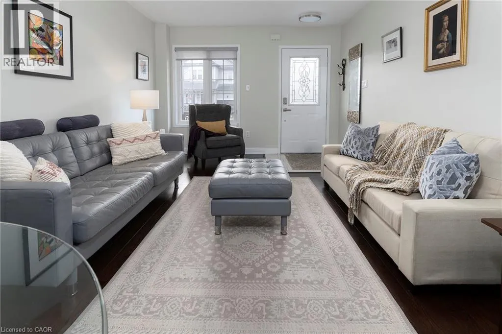 MAIN STREET TO SINCLAIR TO WATERS Welcome to this beautifully done 3 bed 3 bath semi in a 10+ Milton neighbourhood. This home would be a perfect fit for downsizing/empty nesters, first time home buyers and/or couples and small families, perfect amount of space and ideal location. This home offers pot lights, hardwood floors throughout and a great floor plan with open Liv Rm/Din Rm perfect for family nights at home or entertaining. The Kitch is a chefs dream offering S/S appliances, plenty of cabinets & prep space on the beautiful dark counters there is a bonus breakfast area with large island with storage and seating. The main floor is complete with the convenience of 2 pce bath. Upstairs offers 3 great size bedroom. The master w/4 pce ensuite and walk-in closet is a perfect retreat. There is also a 3 pce bath to complete this floor. There is even more space in the basement with a beautifully done Rec Rm. w/built ins & electric FP, perfect for family movie & game nights. Enjoy the tranquility of the back yard with fully fenced yard, spacious deck and gazebo. This home checks ALL the boxes and is close to ALL conveniences such as elementary schools, high school, GO Station, shopping, sports park, trails and so much more!!! (id:27476)