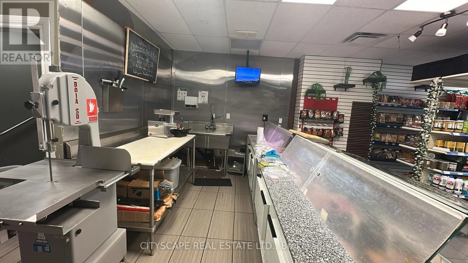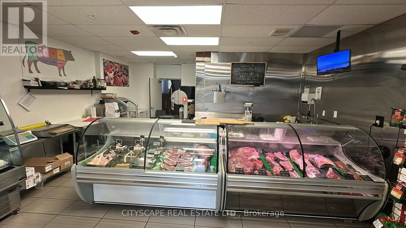 Derry Rd W and Thompson Rd S Amazing opportunity to own an established butcher shop for HALAL / grocery / prepared food business Very Busy Plaza. in a prime location in Milton at Derry Rd W and Thompson Rd. S. Very Profitable Business & Fully Equipped Butcher Shop. Approx. 870 sq ft main floor including retail storefront, Very Low Rent for $3,472/ Month 4 years remaining and 5 y optional. Landlord Will Negotiate 5-Year Term Lease. The owner is planning to travel out of Canada. All Equipment is in Excellent Condition. Turnkey Business Fully equipped and operational, ready for immediate business- Catering to a Loyal Customer Base Specializing in fresh meats and grocery items for the local community-Why This Business? Prime Location: High foot traffic in a vibrant plaza, ensuring great visibility in a Residential Area. Available on Insta and have its own Website. Established & Growing Proven track record of success with a growing customer base. Fully Equipped All necessary equipment and fixtures included. Profitable, Strong revenue potential and room for growth. This turnkey butcher shop and grocery store offers everything you need to step into a profitable business with a solid foundation and plenty of room for continued growth. (id:27476)