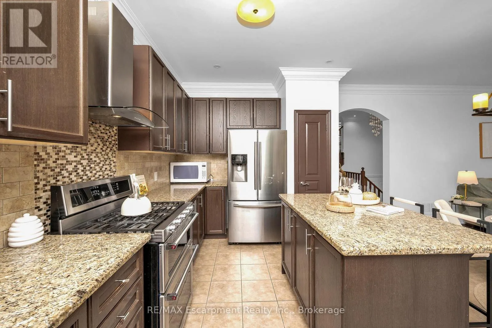 Cross Streets: Main St-Savoline Blvd. ** Directions: Main St W to Savoline Blvd to Kincardine Terrace (East) to Huddlestone Cres (North). Elegant 4-Bedroom + Separate Entrance Finished Basement Detached Home on a Premium Lot in the Heart of Milton! Welcome to this beautifully upgraded home offering over 3,500 sq.ft. of total finished living space (2720 sq.ft above finished floor + finished basement), 4 bedroom, 4-bathroom home that offers the perfect blend of comfort, style, and functionality! Nestled in a beautiful, family-focused crescent, where children safely play, this home is truly a place to grow, make memories and thrive. The main floor features a bright and spacious layout with elegant decorative wall panels, a newly painted interior, and an impressive family room with soaring high ceilings and a walk-out to a large balcony, creating an open and inviting atmosphere. The modern kitchen showcases quality finishes, ample cabinetry, and a walk-out to a big deck - ideal for family gatherings and outdoor entertaining. Upstairs, you'll find generously sized 4 bedrooms filled with natural light, including a primary suite with a walk-in closet and spa-inspired ensuite. The fully finished walk-up basement offers a Separate Entrance, a full bathroom, and a second kitchen, providing an excellent opportunity for an in-law, or potential rental income. There is also a rough-in for a separate washer and dryer, adding even more convenience and flexibility today's families need. Enjoy nearby scenic trails, parks, and green spaces-ideal for walking, biking, and spending quality time outdoors. With total 6 parking spaces, this turn-key home provides privacy and flexibility with plenty of separate living spaces. Conveniently located close to top-rated schools, hospitals, forested trails, sports centres, shopping, dining and major highways. (id:27476)