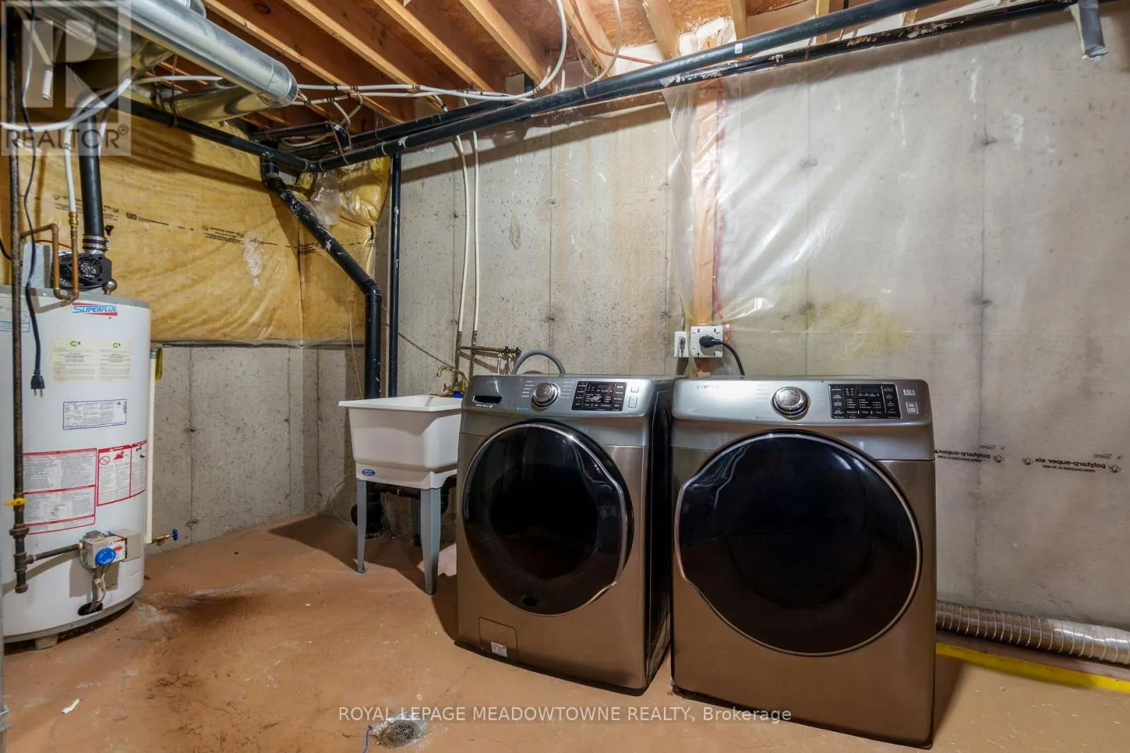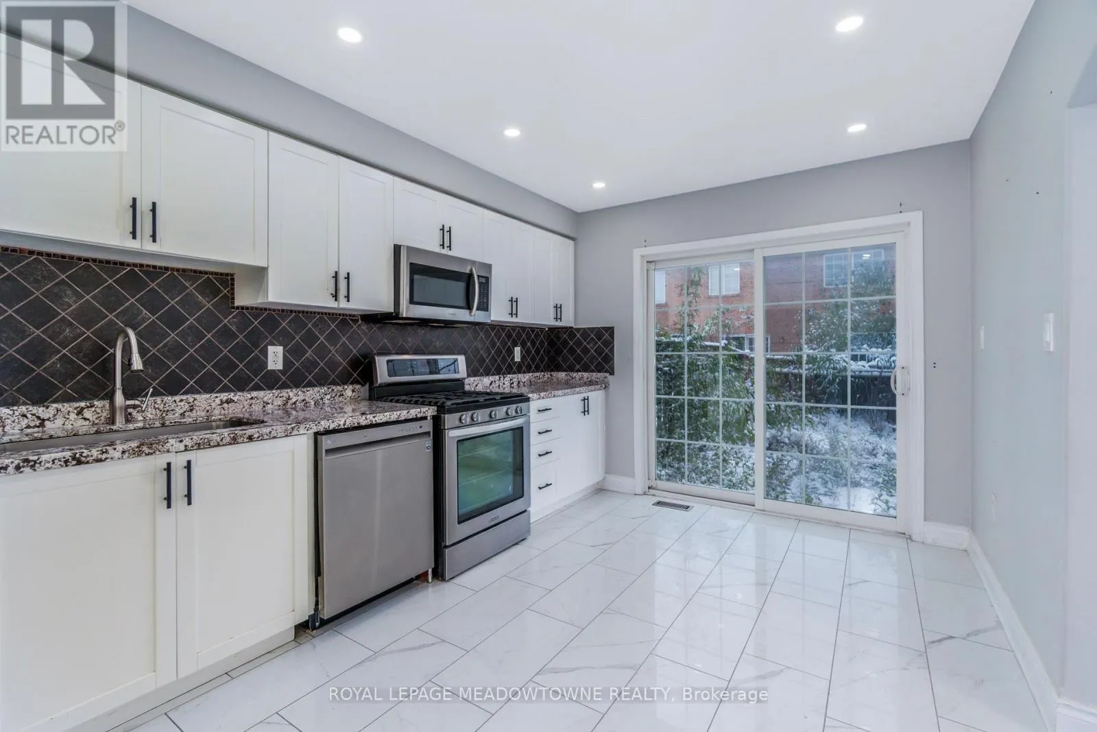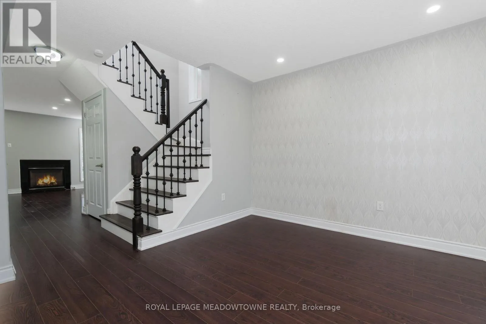 Cross Streets: Derry/Thompson. ** Directions: Derry Rd-Thompson Rd - at Corner of Clark and Thompson. Welcome to this 3-bedroom, 3-bathroom semi-detached home in Milton's highly sought-after Beaty neighbourhood. Perfectly situated within walking distance to schools, parks, shopping, restaurants, and the Beaty Library, with quick access to major highways for an easy commute. A covered porch welcomes you to the home. Inside, the spacious formal living and dining area at the front features a large bright window, pot lights, and stylish laminate flooring. The layout flows seamlessly into the cozy family room, highlighted by a gas fireplace and two windows overlooking the fenced backyard. The updated eat-in kitchen overlooks the family room and showcases modern white cabinetry, granite countertops, tile backsplash and convenient access to both the garage and backyard. An updated powder room completes the main level. Upstairs, the bright staircase with wrought iron spindles leads to three generous bedrooms and two full bathrooms. The primary suite offers laminate flooring, a walk-in closet, and a 4-piece ensuite complete with a large granite-topped vanity, separate shower, and deep soaker tub. The additional bedrooms feature laminate floors and ample closet space, while the main 4-piece bathroom includes an oversized vanity with granite counter and a tub/shower combo. The unfinished basement provides a great layout, a rough-in for a future bathroom, and endless possibilities to create the perfect space for your family. With a single-car garage and parking for 2-3 more vehicles on the driveway, this home truly combines comfort, convenience, and value in one of Milton's most desirable areas. (id:27476)