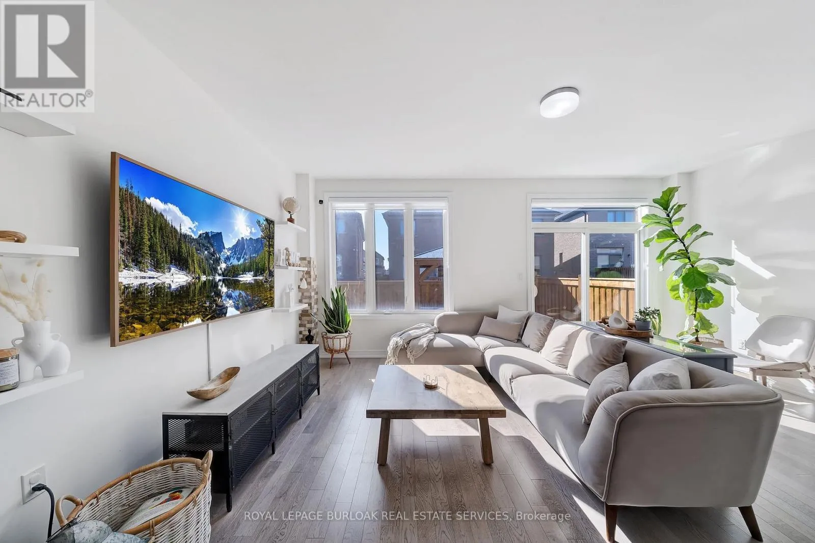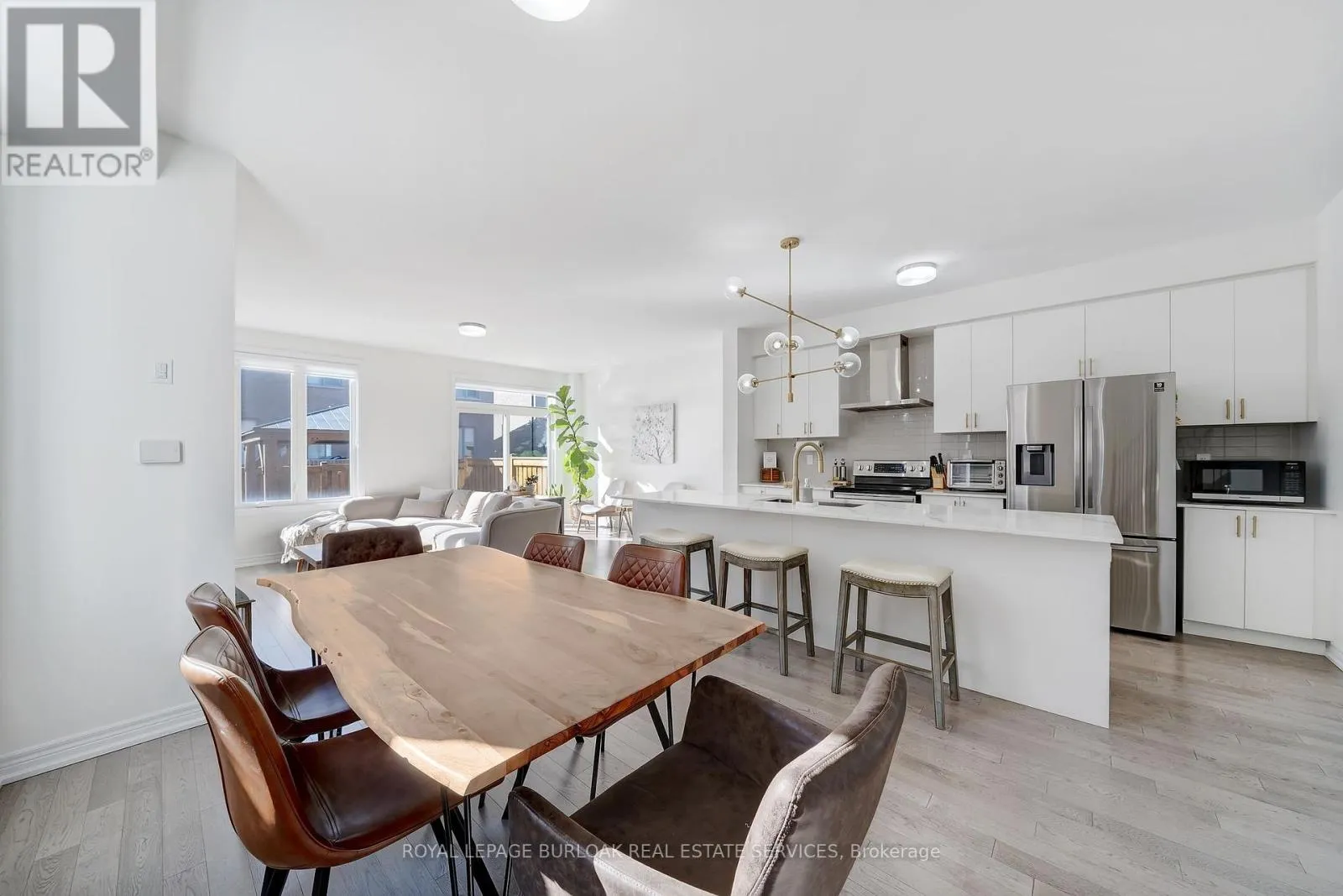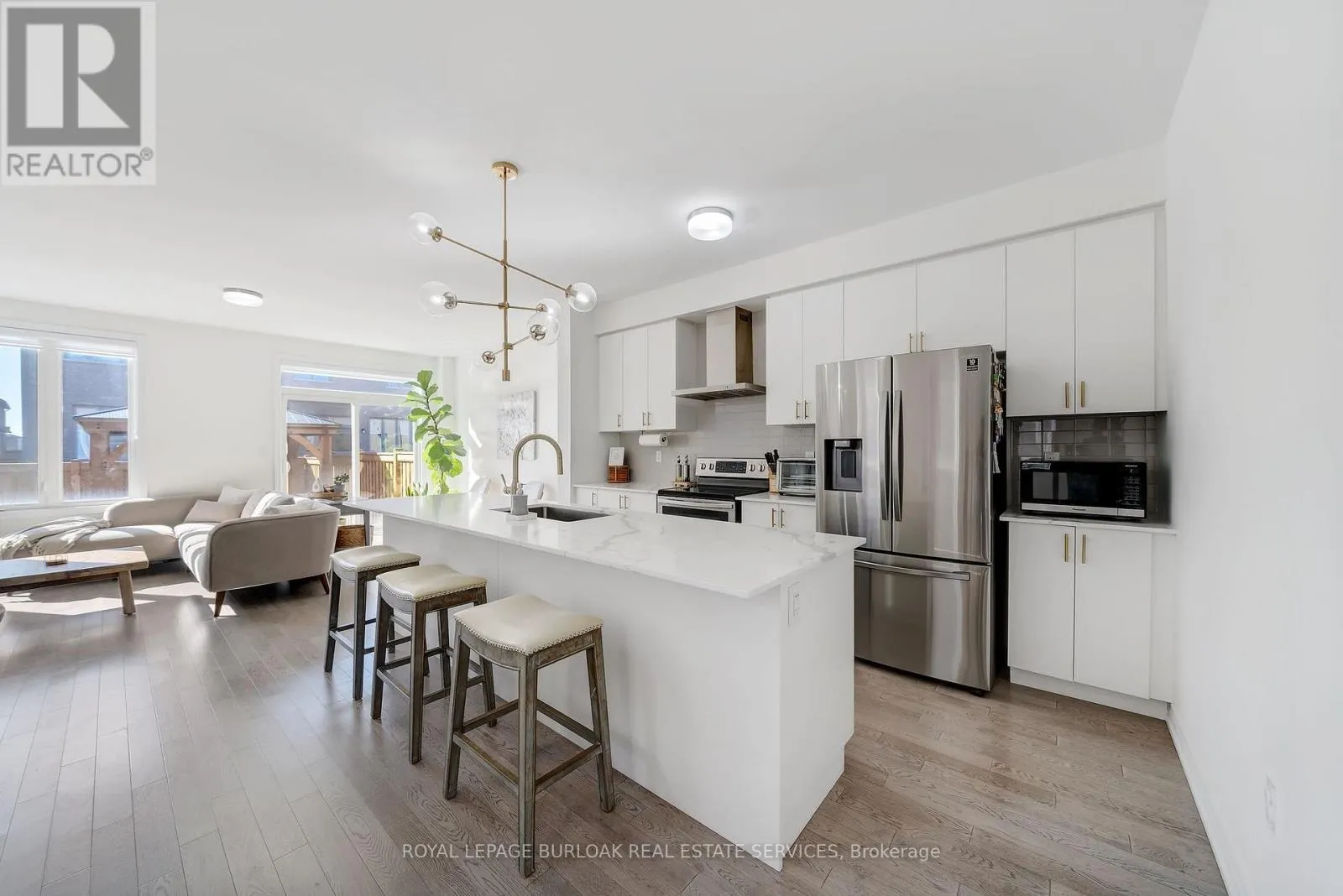 Farmstead/Parent Welcome to 1264 Chee Chee Landing in Milton, a beautifully maintained 3-bedroom, 3.5-bath semi-detached home built by Country Homes offering 2,269 sq. ft. of bright and functional living space. Situated on a quiet, family-friendly side street, this home sits on a fully fenced pie-shaped lot featuring a hardscaped patio and gazebo-perfect for outdoor entertaining. The open-concept main floor boasts 9' ceilings, a chef-inspired kitchen with an oversized island ideal for gatherings, and a separate dining area overlooking the spacious family room filled with natural light. Upstairs, the primary retreat includes a 4-piece ensuite and walk-in closet, while the additional bedrooms are generous in size and conveniently located near the bedroom-level laundry. The finished basement with a side entrance and 4-piece bath offers flexible space for guests, a home office, or an in-law suite. Additional highlights include an upgraded staircase, an extended front patio providing extra parking, and EV rough-in. Nothing todo but move into this sought-after family home in one of Milton's most desirable neighbourhoods (id:27476)