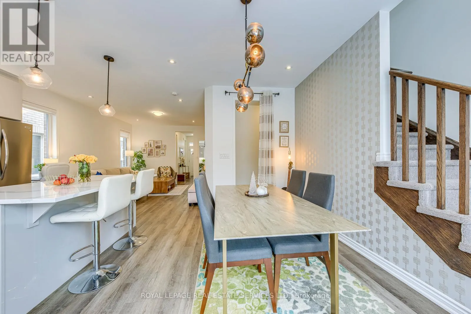 Cross Streets: Thomspon/Kennedy. ** Directions: Thompson Rd to Whitlock. Welcome to this Stunning Freehold Premium End-unit Townhouse with Semi-detached appeal offers side access to good-sized backyard with new fence (2022). This beautifully Modern Mattamy home open-concept main floor w/ Sun-Filled Living Spaces, creating bright and welcoming spaces throughout the day with soaring 9-foot ceilings with Spacious Bright Great Room and internal access To Garage featuring potential separate entrance to the extra Hight basement. Gourmet Kitchen with Luxury Upgrades - Quartz countertops, upgraded cabinetry, gas range, built-in microwave in island, upgraded deep sink, double-door fridge, and designer light fixtures create a chef's dream space. this home is move-in ready with premium finishes. Second floor presented the Master Bedroom with Ensuite with refined finishes And Walk-in Closet. Two additional generously sized bedrooms and convenient upper-level laundry offer both style and function for the modern family. Located in family Friendly Community - Cobban is one of Milton's newest quiet neighbourhoods, excellent infrastructure, and a strong sense of community among young families. Walking distance to Nearby Cedar Ridge Public School-Brand new state-of-art elementary school, opened 2024, featuring modern learning spaces indoor & outdoor. Steps away to Cobban new park , this 3.7-acre park features a splash, sports fields, and open green spaces where kids love to play year-round. It's become the heart of the community. Convenient Shopping & diverse dining options - Metro and FreshCo, Shoppers, banks and many more in the nearby plaza. Seamless Commuting & Ultimate Convenience - The newly widened Britannia Road connects directly to Highways 401 &407 for effortless GTA commuting or public transportation along with Milton GO Station. The attached Feature sheet includes a long list of upgrades and features for this amazing house. (id:27476)