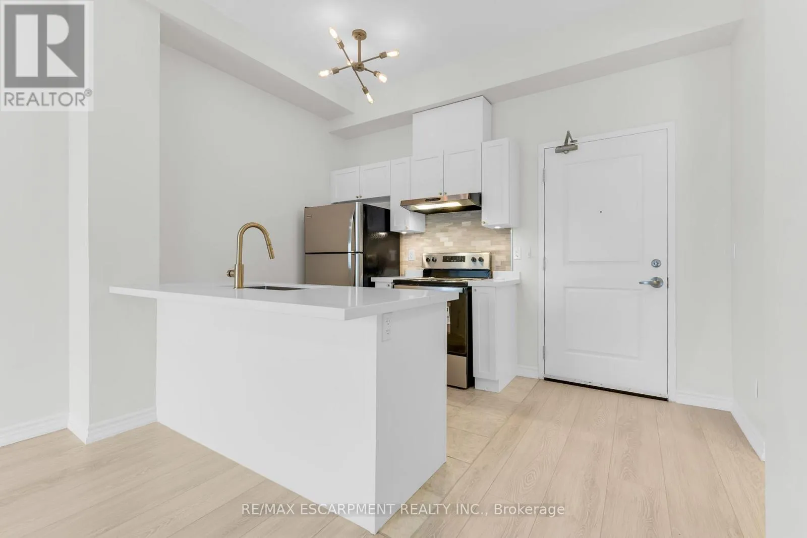 Laurier Ave & Costigan Rd Nestled in Milton's desirable Clark Community, this beautifully appointed condo is move in ready and sure to please! Featuring an open concept floorplan and 10' ceilings, this unit has been updated with quality in mind including new luxury vinyl plank flooring, Quartz countertops, modern accents and freshly painted in neutral tones throughout! Natural light from large windows invites you into the unit with a fully equipped kitchen that offers new Quartz countertops, modern accents, S/S appliances and a breakfast bar overlooking the spacious living room w/ access to the large balcony. The spacious primary bedroom features a large window and spacious closet with ensuite privileges to the modern 4pc bath. In-suite laundry, underground parking & use of 1 locker is also included in the lease of this beautiful unit! For larger gatherings, there's a party room as well as convenient visitor parking! Close to all major amenities: Major Hwy Access, Parks, Golf, Shopping & more! Immediate possession available. A MUST SEE! (id:27476)