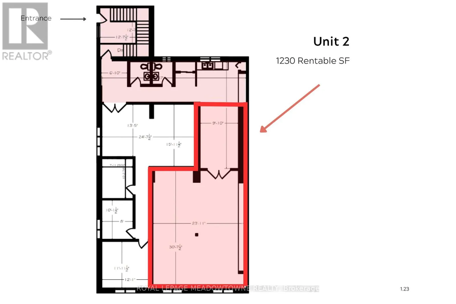 Corner of Main and Ontario 2nd floor office space at one of Milton's busiest intersections (Main & Ontario) offering prime visibility and accessibility. Ideally suited for a law practice, property manager, commercial lender, mortgage or insurance professional seeking synergy with Royal LePage Meadowtowne Realty, a top-producing residential + commercial brokerage anchoring the building. This bright 1,230 SF office offers open-concept flexibility, natural light from two full front windows, and room to customize or divide. Features a private 2nd floor entrance plus access to shared kitchen and washrooms. Ready for buildout or immediate occupancy. (id:27476)