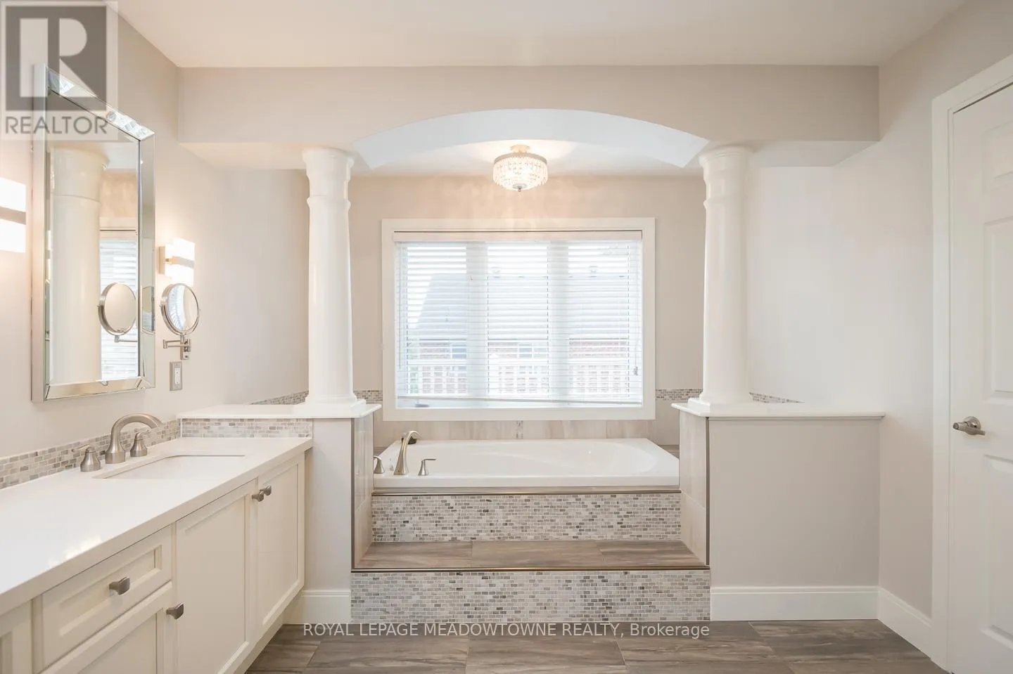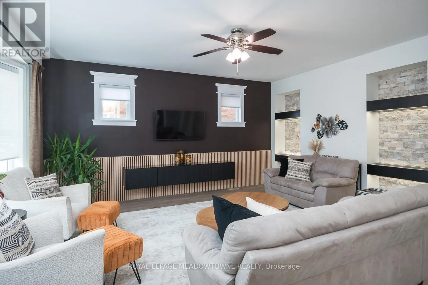 Cross Streets: Yates Dr & Livock Trail. ** Directions: Yates-Livock-Lingen. Welcome to this stunning detached 5+2 bedroom, 5-bathroom home located in the highly desirable Coates neighbourhood, known for its excellent schools, family-friendly parks, and easy access to amenities. Boasting parking for up to 7 vehicles (4 in the driveway and 3 in the garage), this home features a welcoming covered porch and a grand front foyer that sets the tone for the spacious layout throughout. The wide, private backyard is perfect for entertaining with hardscaping and beautiful perennial gardens, plus convenient garage access to both the mudroom and yard. The bright eat-in kitchen offers a large island with seating, rich dark cabinetry, a walk-in pantry, stainless steel appliances, and a gas cooktop, all overlooking the open-concept family room with custom built-in shelving. The formal living and dining rooms showcase luxury vinyl flooring, elegant wall features, and recessed lighting. Upstairs, find five comfortable bedrooms, including a primary suite retreat with a private balcony, 5-piece ensuite, and dual walk-in closets, along with Jack-and-Jill bathrooms, a powder room on the main floor, and convenient upper-level laundry. The finished basement expands the living space with two additional bedrooms, a 3-piece bath, a cozy sitting area with an electric fireplace, a wet bar, and extra laundry facilities-ideal for extended family or guests. This exceptional home blends functionality, comfort, and style in one perfect package. (id:27476)
