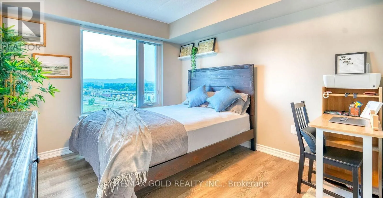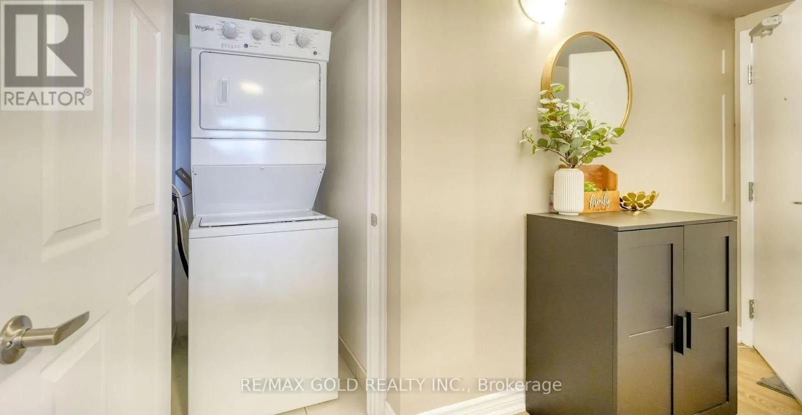 Thompson Rd / Main St E Modern 2+1 bedroom, 2 bathroom condo in one of Milton's most desirable locations, just steps from the GO Station, Superstore, restaurants, banks, shops, and the Milton Arts & Leisure Centre. This bright, open-concept unit features large windows, a modern upgraded kitchen, spacious living/dining areas, Laminate flooring, in-unit laundry, and a private balcony with panoramic city views. The primary bedroom features a walk-in Closet and 4 piece ensuite. The versatile den is perfect for a home office or guest space. Includes all Branded Appliances(Fridge, Stove, B/I Dish Washer, Washer & Dryer), One Surface Parking Spot & One Locker. Enjoy premium building amenities including a Party Room, Roof Top BBQ Terrace, Meeting Room, Guest Suite, Visitor's Parking. Ideal for first-time buyers, investors, or those seeking stylish, low-maintenance living. Easy access to Hwy 401/407, Toronto Premium Outlets, Glen Eden Ski Resort, Kelso conservation area, scenic trails, parks, and top golf courses. Move In & Start Enjoying An Executive Lifestyle. (id:27476)