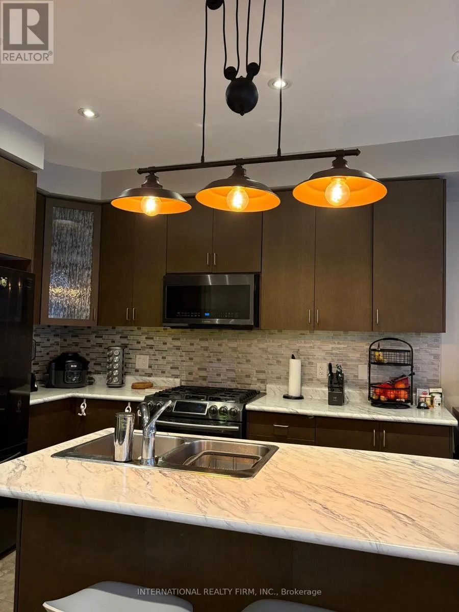 Bronte/Britannia Luxurious 1,641 sq/ft, 3-bedroom townhome featuring a bright and spacious layout. The main floor offers 9 ft ceilings, oak stairs, and a modern open-concept kitchen with a centre island and breakfast bar, overlooking a generous breakfast area with a garden-door walkout to the yard. Enjoy the open-concept living/dining room and a private main-floor den-perfect for a home office. The grand primary bedroom includes a walk-in closet and a spa-like 4-piece ensuite. Located close to parks, trails, top-rated schools, shopping, highways, the GO Station, and more (id:27476)