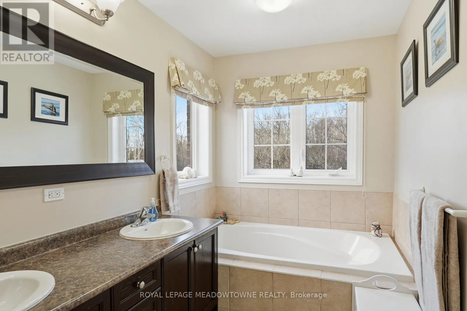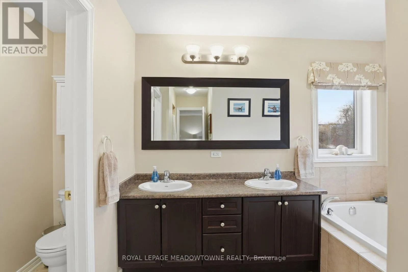 Cross Streets: Pringle & Wettlaufer Terrace. ** Directions: Savoline to Kincardine Terrace to Wettlaufer Ter. MUST SEE! This gorgeous 43-ft lot truly has it all! Set on a Premium Ravine lot, this stunning detached home offers over 3,000 sq. ft. of modern living in one of Milton's most desirable neighbourhoods. From the moment you arrive, the curb appeal stands out with a beautifully landscaped yard with a built-in irrigation system, a custom front-yard waterfall and stream, and landscaped stone front steps, creating a warm and memorable first impression. Inside, you'll find a bright, open-concept layout featuring a sunlit living area, an elegant dining room, an upgraded kitchen with quartz countertops, stainless steel appliances, abundant storage, and potlights. The family room is equally impressive with potlights and a gas fireplace, offering the perfect place to gather and unwind. The upper level includes a bonus living area-ideal for a media room or family lounge-along with four generous bedrooms. The primary suite is a true retreat with his-and-her walk-in closets and a spa-like ensuite featuring double sinks, a stand-up shower, and a private water closet. The primary bedroom also features lower-set windows designed to highlight the ravine views, allowing you to enjoy the natural landscape right from your bedside. All bedrooms include large windows and ample closet space. The partially finished basement adds even more versatility with a rec room complete with a kitchen sink and mini fridge, a full bathroom, a bedroom with lots of potlights, and plenty of open space ready for your finishing touches. Step outside to your private backyard oasis, complete with an oversized deck, beautiful landscaping, and peaceful ravine views. In the summertime, the yard comes alive with hummingbirds, cardinals, and natural surroundings, offering a serene, nature-filled escape-perfect for relaxing or entertaining. Located close to top-rated schools, parks, shopping, restaurants, the Milton GO Station, Highway 401,and the upcoming university campus, this home delivers style and location! (id:27476)