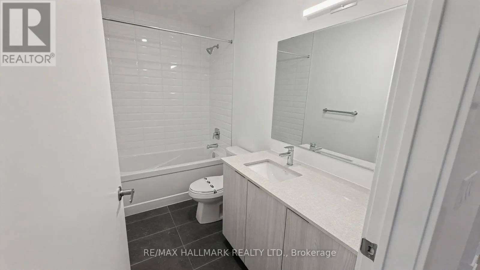 WhitlockAve/ YatesDr Welcome to Mile & Creek Phase 2, Milton's newest modern community surrounded by protected greenspace. This beautifully designed condo offers a bright and functional open-concept layout with contemporary finishes throughout. Enjoy a sleek kitchen with quartz countertops, stainless-steel appliances, and ample cabinetry, opening into a spacious living and dining area with large windows that fill the space with natural light. The bedroom provides excellent comfort, and the enclosed den is ideal for a home office or additional living space. enjoy access to an impressive 3-storey amenity pavilion offering a fitness centre, yoga studio, co-working lounge, media/entertainment room, pet spa, social lounge, and outdoor terrace with BBQ areas. The building also features smart-home technology, secure entry, parcel lockers, and geothermal heating for energy-efficient living. close to schools, parks, walking trails, shopping, restaurants, and major highways, this unit offers a perfect blend of convenience and nature-connected living. A great option for professionals or couples seeking a clean, stylish, and well-located home in Milton's fast growing community. (id:27476)