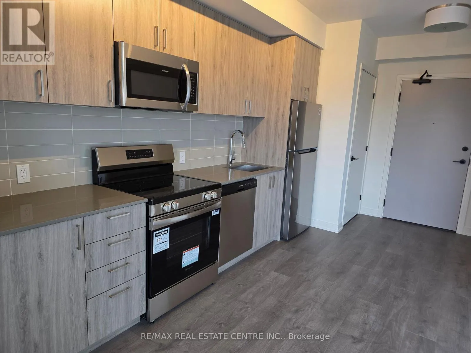 Derry / Hwy 25 Welcome to Connectt 2 in Milton - a brand-new, never-lived-in condo offering modern design and effortless living. This bright 1-bedroom suite with a spacious living area features approximately 600 sq. ft. of well-planned, sun-filled space with an open-concept layout, large windows, and contemporary finishes throughout.The sleek kitchen showcases a spacious pantry, stainless steel appliances, and quartz countertops, flowing seamlessly into a generous living area perfect for relaxing or entertaining. The bedroom offers excellent natural light and a well-sized double-door closet. Additional features include in-suite laundry and a private covered balcony with unobstructed views. Enjoy the comfort of move-in-ready living in one of Milton's newest condo communities. Conveniently located near major highways, Milton GO, hospital, shopping, restaurants, parks, and everyday amenities. One parking space and one locker included. (id:27476)