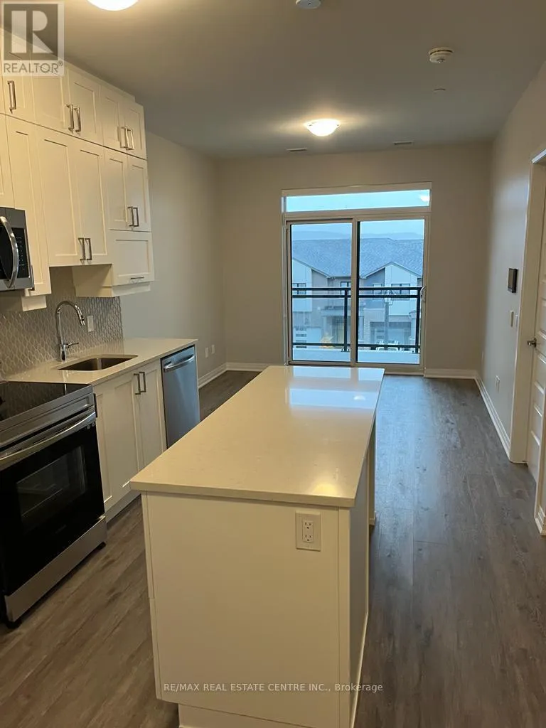 Cross Streets: Louis St. Laurent & Tremaine. ** Directions: uis St. Laurent & Tremaine. Enjoy this bright and modern (613 sq ft plus 63 sq ft balcony) unit in the Soleil Condos which is a blend of comfort and convenience. Located in one of the best locations of Milton, this unit comes with spacious open-concept floor plan with combined Living/Dining, 1 Bedroom plus Den, 1 bathroom, ensuite laundry and a decent sixed balcony to enjoy during summer months. This home welcomes you with neutral finishes throughout. Modern gourmet kitchen features central island, upgraded cabinets and Laminate Floors, Spacious bedroom and a separate den which can be used as a bedroom or office space.. Views of the Escarpment from the Balcony. The building amenities include security, visitor parking, party/meeting room, gym, and roof-top terrace. Comes w/ Latest Smart technology to navigate the features in the home. Conveniently located near parks, shops, Niagara Escarpment, Milton Hospital and Mattamy National cycling Centre. Includes 1 Parking and 1 Locker (id:27476)
