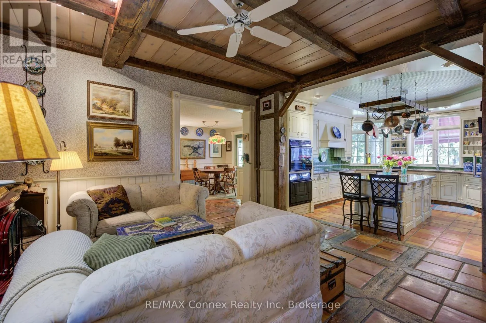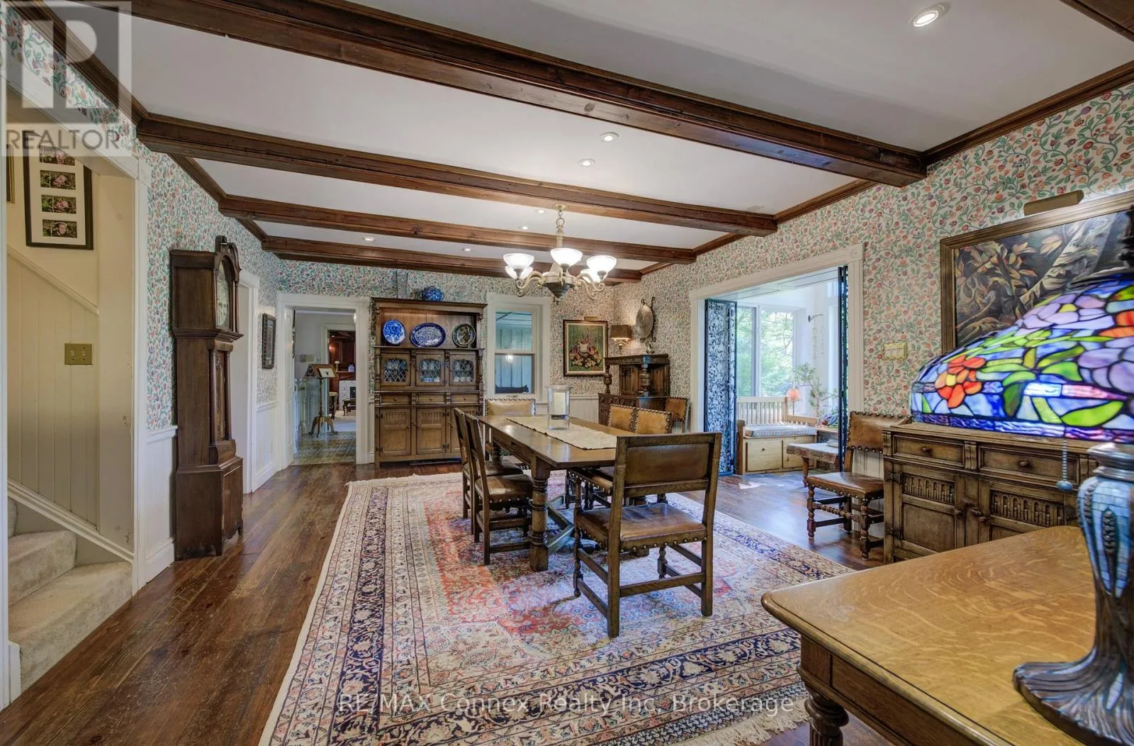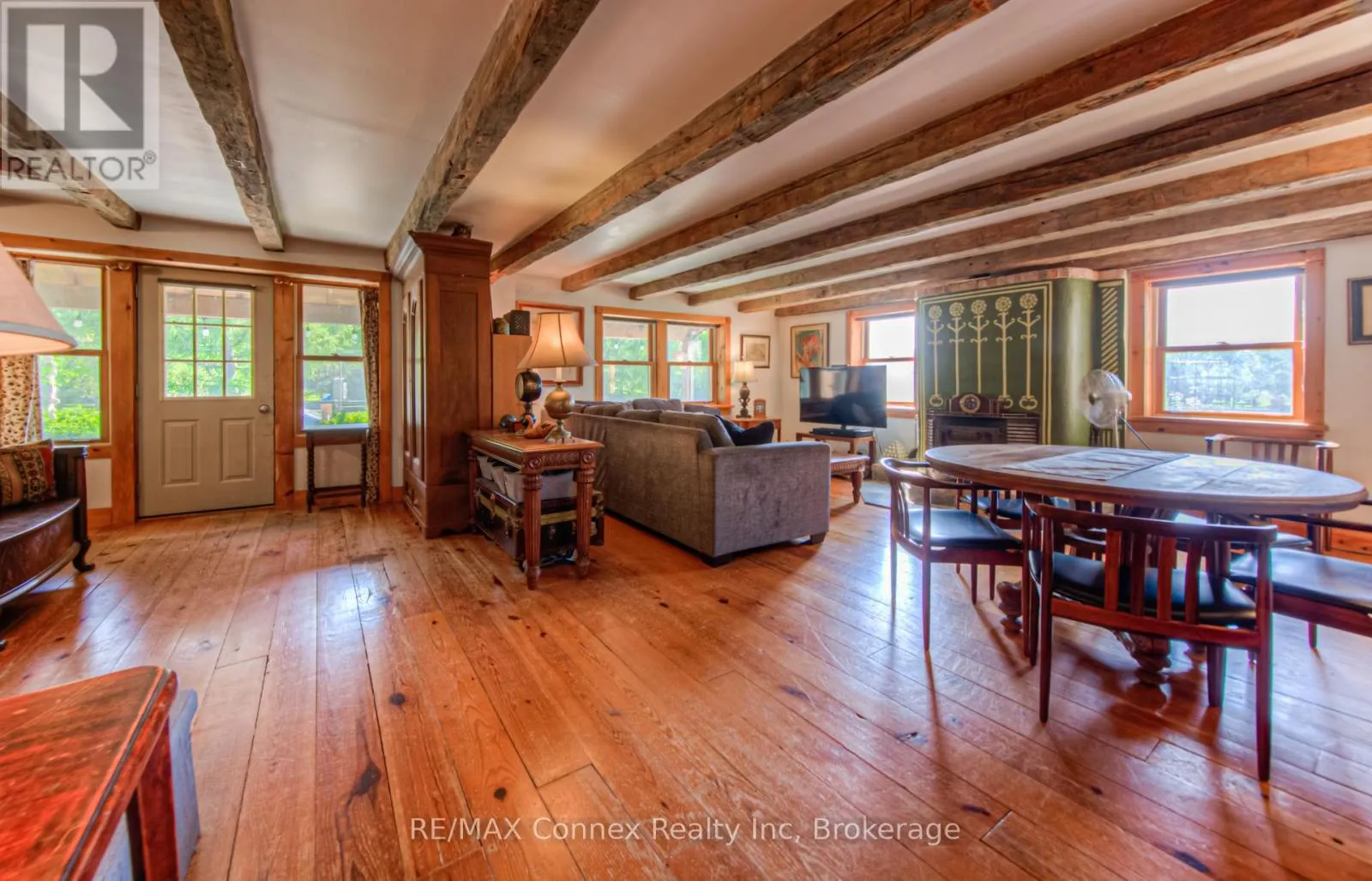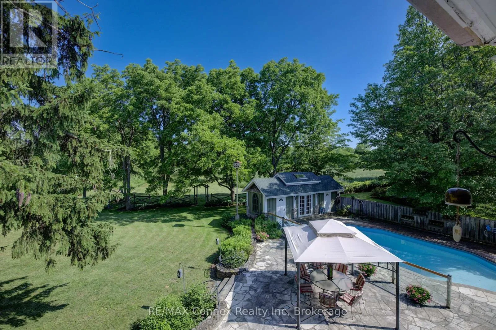 Cross Streets: Hwy 7. ** Directions: Highway 7 east, right onto fifth line. THIS BEAUTIFUL COUNTRY RETREAT AWAITS YOU AND YOUR FAMILY! Unique, enchanting and enriched with the natural beauty of the rolling landscape and an abundance of history, this country estate reveals itself in a series of wonderful surprises. The property is not only a picturesque 150 Acres with a 4867 square foot, two-storey beautifully proportioned home, it also features two mid-nineteenth-century log cabins, an in-ground pool with a private pool house, with sauna, pond, apple and pear orchard, barn with horse stalls and hay loft, large drive shed with extensive workshop and one of Ontario's few existing stone silos converted into an artist's studio with a deck overlooking raised gardens and a stunning view of the farm. You and your family will live on your own retreat. Join us for a walk down the majestic tree-lined laneway and open your eyes to the wonder that befalls you. The house has 4+1 bedrooms including a full guest suite with bed and sitting room with direct access to the garden and a 3pc bathroom. In the finished basement you will relax in the movie theatre and games room. The generous office space is full of light. The property encompasses aces of mature bush and managed reforestation, wetlands, walking trails, 40 acres of arable land and a seven-acre revenue producing solar panel installation. This historical family estate has been lovingly cared for by three families since 1896 when the settlers built a new house on the present site. Over the decades the house has been expanded and modernized, combining heritage with sustainability. (id:27476)