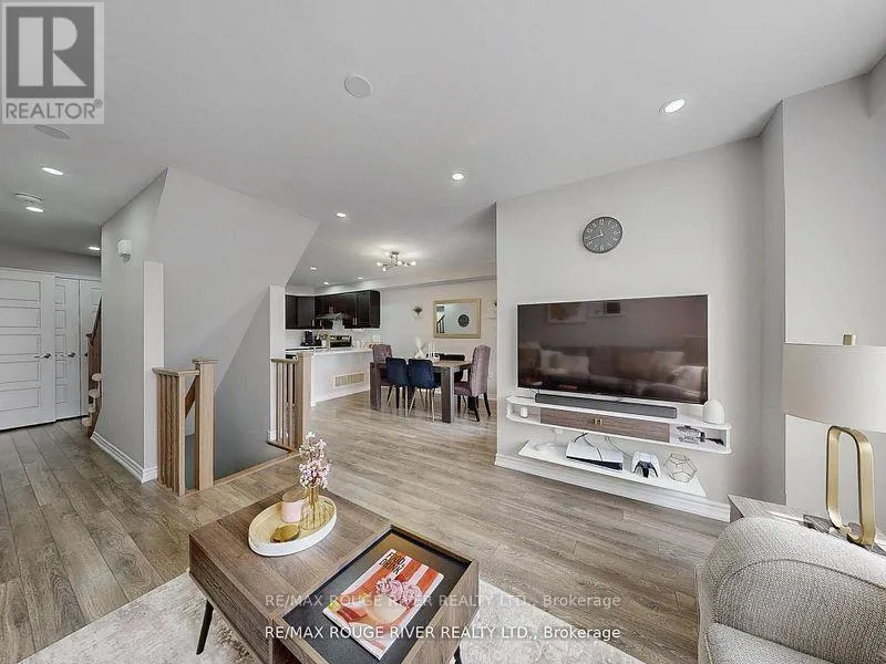 Louis St. Laurent Ave & Bronte St. S. Welcome to this immaculate three storey freehold townhome in Milton's Hawthorne south enclave. All brick exterior with coveted three parking. This bright, beautifully maintained home offers 3 bedrooms, 3 bathrooms, and a versatile main floor den with direct garage access. Laminate floors throughout. The second level features an open layout with ceiling pot lights, dining area walkout to spacious balcony and an elegant kitchen with stainless steel appliances, longer upgraded cabinets and a breakfast bar. Upstairs you will find three spacious bedrooms and two full baths. No sidewalk at front. Close to top schools, parks, trails, kelso conservation and many other amenities. (id:27476)