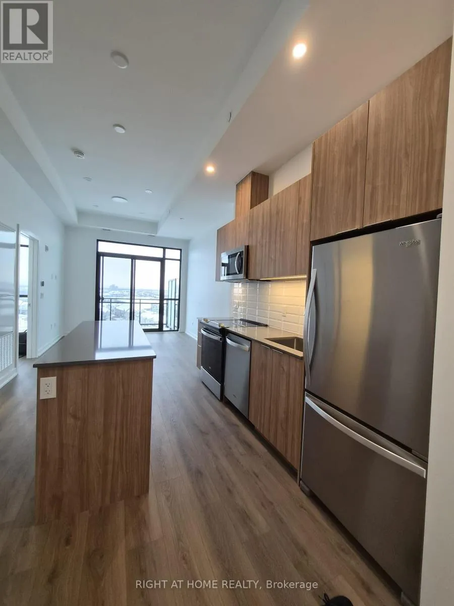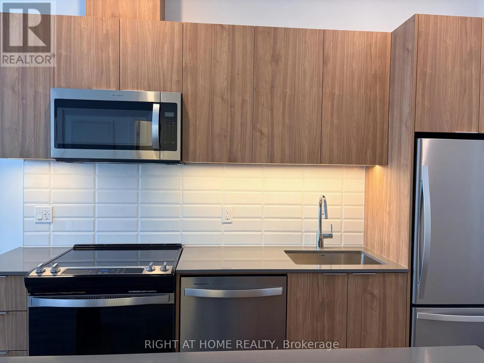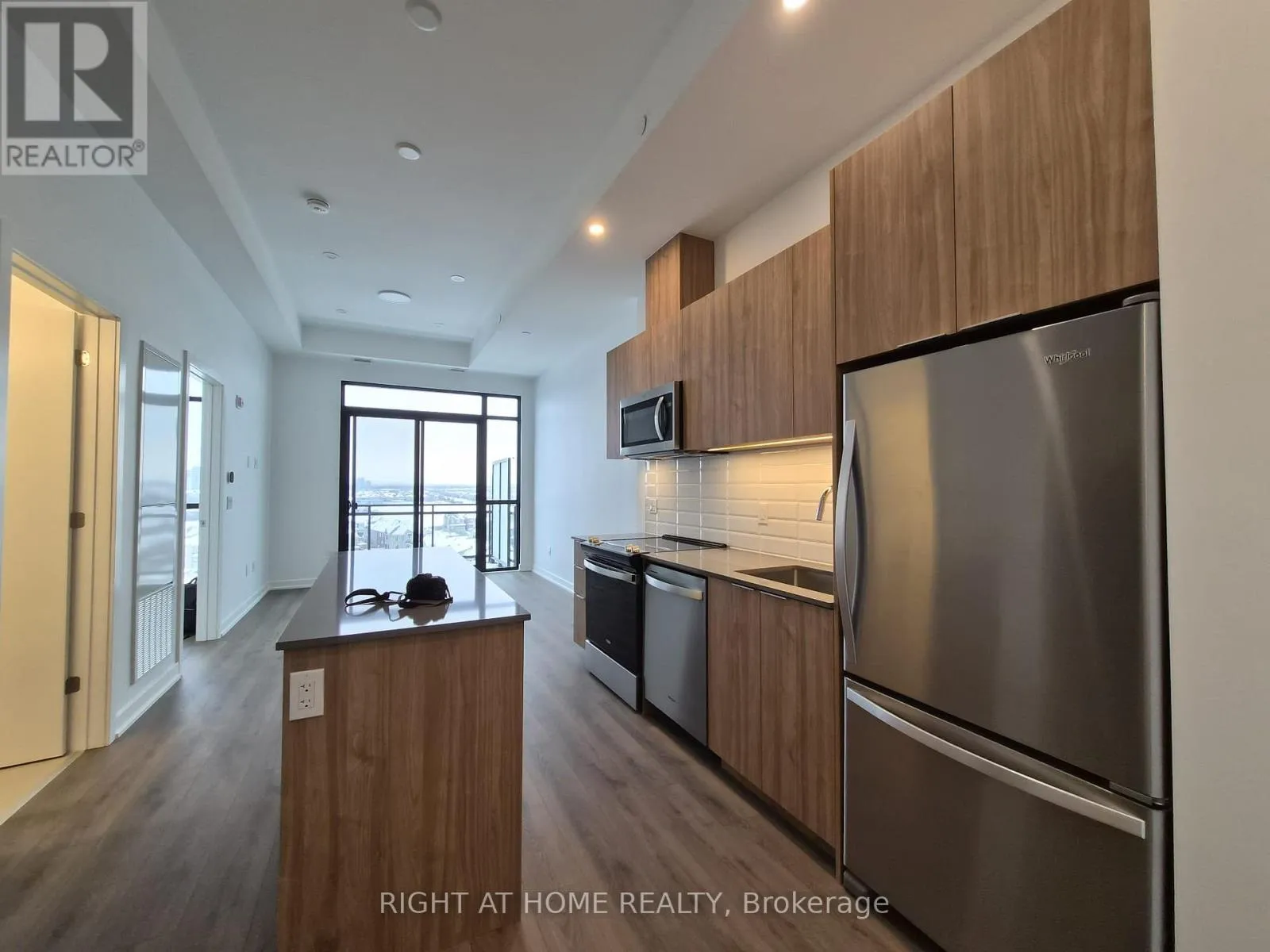 Cross Streets: Whitlock Ave/Yates Dr. ** Directions: SE of Louis St. Laurent. Your new home awaits you at the Mile & Creek Phase 2 in the up and coming serene neighbourhood of Milton. Open concept modern living designed and built by Mattamy for people who love the comfort of a practical layout offering plenty of natural sunlight and stunning views of the protected green surrounding area. Situated at the top floor, this upgraded unit offers all the desirable features of an ideal home/work environment and is free of any noise related issues from up above. The bright kitchen, with upgraded backsplash, under-the-counter lights and pot lights boasts practicality and comfort with the Breakfast Island that can be used for a quick online meeting. Quartz countertops, aided with shining sanitaryware and all stainless-steel brand-new appliances enhance the appeal and provide a nice retreat after a long day. The Living Room provides access to a decent sized balcony that offers fresh air when needed. The den, with upgraded Barn Door, offers an option to be used as a home office. The upgraded bathroom offers carefully-designed glass doors and standing shower. You will enjoy the feel of a nice up and coming community with latest connectivity, round-the-clock Concierge, Visitor Parking, Shopping, Schools, Trails, Highways, Public Transportation, and much more. (id:27476)