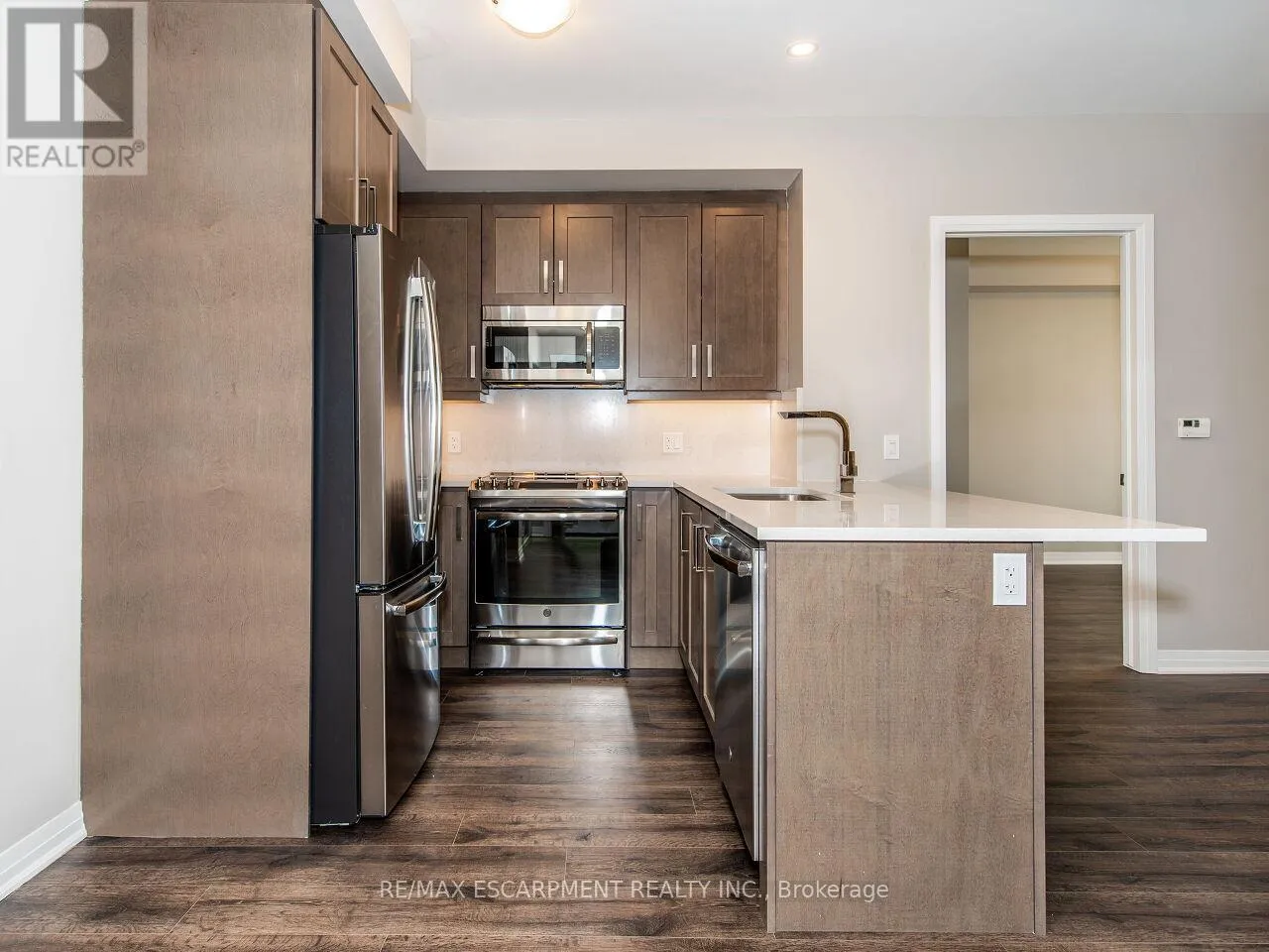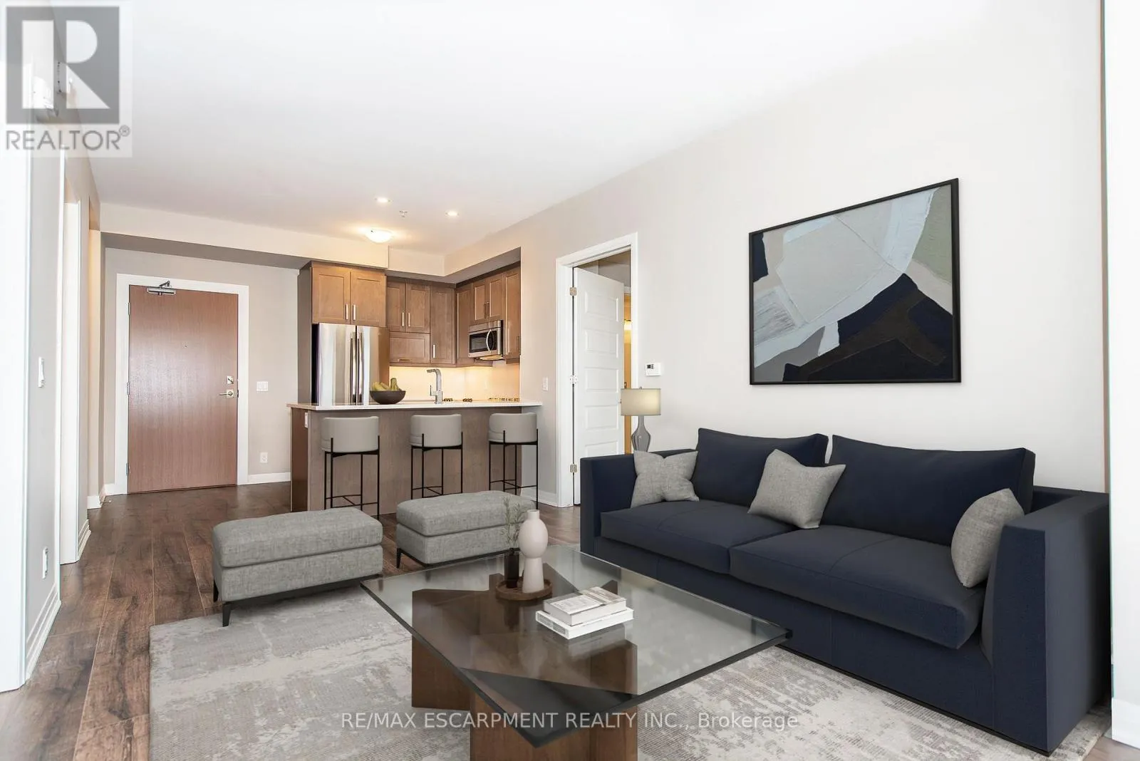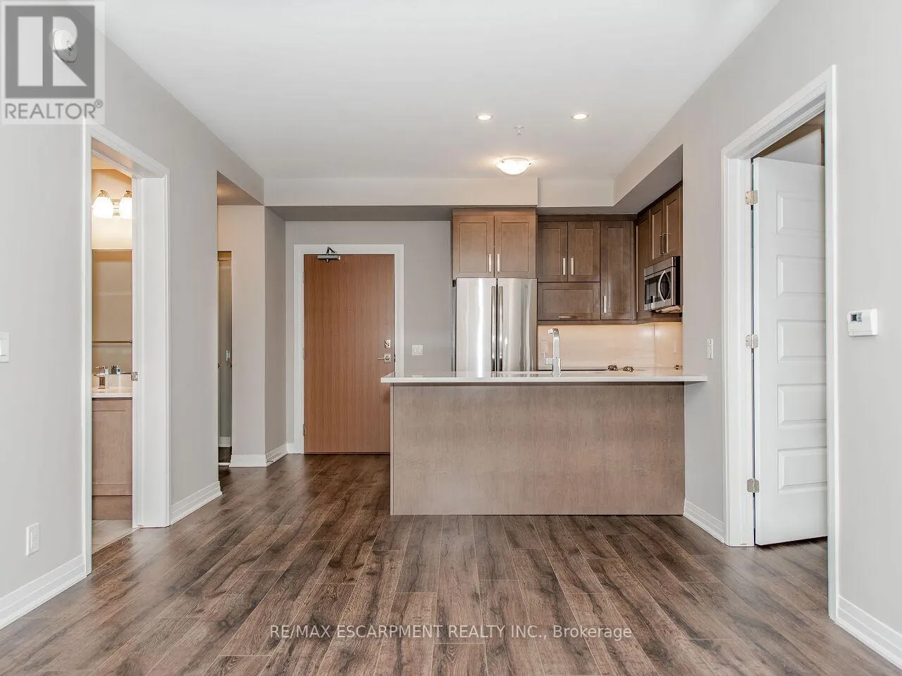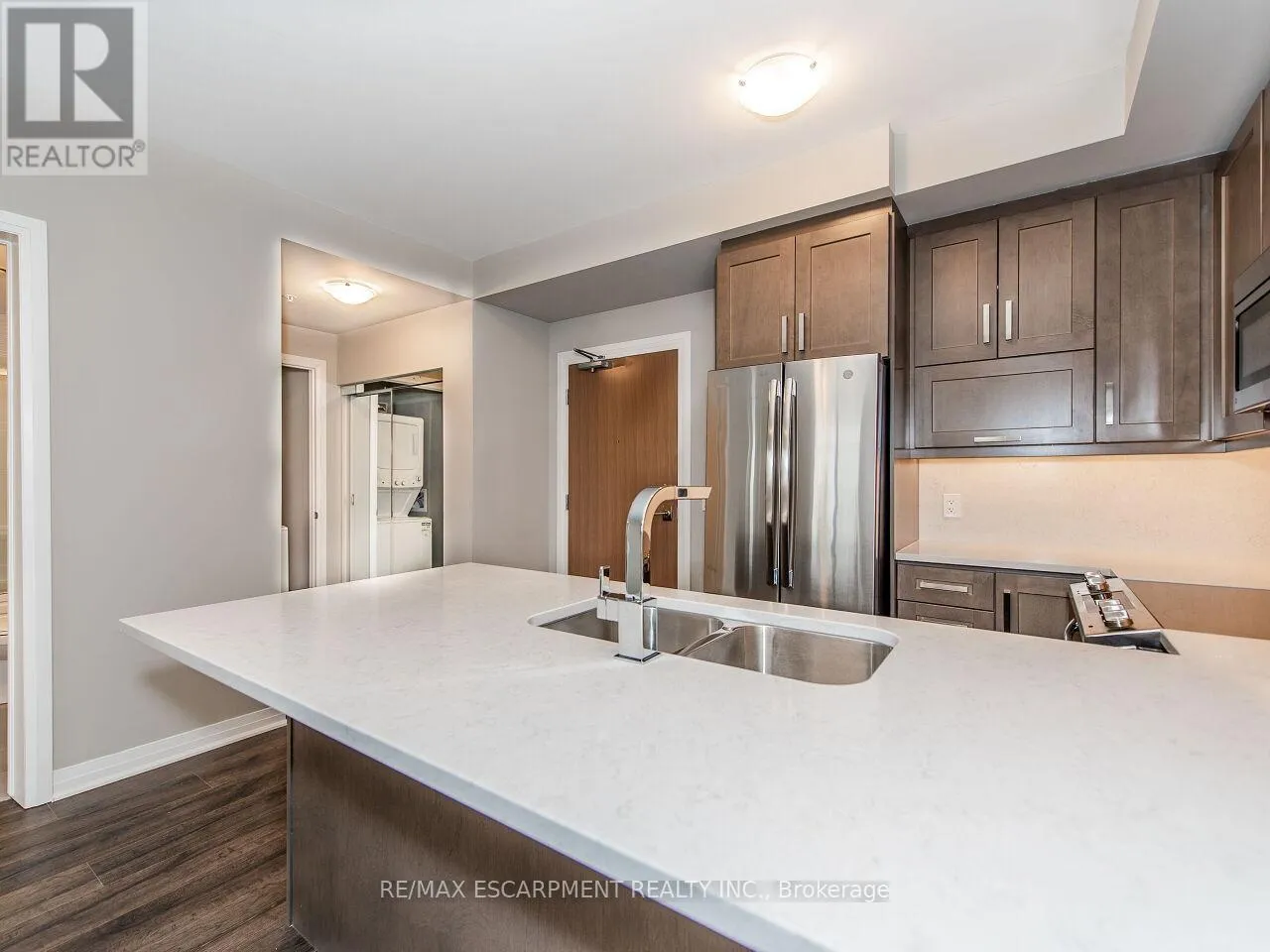 Cross Streets: LSL / Leger. ** Directions: Louis St. Laurent Leger. Discover this stunning, upgraded "Harrison" model in the highly sought-after Hawthorne South Village Residences by Mattamy. This bright and open 2-bedroom, 2-bath condo offers modern style, quality finishes, and serene Northwest views of the Escarpment and pond. Featuring 9-ft ceilings, pot lights, laminate flooring, and large windows that flood the space with natural light. The contemporary kitchen shines with stainless steel appliances, quartz countertops and backsplash, under-cabinet lighting, and a convenient breakfast bar. The spacious primary bedroom includes a walk-in closet and a beautifully upgraded 3-pc ensuite with glass walk-in shower. A generous second bedroom with double closet offers excellent versatility. Enjoy your morning coffee or evening unwind on the private balcony, accessed through elegant French doors. Additional perks include in-suite laundry, 1 underground parking space (P1-#20), 1 locker (P1-#291), and high-speed internet included. Conveniently located in close proximity to top-rated schools, shopping, Milton District Hospital and historic Downtown Milton ~ don't miss your chance to get into home ownership or expand your real estate portfolio! (id:27476)