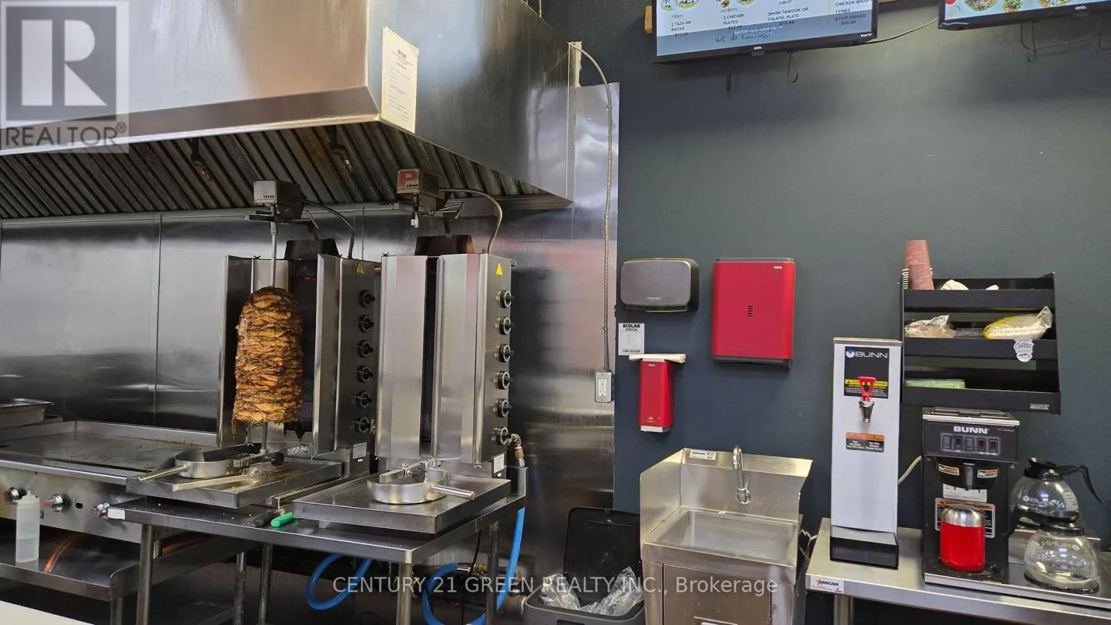 Derry & Bronte This fully operational, highly profitable shawarma restaurant offers unparalleled income stability and flexibility for hospitality entrepreneurs. Its established reputation for Mediterranean cuisine and support from the franchise system. The owner spent upward to 200k in installing essential equipment and renovating the place, including a A/Cs, Walkin Fridges, hot displays, metal work tables, Doners, stylish chairs and tables for dine-in customers. With everything in place, Running your dream restaurant couldn't be easier. This restaurant is situated in a high-traffic area near residential areas, schools and surrounded by complementary businesses, ensuring a consistent customer base. Not to mention, convenient parking directly in front for easy accessibility, enhancing the customer experience. Some key highlights include a versatile, fully equipped space ready to welcome customers, high-visibility location with a steady flow of foot and vehicle traffic, and a great opportunity. (id:27476)