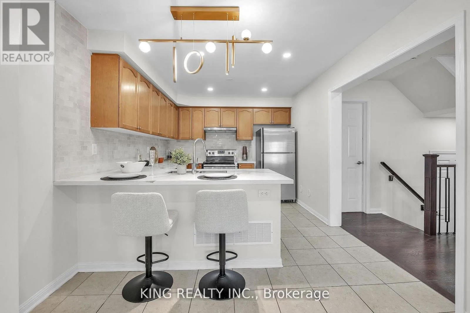Bronte St. S/Louis St. Lauren Outstanding Opportunity in South Milton! This spacious 3-level freehold townhome offers perfectly situated near top-rated schools, parks, sports complexes, hospital, and shopping.The ground level features a generous mudroom/den with inside access to the garage and utility room, ideal for families and everyday convenience. enhanced with pot lights for a bright, airy feel The second level showcases a bright open-concept living and dining area with hardwood flooring throughout. the dining area offers a walkout to a private balcony, large elevated approx. 10'8"x8' balcony/terrace, perfect for relaxing or entertaining.and upgraded laundry Machines in Laundry room.The spacious kitchen is designed for functionality and style, offering ample counter and cupboard space, stainless steel appliances (stove, fridge, built-in dishwasher), and an elegant tile backsplash. A hardwood staircase leads to the upper level, which features three well-appointed bedrooms. The primary bedroom includes a large closet,. Two additional bedrooms at the front of the home offer windows, closets,, along with a second main bathroom..Extra-long driveway fits 2 cars + 1 in garage (id:27476)
