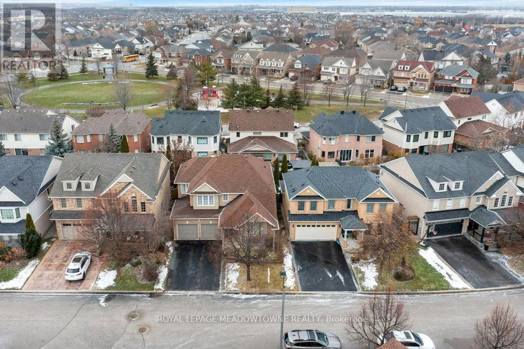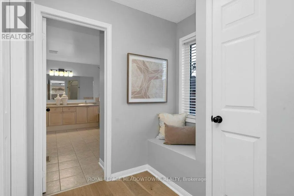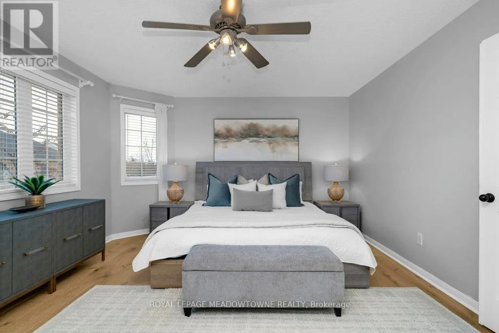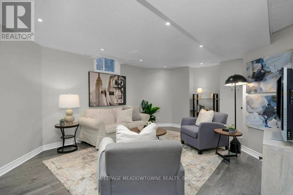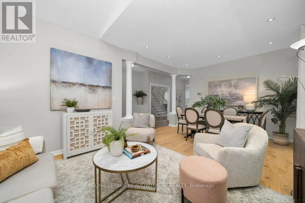 Trudeau Dr. / Beaty Trail Nestled in Milton's desirable Beaty neighbourhood, this beautifully maintained family home sits on a premium 46x80 wide fronting lot, with fenced backyard and composite decking and offers a rare 4-car driveway plus a double car garage. Milton's quieter tucked away streets, within a short walk to a scenic pond view. This home features hardwood flooring on the main and 2nd level, 9ft ceilings on main floor, a vaulted living/dining room, a cozy family room with a gas fireplace, and convenient main-floor laundry plus interior garage access. The open-concept kitchen boasts a new tile backsplash, abundant cabinetry, an island with seating, a spacious pantry, and direct access to the backyard. Upstairs, you'll find four generous bedrooms, including a primary suite with double closets (one walk-in) and a luxurious 5-piece ensuite, along with a 4-piece main bath. The fully finished basement extends the living space with laminate flooring, ample pot lights, an extra bedroom with large window, a roughed-in bath (grey line, electrical, and framing complete), and exceptional storage including an oversized cold cellar. Turn-key, thoughtfully updated, and ideally located, 5 mins to 401/James Snow and 10mins to Milton Go Train-this home is ready to be enjoyed. (id:27476)