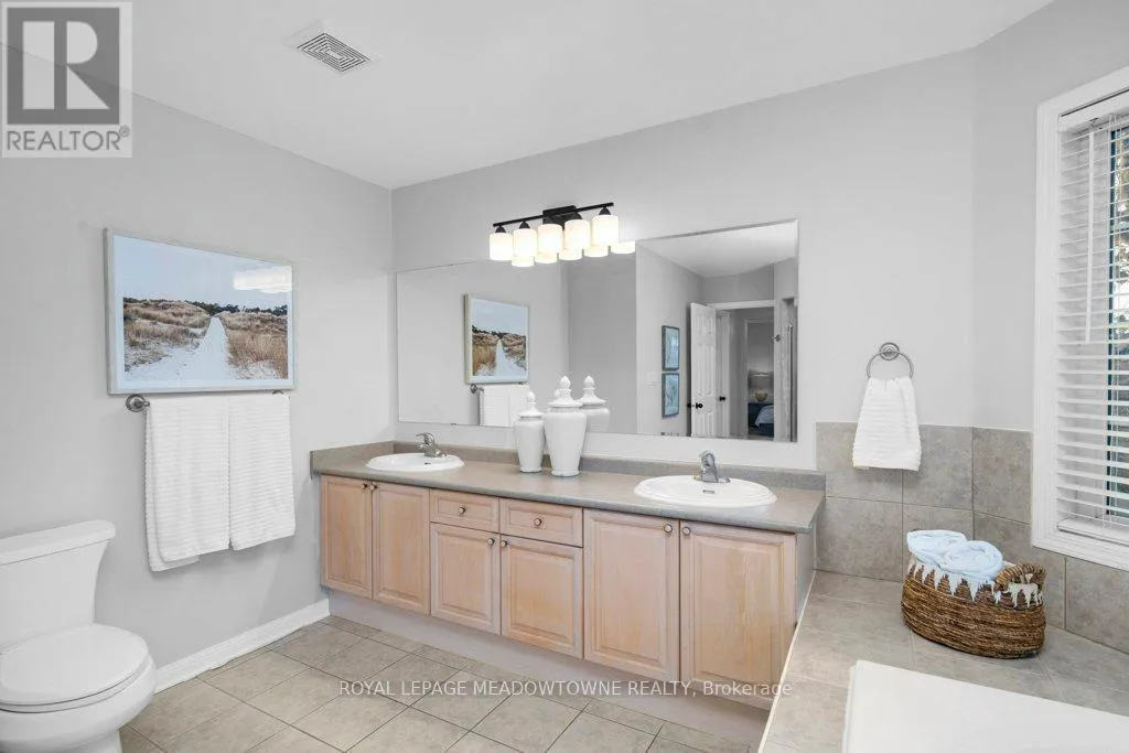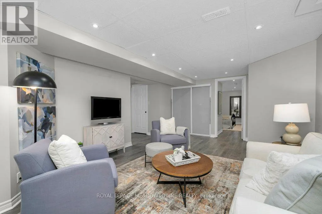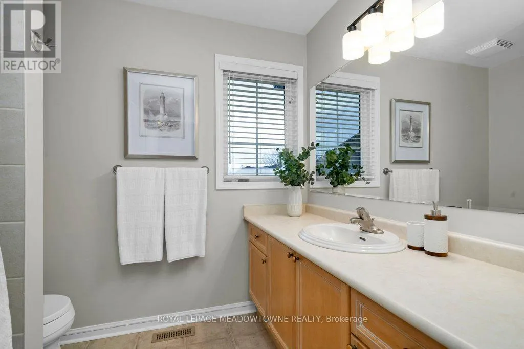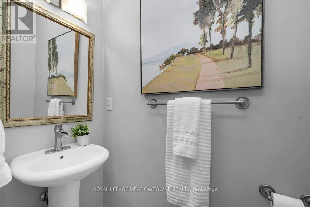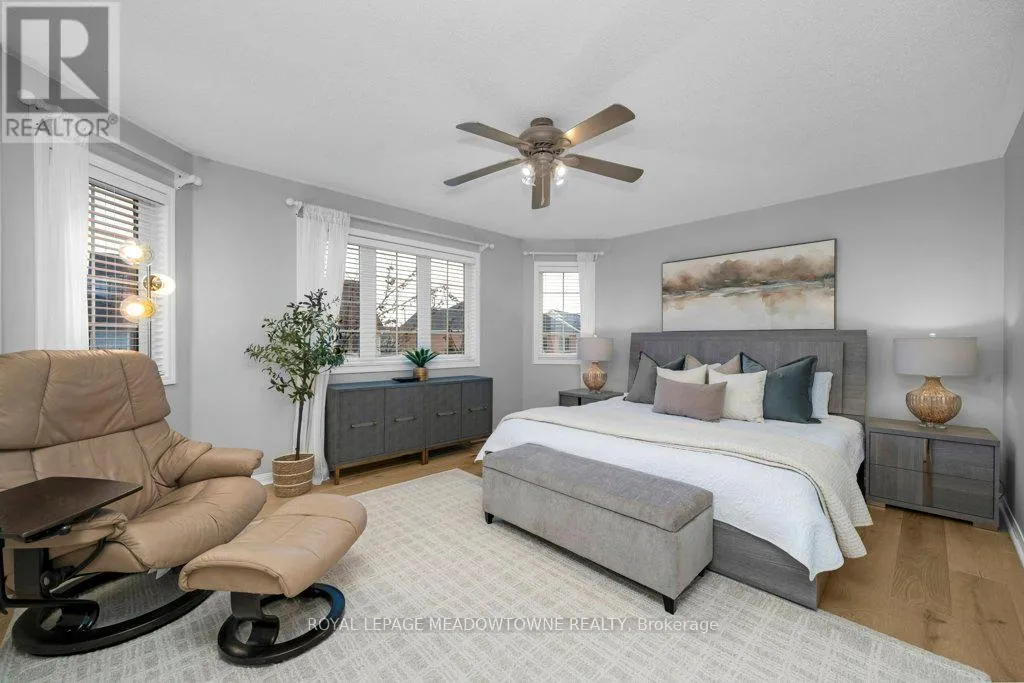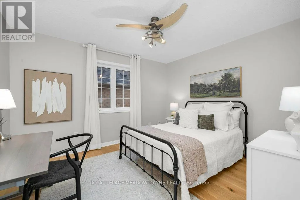 Trudeau Dr. / Beaty Trail Nestled in Milton's desirable Beaty neighbourhood, this beautifully maintained family home sits on a premium 46x80 wide fronting lot, with fenced backyard and composite decking and offers a rare 4-car driveway plus a double car garage. Milton's quieter tucked away streets, within a short walk to a scenic pond view. This home features hardwood flooring on the main and 2nd level, 9ft ceilings on main floor, a vaulted living/dining room, a cozy family room with a gas fireplace, and convenient main-floor laundry plus interior garage access. The open-concept kitchen boasts a new tile backsplash, abundant cabinetry, an island with seating, a spacious pantry, and direct access to the backyard. Upstairs, you'll find four generous bedrooms, including a primary suite with double closets (one walk-in) and a luxurious 5-piece ensuite, along with a 4-piece main bath. The fully finished basement extends the living space with laminate flooring, ample pot lights, an extra bedroom with large window, a roughed-in bath (grey line, electrical, and framing complete), and exceptional storage including an oversized cold cellar. Turn-key, thoughtfully updated, and ideally located, 5 mins to 401/James Snow and 10mins to Milton Go Train-this home is ready to be enjoyed. (id:27476)