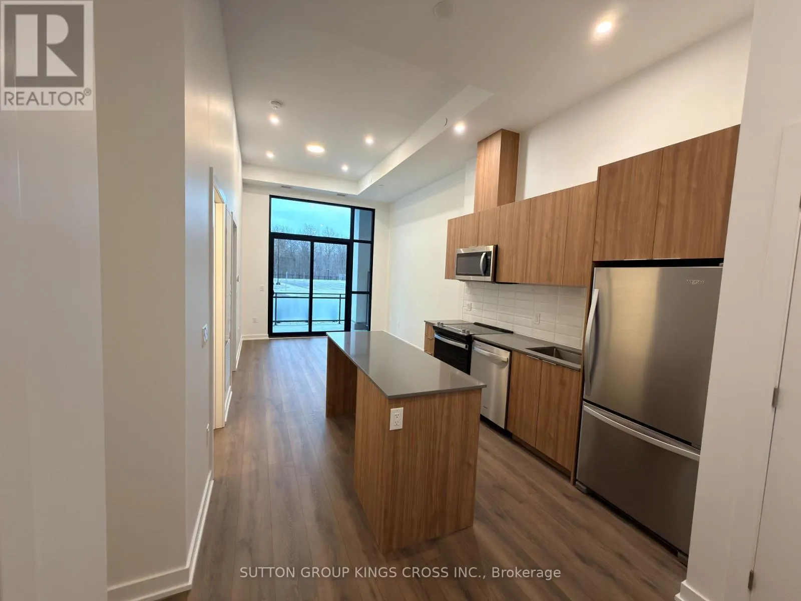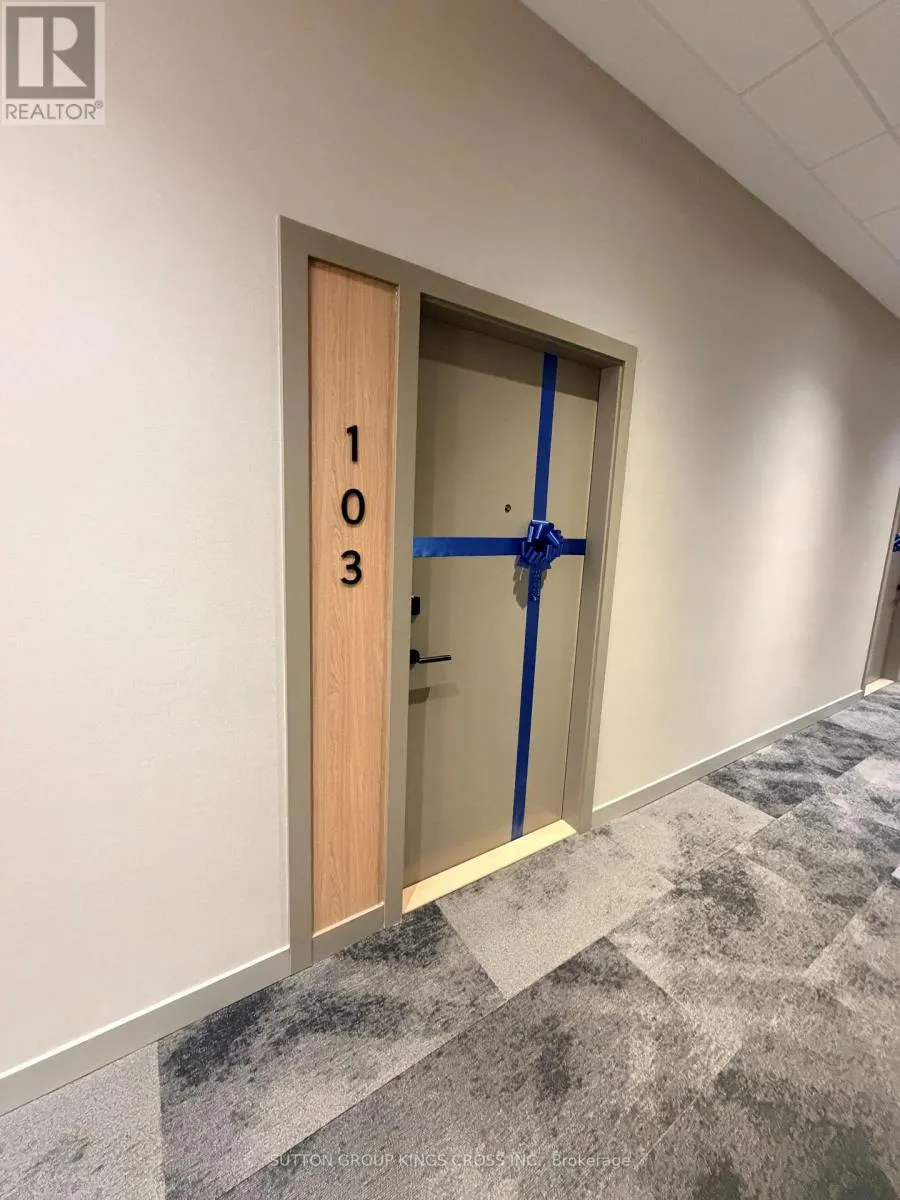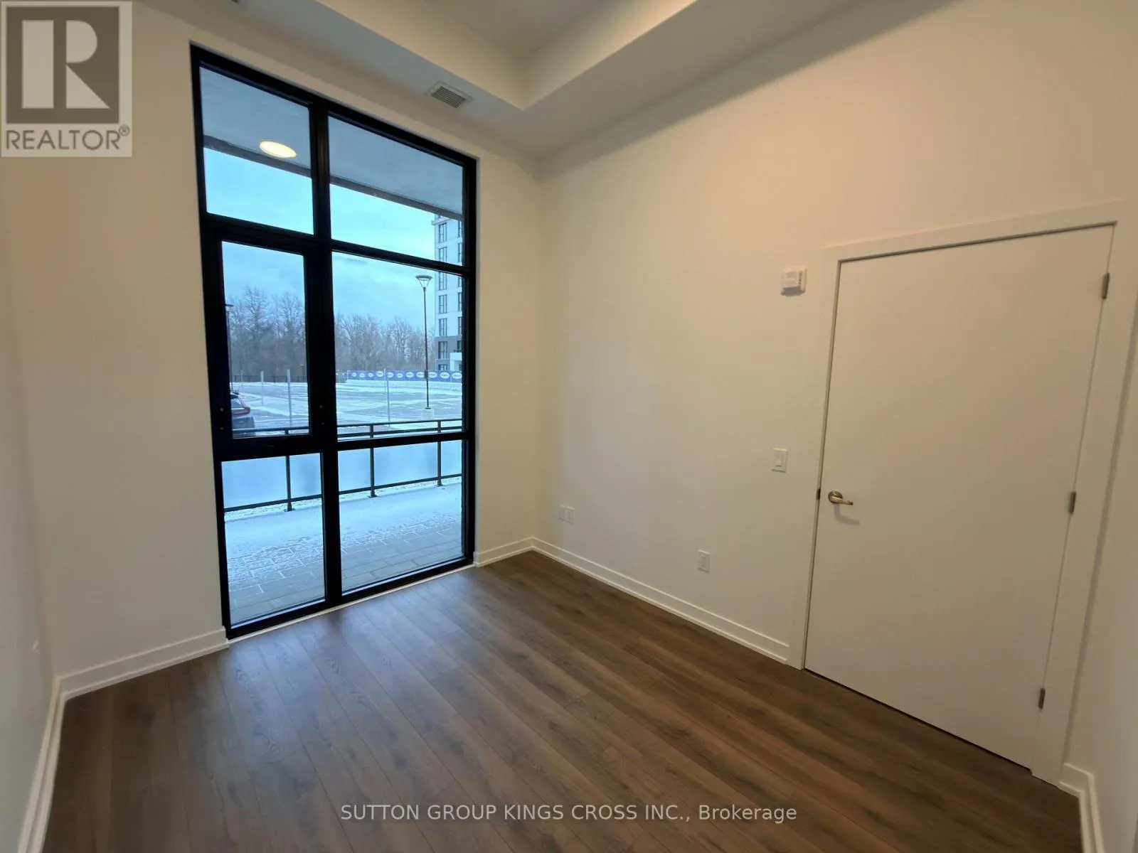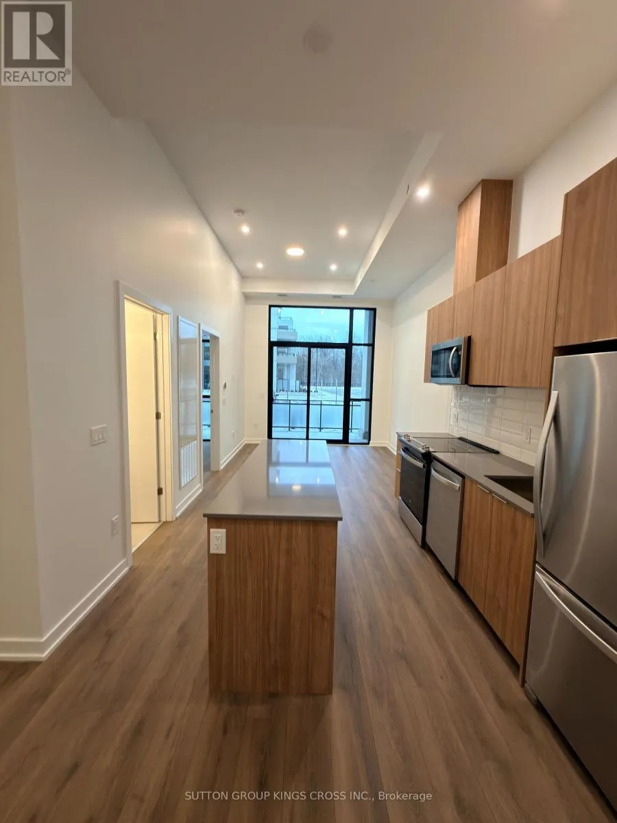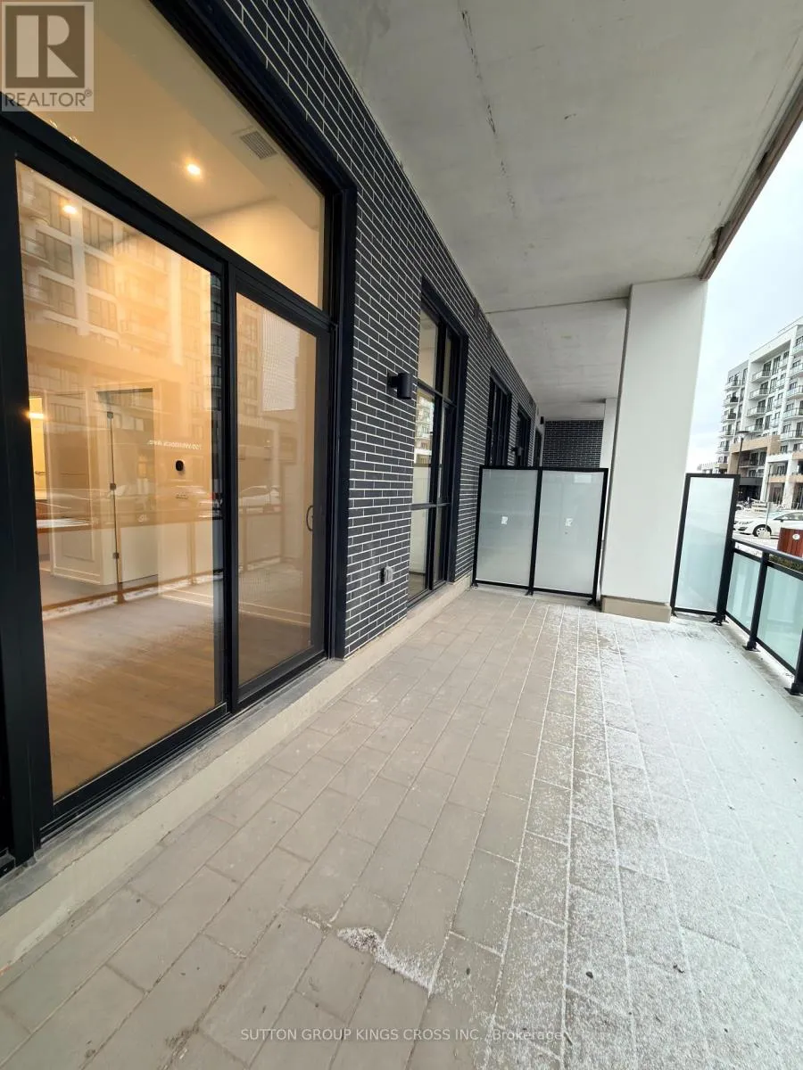 Cross Streets: Whitlock Ave/Yates Dr. ** Directions: Southeast of Louis St Laurent/Hwy 25. TOWERING 12FT CEILINGS & AN EXPANSIVE PRIVATE TERRACE. Discover an exceptional ground-level residence by Mattamy Homes that perfectly blends modern luxury with unrivaled outdoor space. Distinguished by its soaring interior volume and a rare, oversized private terrace exceeding 200 sq. ft., this never-before-lived-in 1-bedroom plus den suite offers a distinct loft-like atmosphere. The open-concept floor plan is anchored by a gourmet kitchen featuring quartz surfaces, integrated under-mount lighting, and premium soft-close cabinetry. Every detail has been curated for contemporary living, from the durable wide-plank flooring to the spa-inspired washroom with a sleek frameless glass enclosure. High-speed internet is fully inclusive. Beyond the suite, residents have access to a premier three-level amenity hub: a professional-grade fitness studio, collaborative co-working zones, and a social rooftop with fireside seating. Complete with smart-home integration, 24/7 security, and perfectly situated near the 401, 407, Milton GO, and local shopping. (id:27476)