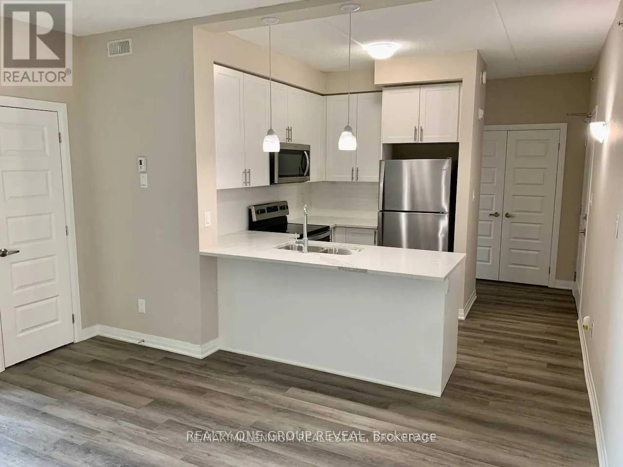 Derry Rd / Bronte Beautiful and bright 1 Bed + Den open-concept condo in the desirable Farmstead neighbourhood. Freshly painted and featuring 9 ft ceilings, a modern kitchen with quartz countertops, breakfast bar, and undermount sinks in both the kitchen and bathroom. The spacious den offers a private door and can be used as a second bedroom or home office. Rare offering of two side-by-side underground parking spots plus a locker. Enjoy a private balcony and access to excellent building amenities including a fitness room, party room, car wash station, dog walk, and open terrace. Steps to Milton Hospital, sports centre, parks, schools, and restaurants, with easy access to Hwy 401 & 407. Ideal for professionals or small families. Immediate occupancy available. (id:27476)