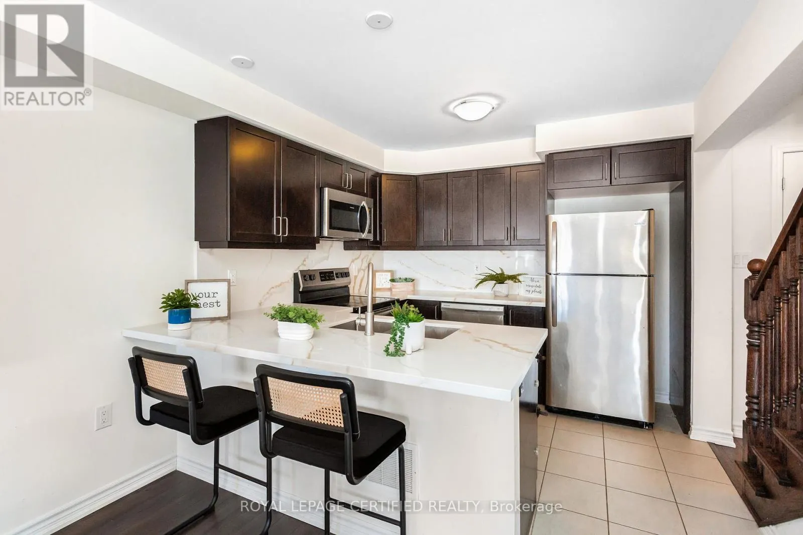 Cross Streets: Louis St. Laurent & Hwy 25. ** Directions: South. An absolutely stunning residence in one of Milton's most prestigious and high-demand communities, this beautifully upgraded all-brick and stone townhouse offers refined living at its best. Recently Freshly painted featuring 3 generously sized bedrooms and 2.5 elegant washrooms, the home showcases premium laminate and tile flooring on the main and second levels, a striking oak staircase, and expansive windows that bathe the space in natural light. The thoughtfully designed, open-concept layout feels bright, spacious, and effortlessly luxurious, complemented by tranquil escarpment views. Thousands invested in high-quality upgrades enhance both style and comfort. Nestled in the fully developed Cobban neighbourhood and surrounded by highly regarded schools, parks, and family-focused amenities, this exceptional home offers an elevated lifestyle within a thriving, close-knit community. (id:27476)
