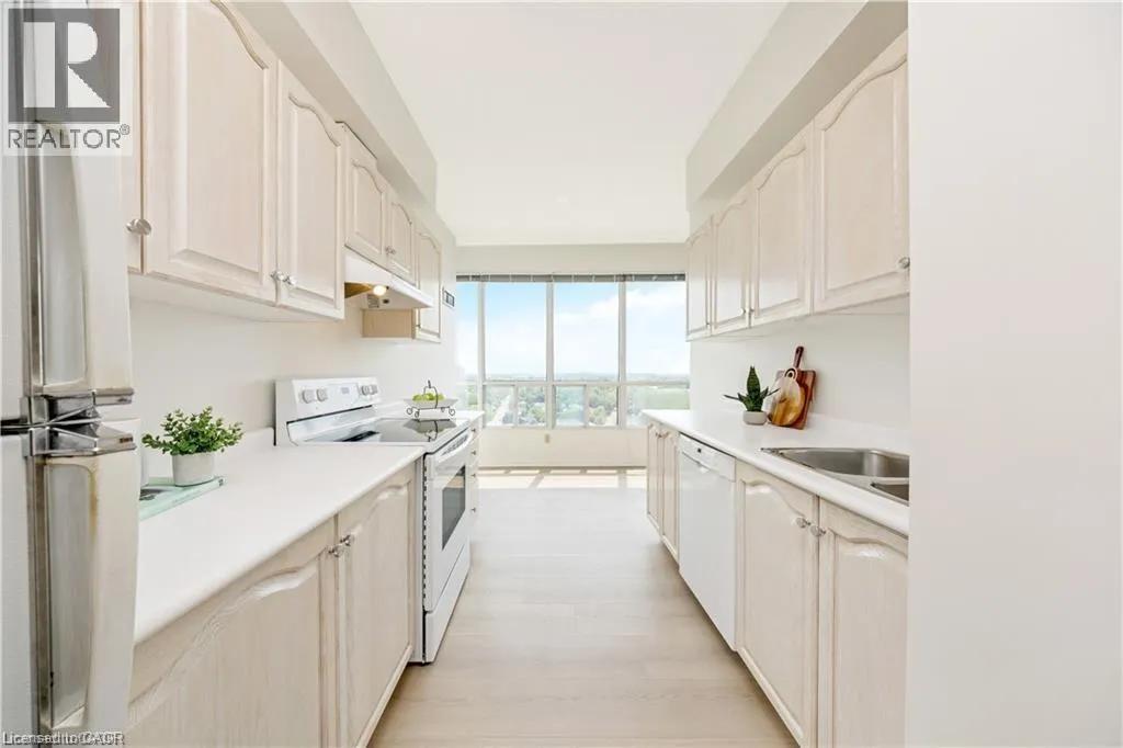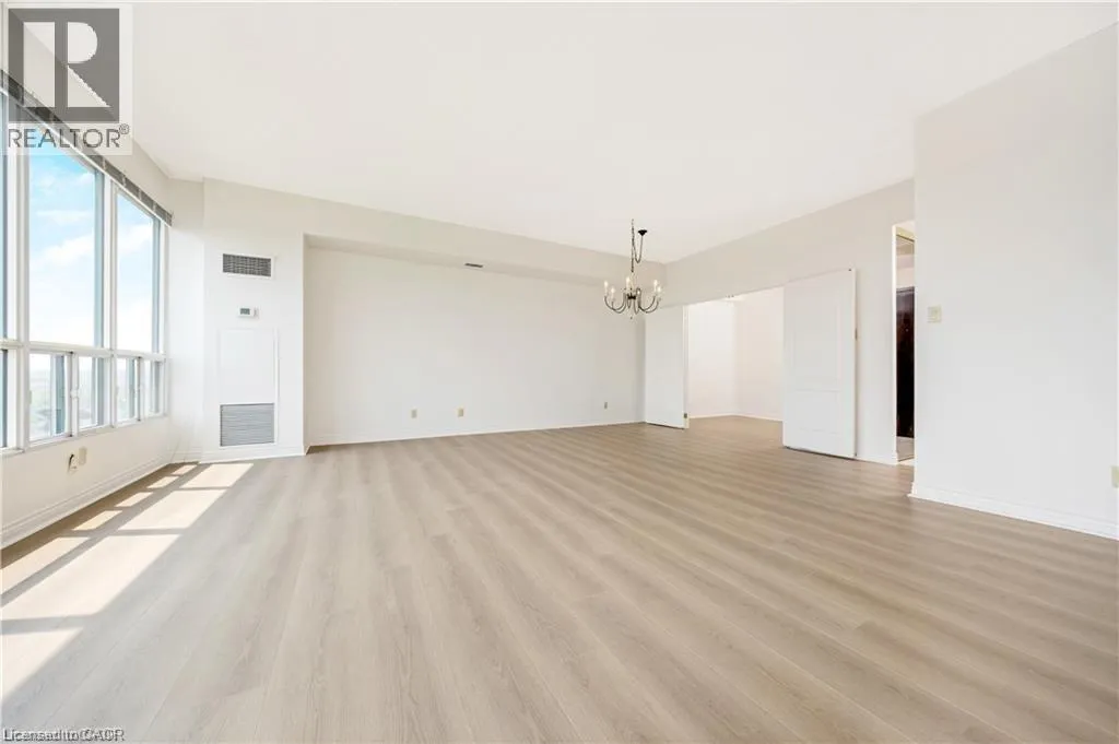 Main Street north to Millside Dr. RARE SKY SUITE SOUTH FACING CONDO ... it's HIGHER than the PENTHOUSE! Breathtaking unobstructed Escarpment views - see the CN Tower on a clear day! We never see these units offered for sale. This highly sought-after condo has it all: 2 BEDROOMS + DEN, THREE BATHROOMS (Jack n Jill updated to large walk-in shower), HIGH 9' CEILINGS, 2 UNDERGROUND PARKING SPOTS (1 owned, 1 exclusive use), 2 OWNED LOCKERS, UTILITY ROOM in suite and it boasts a whopping 1625 SF ... one of the LARGEST condos in the building. Enjoy the spacious and bright living area w/ massive windows all around to highlight the most spectacular views. The kitchen offers a breakfast area, some updated Samsung and Bosch appliances and a convenient pantry. The combined open concept living and dining room is large enough for extended family celebrations and has loads of massive windows to highlight the stunning views. There are 2 generous bedrooms, one of which is the primary bedroom with walk-in closet and convenient 5-pc ensuite. The den is large enough to be used as a THIRD BEDROOM. Additional features include: $30,000+ in recent upgrades (2025): entire unit has been professionally painted throughout in a neutral tone (Benjamin Moore paint), upgraded lighting, new blinds in bedrooms and new flooring with higher-end sound insulation than required. The unit is also CARPET-FREE, there is in-suite laundry with in-suite walk-in utility room. The building includes a renovated lobby, indoor pool, sauna, fitness area, party room, car wash, community BBQ area and plenty of visitor parking. This is an exceptionally well-run complex in an excellent school district and is centrally located. It is a short walk to restaurants, shops, summer Farmers Market, schools, parks, beautiful Mill Pond and Milton's vibrant downtown. Condo Fees Include Heat, Hydro, Water, Bell Bulk TV & Internet, Parking, Building Insurance and Maintenance of Common Areas. MOVE IN and ENJOY ... Simplify Your Life! *Some photos virtually staged (id:27476)