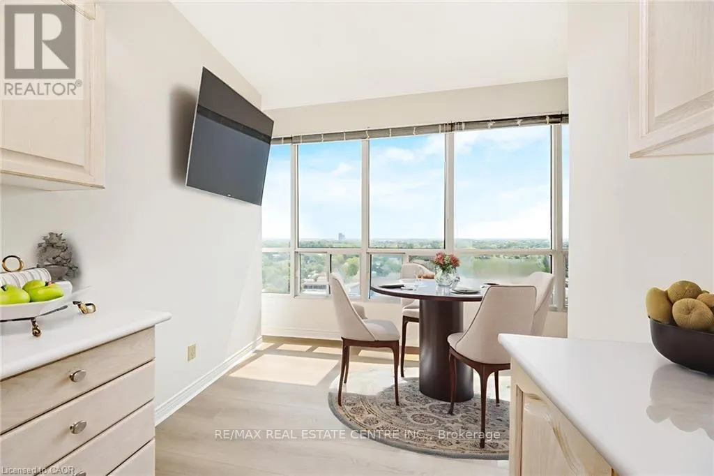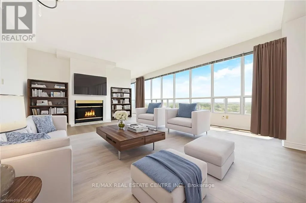 Cross Streets: Martin St and Main St. ** Directions: Martin Street, just north of Main Street. RARE "SKY SUITE" SOUTH FACING CONDO ... it's HIGHER than the PENTHOUSE! Breathtaking unobstructed Escarpment views - see the CN Tower on a clear day! We never see these units offered for sale. This highly sought-after condo has it all: 2 BEDROOMS + DEN, 3 BATHROOMS (Jack n Jill updated to large walk-in shower), HIGH 9' CEILINGS, 2 UNDERGROUND PARKING SPOTS (1 owned, 1 exclusive use), 2 OWNED LOCKERS, UTILITY ROOM in suite and it boasts a whopping 1625 SF ... one of the LARGEST condos in the building. Enjoy the spacious and bright living area w/ massive windows all around to highlight the most spectacular views. The kitchen offers a breakfast area, some updated Samsung and Bosch appliances and a convenient pantry. The combined open concept living and dining room is large enough for extended family celebrations and has loads of massive windows to highlight the stunning views. There are 2 generous bedrooms, one of which is the primary bedroom with walk-in closet and convenient 5-pc ensuite. The den is large enough to be used as a THIRD BEDROOM. Additional features include: $30,000+ in recent upgrades (2025): entire unit has been professionally painted throughout in a neutral tone (Benjamin Moore paint), upgraded lighting, new blinds in bedrooms and new flooring with higher-end sound insulation than required. The unit is also CARPET-FREE, there is in-suite laundry with in-suite walk-in utility room. The building includes a renovated lobby, indoor pool, sauna, fitness area, party room, car wash, community BBQ area and plenty of visitor parking. This is an exceptionally well-run complex in an excellent school district and is centrally located. It is a short walk to restaurants, shops, summer Farmers Market, schools, parks, beautiful Mill Pond and Milton's vibrant downtown. Condo Fees Include Heat, Hydro, Water, Bell Bulk TV & Internet, Parking, Building Insurance and Maintenance of Common Areas. MOVE IN and ENJOY ... Simplify Your Life! *Some photos virtually staged (id:27476)