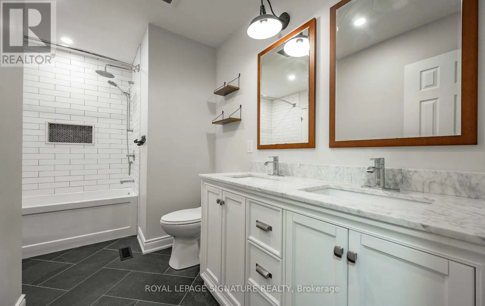 Cross Streets: Pitfield/Hwy 25. ** Directions: Hwy 25/Pitfield. Nestled within the family-oriented enclave of Dorset Park, this charming two-story residence boasts four bedrooms and one-and-a-half bathrooms, offering both comfort and convenience. The main floor showcases a spacious layout, accentuated by a two-piece powder room, an open-concept arrangement that seamlessly connects various living spaces, pristine white kitchen cabinetry, three stainless steel appliances (including a gas stove), and elegant hardwood flooring in the hallway, dining, and living areas. Access to the deck and fully fenced backyard enhances outdoor enjoyment. Upstairs, 4generously sized bedrooms cater to diverse needs, whether accommodating a growing family or creating a home office. The primary bedroom features semi-ensuite access to a modernly renovated bathroom equipped with double sinks and contemporary fixtures. The finished lower level provides extra living space, perfect for relaxation, TV watching, workouts, or an office. Its convenient location near the 401 highway, schools, parks, and public transit ensures easy access to essential amenities. (id:27476)