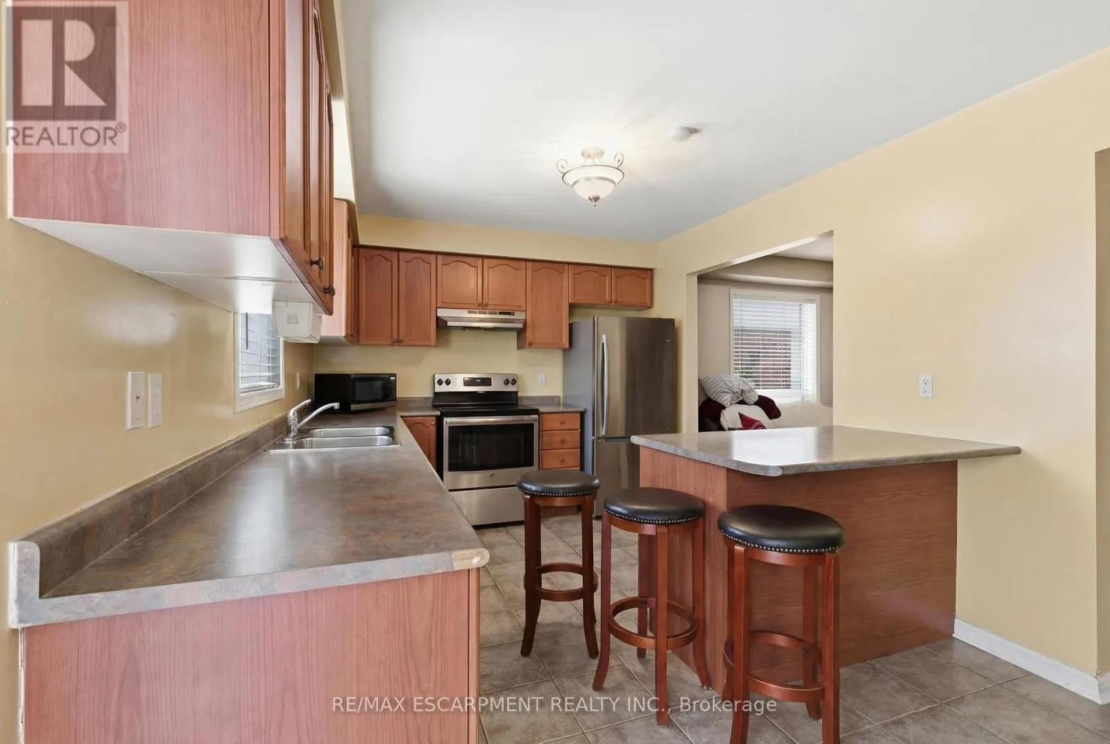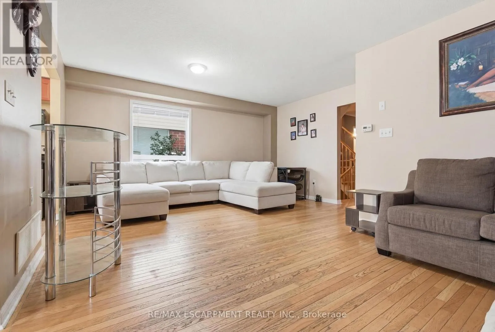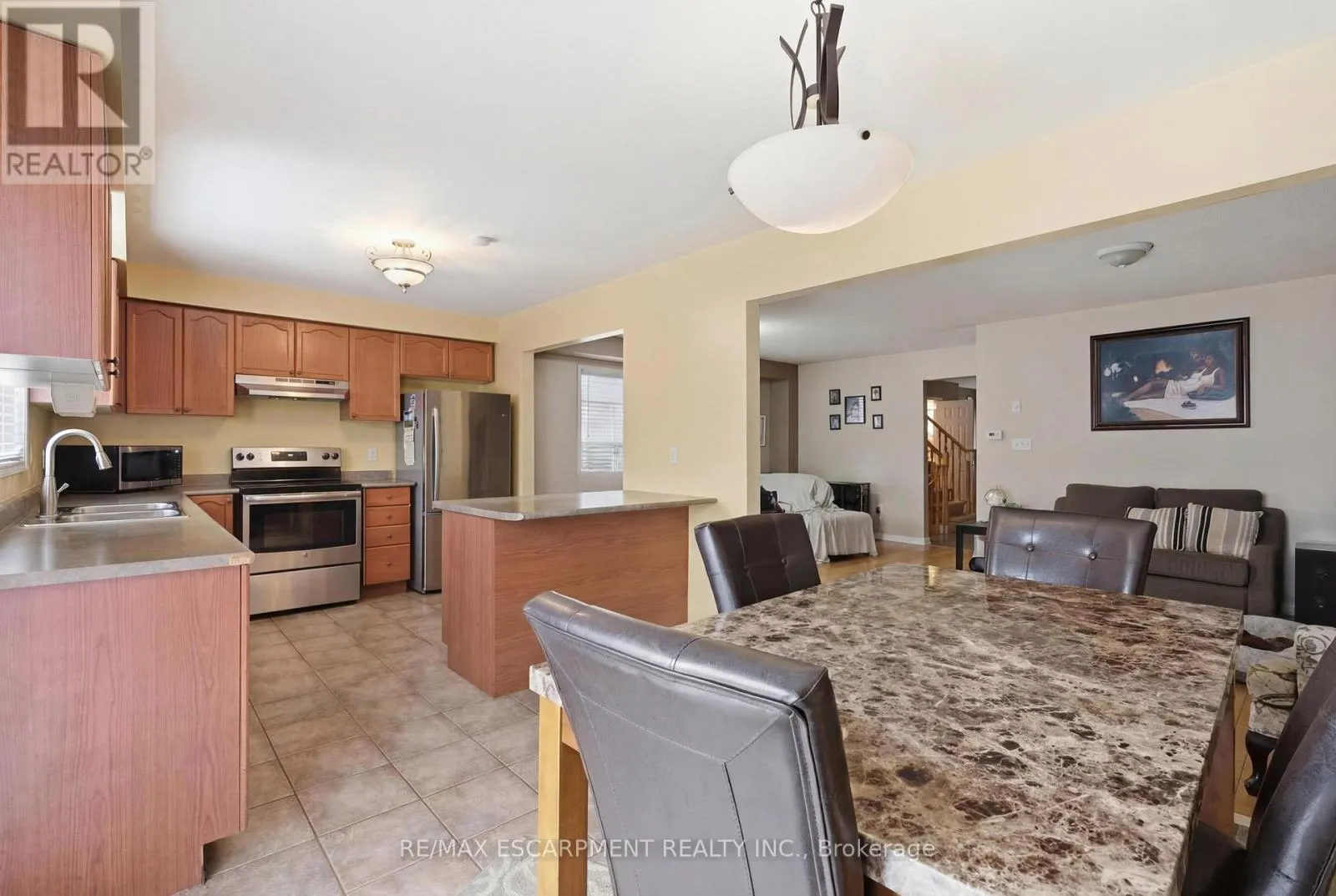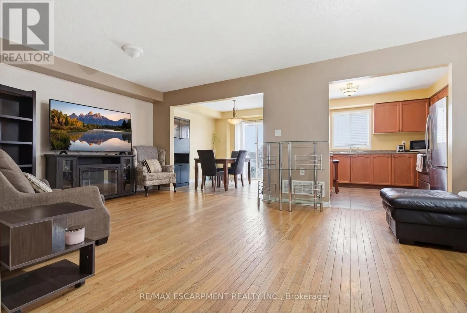 MAIN/JAMES SNOW End-unit townhome with large, open-concept floor plan. Living/dining room with hardwood flooring and gas fireplace. Kitchen includes breakfast bar, walkout to backyard and eat-in breakfast area. Great location close to woodlot/trails and parks. Easy highway access and close to shopping/schools. Large bedrooms and bonus den/study nook on the second floor currently being used as a home gym. Basement is partially finished for added living space. (id:27476)