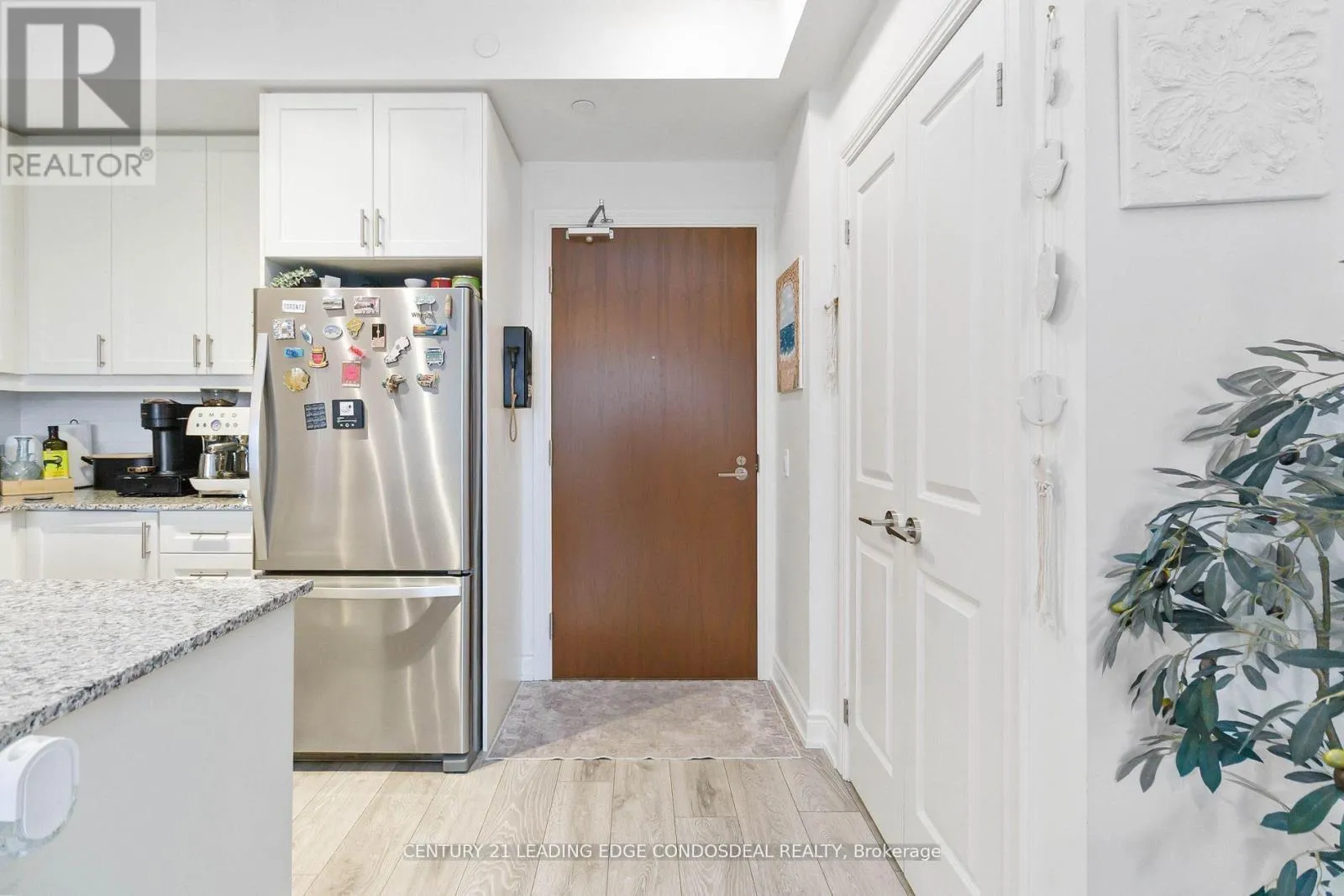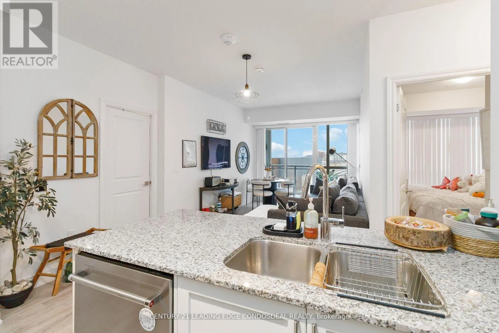 Cross Streets: MAIN ST E, THOMPSON RD S. ** Directions: W. Welcome to Art On Main, where luxurious executive condo living meets modern convenience in Milton. This exquisite 2-bedroom, 2-bathroom unit boasts a wealth of upgrades and is designed for those who appreciate the finer things in life. This unit also includes a lLOCKER conveniently located on the same level as your condo.Enjoy breathtaking views of the Escarpment from your bedrooms, living room, and private balcony, creating a serene atmosphere that youll love coming home to. Step inside to discover soaring 9-foot ceilings and a contemporary kitchen equipped with a stunning granite countertop, a stylish backsplash, and premium stainless steel appliances. This space is perfect for both cooking and entertaining. Convenience is at your doorstep with easy access to the Go Station, shopping centers, cultural venues like the Arts Centre, recreational facilities, a library, diverse dining options, and parks, all just minutes from Highway 401. As a resident, you will enjoy an array of outstanding amenities, including a 24-hour concierge, a fully-equipped fitness center, a party room for gatherings, a pet spa, and an outdoor pool. Unwind on the rooftop terrace complete with a BBQ and fireplace, relax in the hot tub or sauna, or join a yoga class in the dedicated yoga room. Guest suites and visitor parking ensure that your guests feel welcome. Don't miss out on this incredible opportunityact fast, as this gem wont last long! (id:27476)