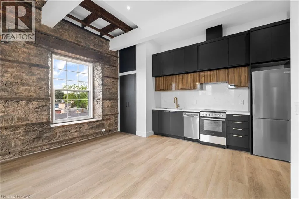 Main Street E and James Street Discover a perfect blend of modern luxury and historic charm in this trendy one-bedroom loft located in the heart of downtown Milton. A beautifully designed common hallway welcomes you with warmth and sophistication, leading to a striking Tiffany blue door that frames the entrance to this inviting unit. Inside, timeless character meets contemporary design with hardwood floors, exposed beams, and original stonework that highlight the building's rich history. The modern kitchen features stainless steel appliances, a sleek porcelain backsplash, softtouch cabinetry, and oversized window sills that fill the space with natural light and create an airy, open feel. Enjoy the best of Milton right at your doorstep-steps from La Toscana, Pasqualino Italian Restaurant, and the Milton Farmer's Market, with convenient access to major highways, toprated schools, and scenic parks. Experience boutique loft living at its finest-where heritage and modern comfort come together beautifully. Short term corporate rentals will be considered. (id:27476)