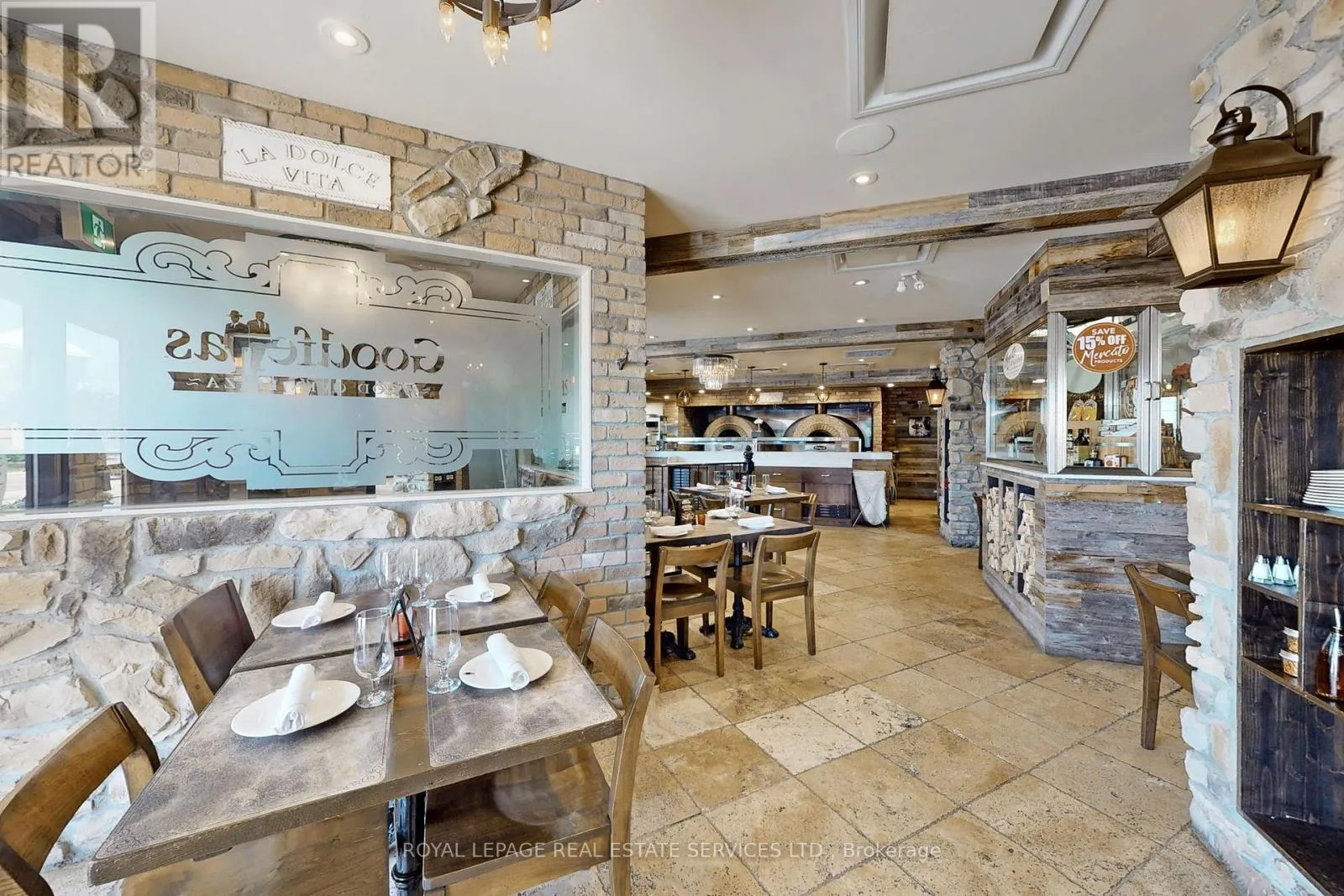 Cross Streets: Ontario St & Main St. ** Directions: Head south on Ontario St towards Pearl St and the property will be on the west side of Ontario St. Rarely offered, fully fixtured restaurant space available in the heart of Milton at the busy intersection of Ontario Street and Main Street. Located just steps from Milton's downtown core, this plaza benefits from strong visibility and ample parking for dine-in customers.The space is approximately 3,200 square feet and is well equipped for a new operator to take over with minimal downtime. Existing improvements include wood-burning pizza ovens, a Rational oven, full exhaust hood, walk-in coolers, pylon signage, and an impressive main entrance. The premises also offers a liquor licence capacity of 140 seats. Gross rent is $6,392 per month, inclusive of TMI and HST. Lease in place until 2032 with 2 additional 5 year renewal options. Two subtenants are in place and must be assumed until November 2027. Please do not go direct or speak to staff. Your discretion is appreciated. (id:27476)