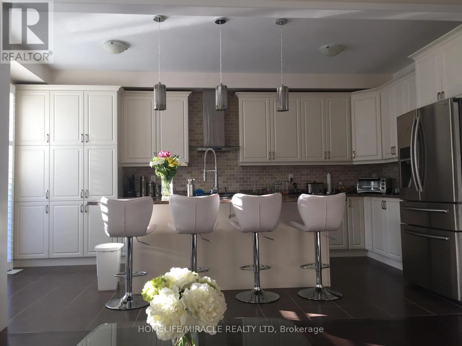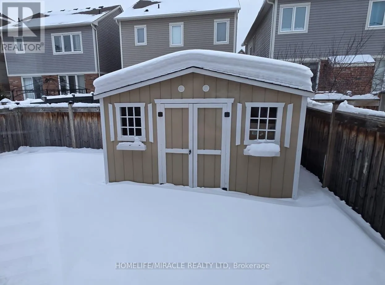 Bronte St & Ruhl Dr This beautifully maintained home features dark hardwood floors on the main level, California shutters throughout, and a cozy gas fireplace in the family room. The chef style kitchen offers breakfast area, top-of-the-line stainless steel appliances, gas stove with chimney hood fan, stone backsplash, and ample storage-perfect for family living. The second floor features four spacious bedrooms and a convenient laundry room with built-in cabinets and front-load washer and dryer. The newly finished approved personal use basement offers modern finishes, an electric fireplace, gold accent fixtures, and a spacious recreation room with projector wiring and Bluetooth ceiling speakers that is ideal for family movie nights.Basement Kitchen is not meant to be used as a second kitchen (No Stove). The exterior features stamp concrete on porch, front yard driveway, side of the house and backyard with 8 by 12 storage shed. Located in a family-friendly neighborhood with schools and grocery stores within walking distance, and close to parks and everyday amenities. A warm, stylish home that's perfect for families - a must see! (id:27476)