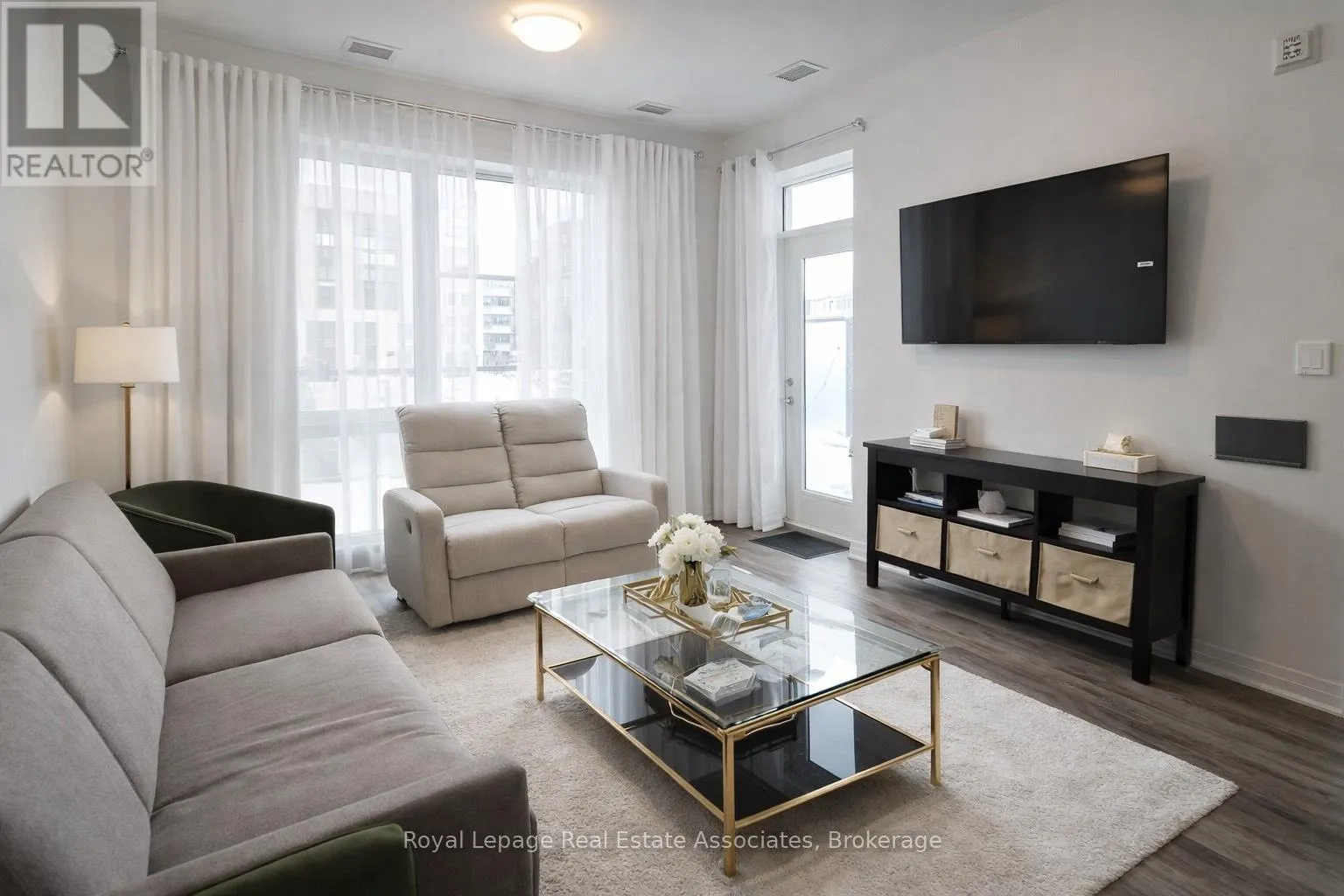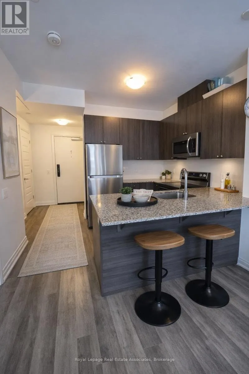 Tremaine Rd & Louis St. Laurent Available April 1. Experience refined modern living in this elegant and spacious 1-bedroom, 1-bathroom ground-floor condo, located in the prestigious Walker community of Milton. Offering 557 sq. ft. of thoughtfully designed interior living space, complemented by an impressive 248 sq. ft. private patio, this residence delivers a seamless blend of sophistication, comfort, and functionality. The contemporary open-concept layout is enhanced by soaring 9-foot ceilings, creating a bright and airy atmosphere throughout. Includes one underground parking space and one locker for added convenience. Residents enjoy access to exceptional, hotel-inspired amenities including a state-of-the-art fitness centre, beautifully appointed social lounge, rooftop terrace, tranquil courtyard, and 24-hour concierge service. Ideally positioned steps from parks and scenic trails, and conveniently close to upscale shopping, dining, top-rated schools, hospitals, GO transit, and major highways-offering effortless connectivity for today's lifestyle. An exceptional opportunity to lease a luxury residence in one of Milton's most sought-after communities. (id:27476)