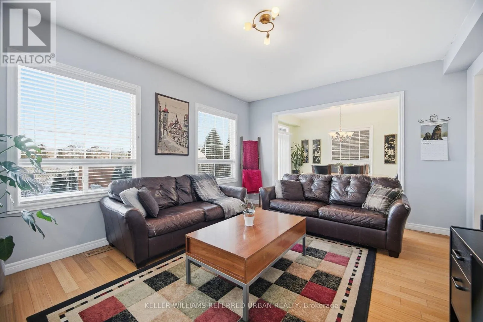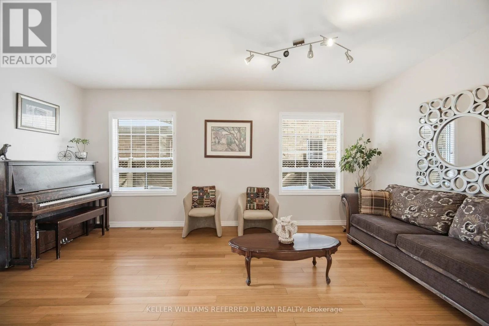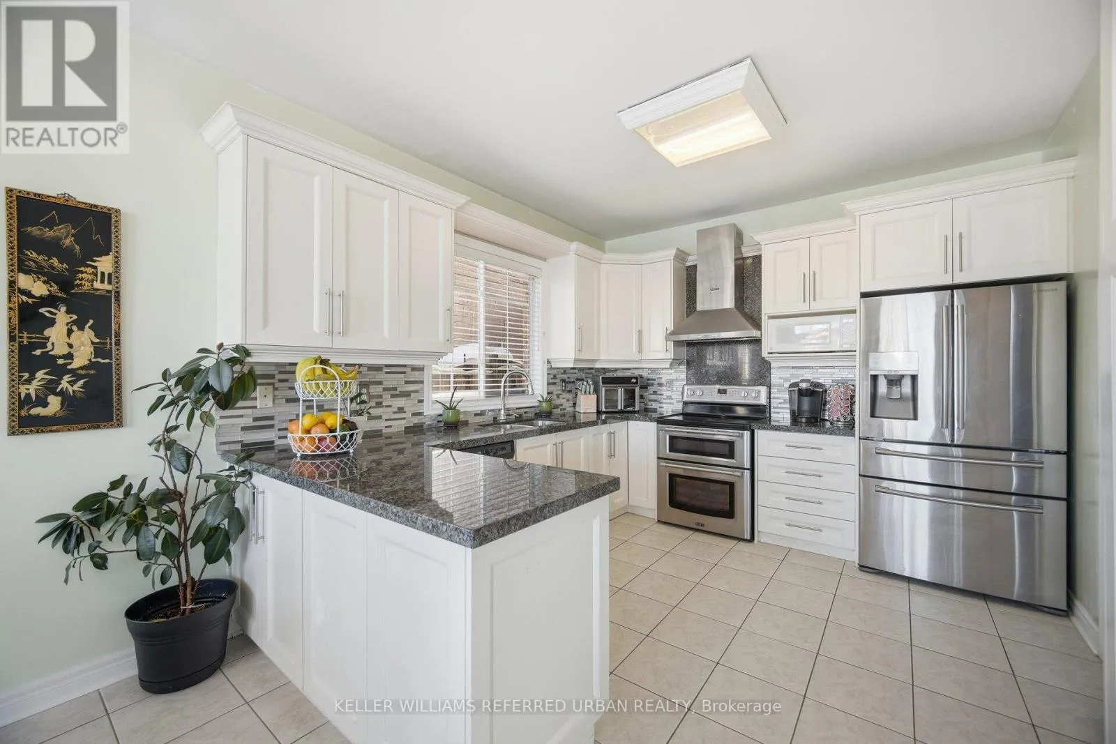 Thompson and Main Welcome to this beautifully appointed 4-bedroom, 5-bathroom detached residence with a double-car garage, ideally located in Milton's highly desirable Dempsey neighbourhood and backing onto full privacy in the form of a tranquil ravine. A bright, double-height foyer leads you to the main level, which features an open-concept living and dining area enhanced by elegant hardwood flooring and an abundance of natural light. At the heart of the home is the updated eat-in kitchen, showcasing crisp white cabinetry, dark granite countertops, a stylish backsplash, and quality appliances. The spacious breakfast area offers a walkout to the backyard and overlooks the inviting family room, complete with hardwood floors, a cozy fireplace, and large picture windows framing ravine views. The upper level offers four generously sized bedrooms and three full bathrooms. The private primary retreat, tucked away at the rear of the home, features a walk-in closet and 4-piece ensuite with a soaker tub, large vanity, and separate shower. Bedrooms two and three share a well-designed Jack-and-Jill bathroom, while the fourth bedroom enjoys its own private ensuite and double. The finished basement adds exceptional versatility with a large recreation area, full bath, and two bedrooms. Step outside to a private yard that's fully fenced, thoughtfully landscaped with mature gardens, lush greenery, and multiple seating areas, including a flagstone patio. Ideally located close to grocery stores, restaurants, theatres, shopping, and public transit, and within walking distance to schools, parks, the library, and the arts centre. Easy access to Highways 401 and 407 ensures effortless commuting. (id:27476)