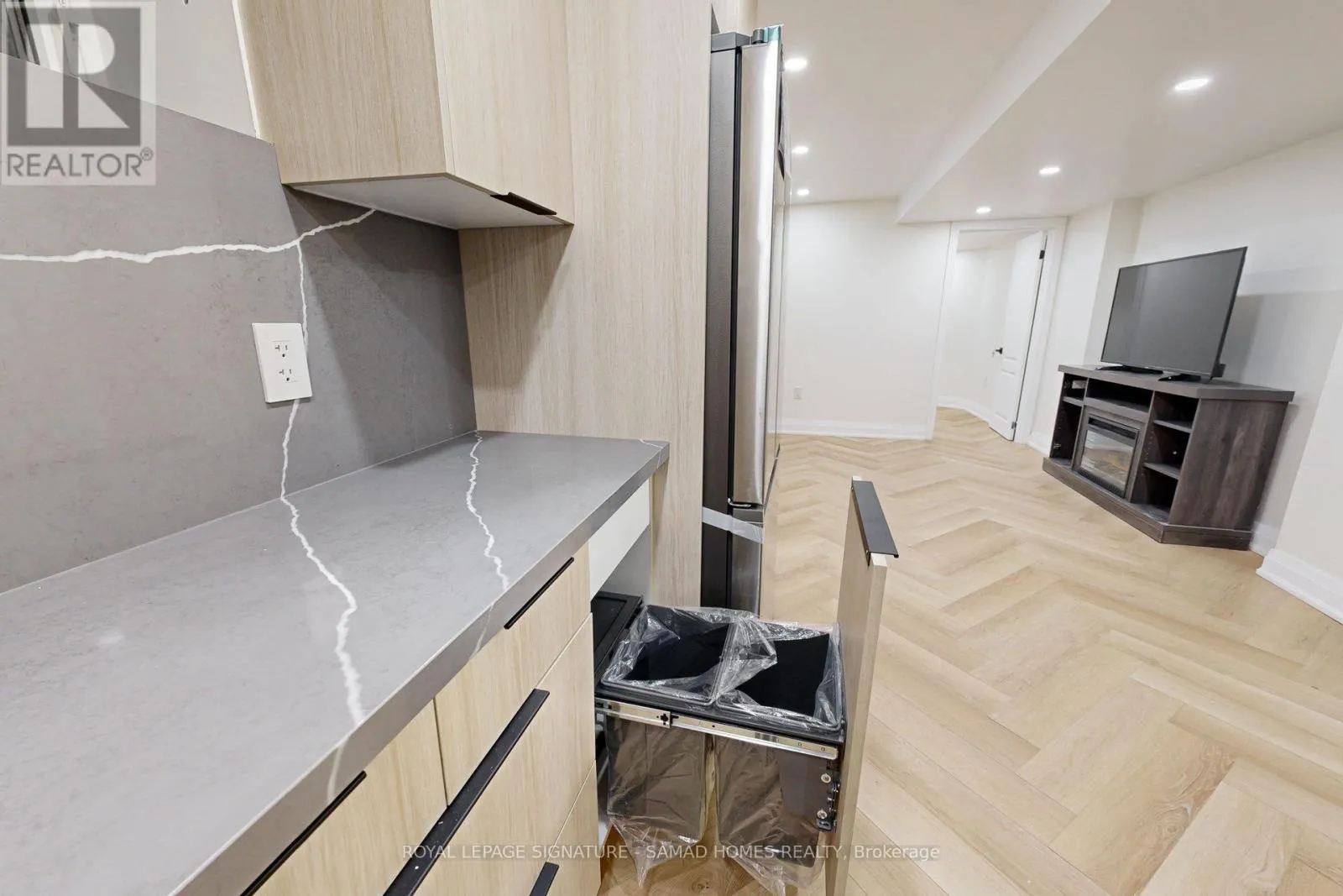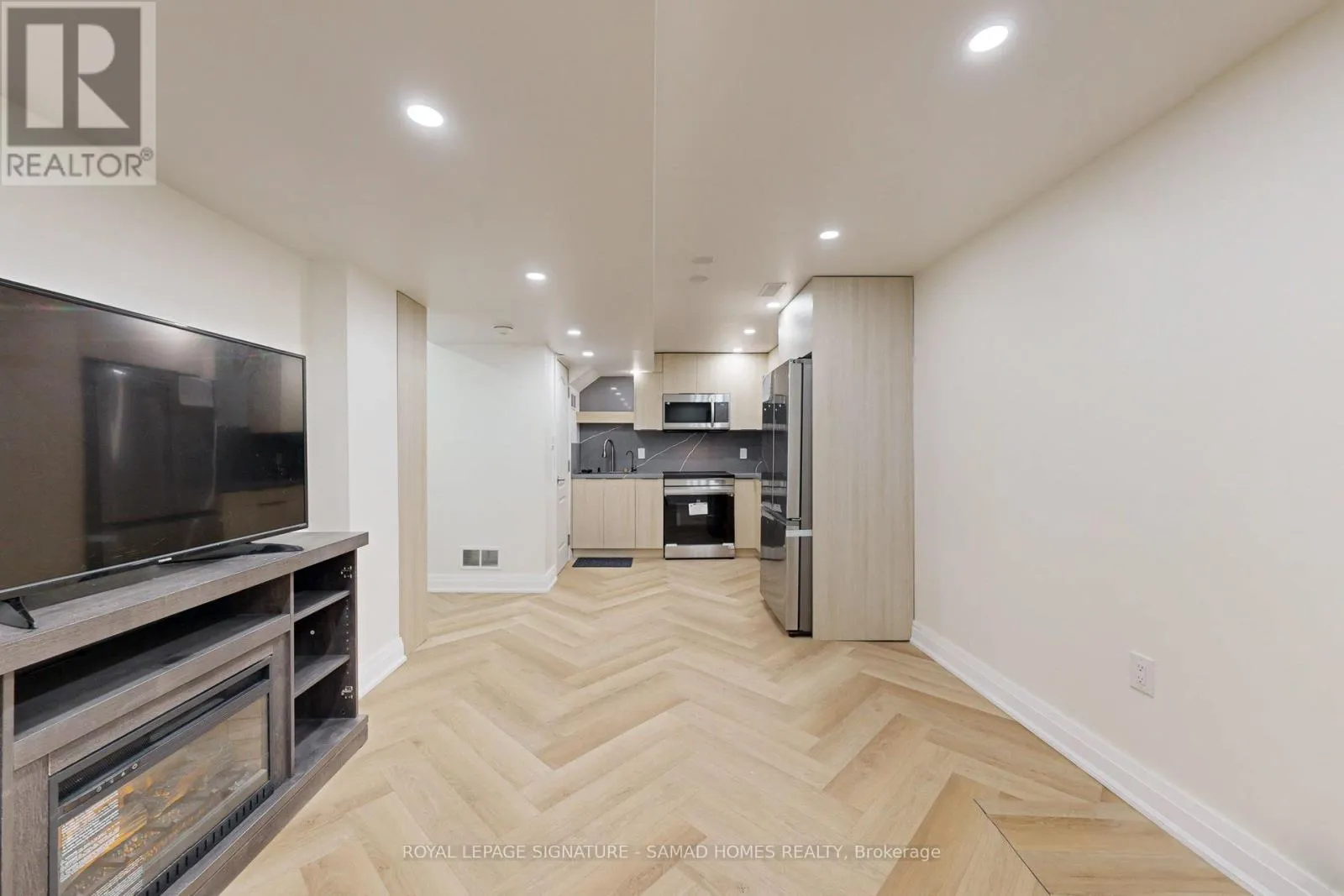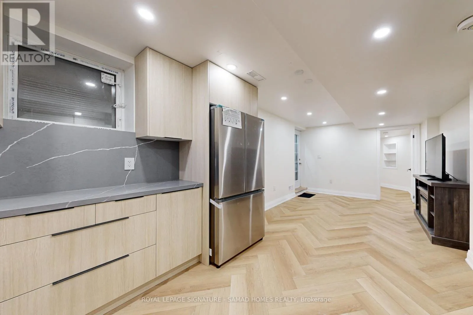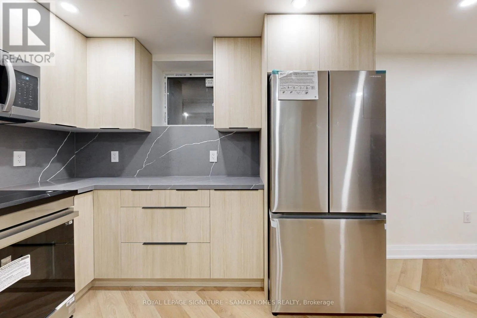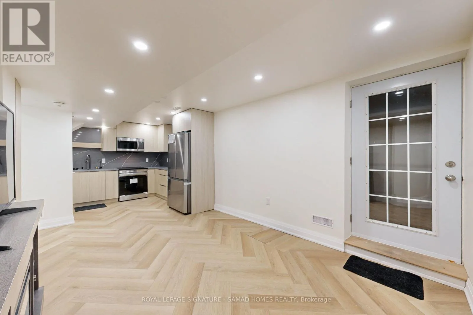 Main St E/Maple Ave Discover the perfect blend of comfort and style in this newly finished 1-bedroom basement apartment with below grade separate entrance designed with meticulous attention to detail and top-tier materials. Open-concept layout with ample natural light, featuring premium high quality artificial white oak vinyl flooring for durability and elegance. Large window in the bedroom with built in storage offering comfort and privacy. Step into the articulately designed kitchen featuring brand new stainless steel appliances ( latest technology induction range stove , Microwave and hood fan , double door 32 fridge & freezer). Quartz countertop with stunning quartz backsplash. Enjoy a stylish waterfall drop in sink with countless features such as a 3 way washing faucet, filtered water tap, jet cup washing and soap dispenser.Modern 3-piece bathroom featuring a glass-enclosed shower with two way functional system, contemporary fixtures and a modern vanity. In-suite washer and dryer for your convenience with laundry cabinetEnjoy complete privacy in this fully soundproofed unit with enhanced safe n sound insulation between floors!Located within minutes to HWY 401, GoodLife Fitness, and plenty of restaurants! Easy access to local parks, schools, shopping centers, and public transportation. (id:27476)