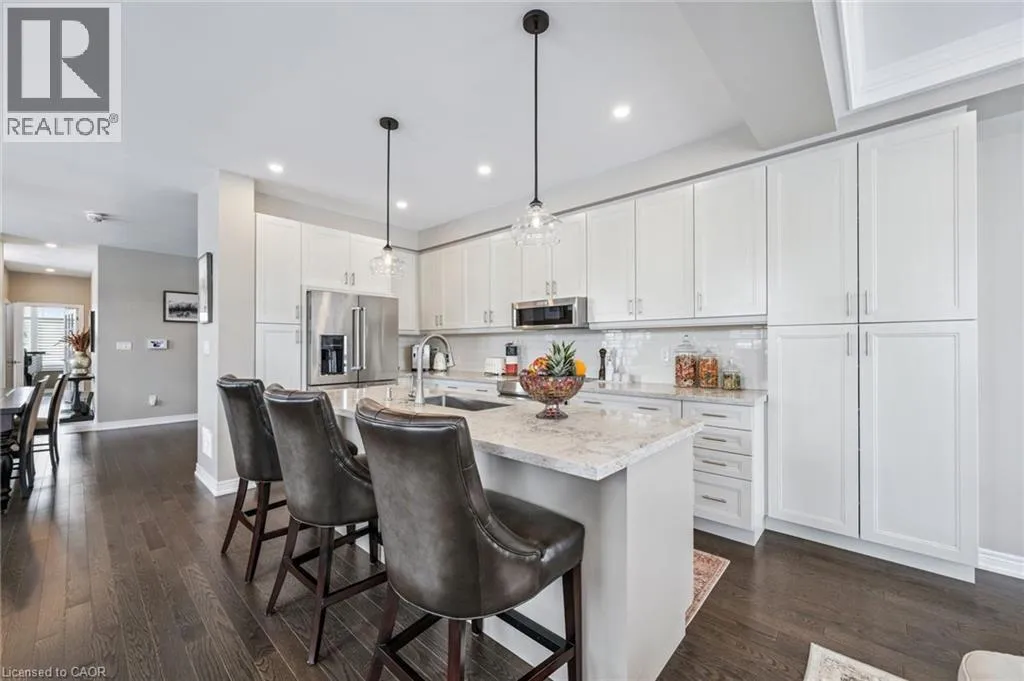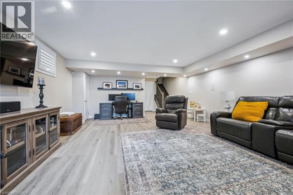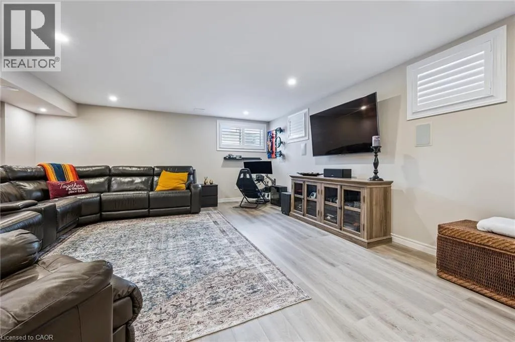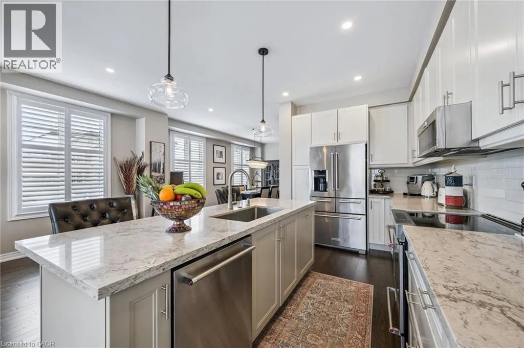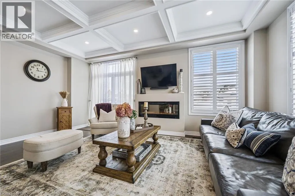 Refined design, thoughtful luxury, and exceptional finishes define this meticulously curated residence at 1383 Farmstead. Every detail has been intentionally selected to create a timeless and elevated living experience. The stunning open-concept main floor is designed to impress, offering rich hardwood flooring, coffered ceilings, California shutters throughout, and abundant natural light. An elegant wood staircase with wrought-iron spindles anchors the space, while upscale light fixtures and pot lights enhance the homeâs refined ambiance. The high-end kitchen showcases beautiful granite countertops with under-cabinet lighting, a coordinated backsplash, and exceptional craftsmanship. A discreetly positioned powder room, versatile office or piano room, and an elegant electric fireplace complete this inviting level. Upstairs, three spacious bedrooms and two full bathrooms provide elevated comfort. The second bedroom features ensuite privilege access. The luxurious primary retreat offers two walk-in closets and a spa-inspired ensuite with a 6-jet rainfall shower tower. Hardwood flooring continues throughout, with ceramic tile in the bathrooms. A thoughtfully located laundry room and rare walk-in linen closet add everyday convenience. The bright lower level features a stylish open-concept great room with luxury vinyl plank flooring, California shutters, a four-piece bathroom with upscale finishes, wall-mounted speaker system, and a large storage room. Furnace and A/C are nearly new, offering efficiency and peace of mind. Outside, enjoy a fully fenced yard with irrigation system, custom shed, and professionally landscaped gardens featuring hydrangeas, hostas, and three Japanese maples. An exceptional home where quality, comfort, and design meet seamlessly (id:27476)