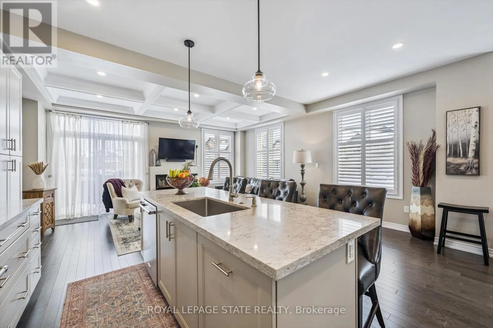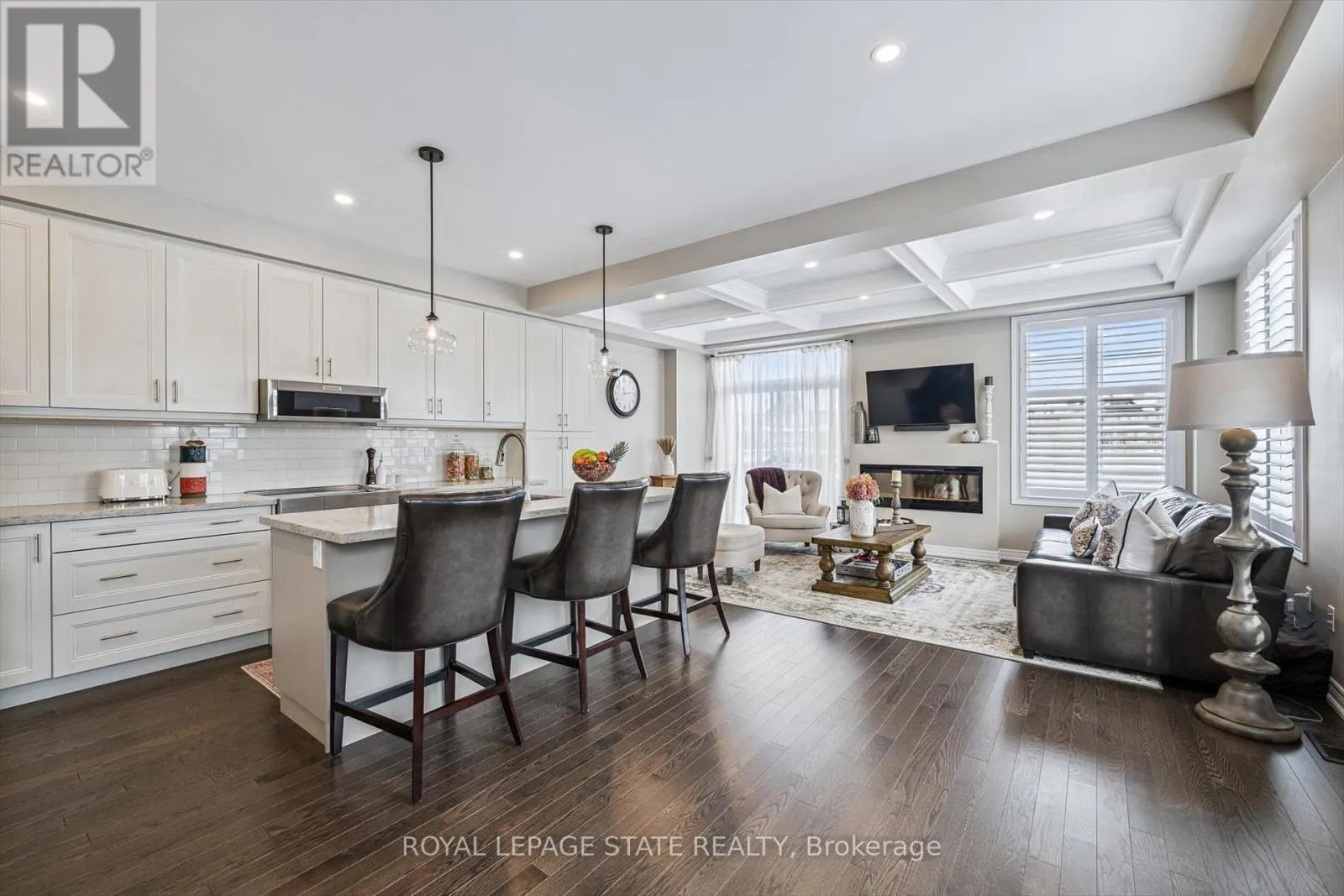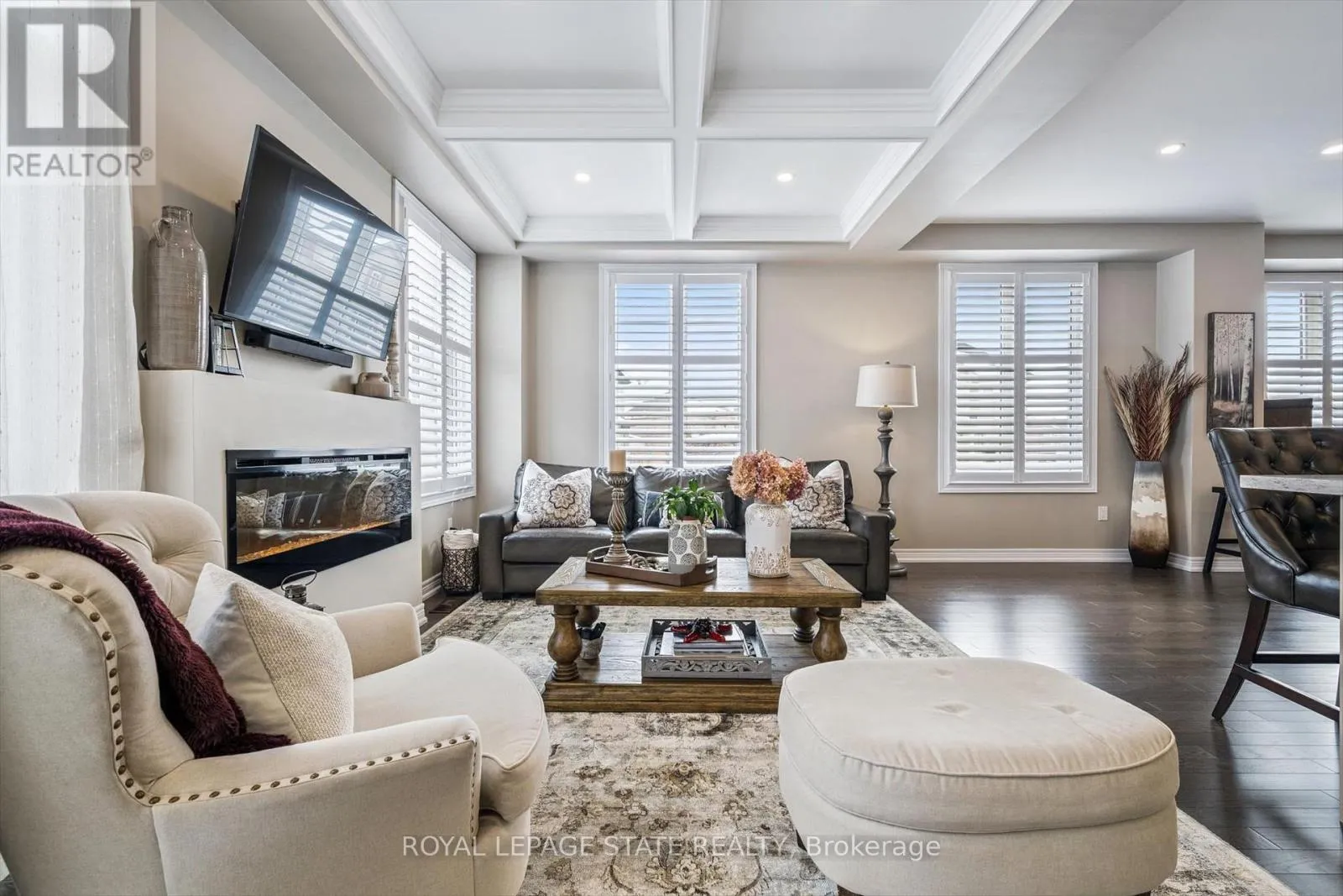 Cross Streets: Hamman and Farmstead. ** Directions: North from Britannia Road. Refined design, elevated comfort, and exceptional craftsmanship define this beautifully curated residence at 1383 Farmstead - a fully carpet-free home where every finish has been thoughtfully selected to create a timeless and sophisticated living experience.The stunning open-concept main floor showcases rich hardwood flooring, elegant coffered ceilings, California shutters throughout, and an abundance of natural light. A striking wood staircase with wrought-iron spindles adds architectural interest, while upscale light fixtures and pot lights create a warm, refined ambiance. The designer kitchen is both functional and impressive, featuring granite countertops, under-cabinet lighting, a coordinated backsplash, and impeccable craftsmanship. A discreet powder room, versatile office or piano room, and an elegant electric fireplace complete this inviting and beautifully balanced level.Upstairs, three spacious bedrooms and two full bathrooms provide exceptional comfort. The second bedroom offers convenient ensuite privilege access, while the luxurious primary retreat features two walk-in closets and a spa-inspired ensuite with a 6-jet rainfall shower tower. Hardwood flooring continues throughout the upper level, complemented by ceramic tile in the bathrooms. A well-appointed laundry room and rare walk-in linen closet add everyday practicality.The bright lower level extends the living space with a stylish open-concept great room finished in luxury vinyl plank flooring, California shutters, a four-piece bathroom with upscale finishes, wall-mounted speaker system, and generous storage. Furnace and A/C are nearly new, providing efficiency and peace of mind.Outdoors, enjoy a fully fenced yard with irrigation system, custom shed, and professionally landscaped gardens showcasing hydrangeas, hostas, and three Japanese maples.An exceptional, meticulously maintained home where quality, design, and comfort come together seamlessly. (id:27476)