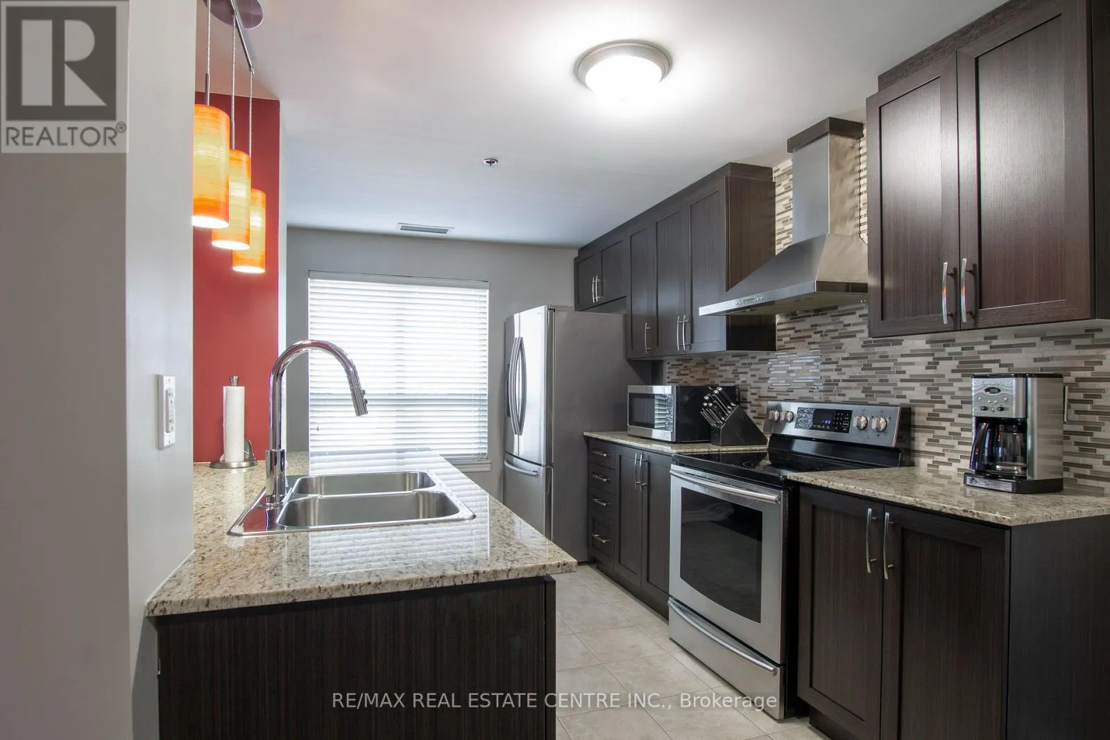 Cross Streets: Thompson/Laurier/Costigan. ** Directions: Laurier/Costigan. Welcome to this beautifully updated fourth-floor condo, offering 2 spacious bedrooms and 2 bathrooms in a well-maintained building. Featuring elegant hardwood flooring throughout and freshly painted walls, this unit combines comfort with sophisticated design. The kitchen has been enhanced with a custom cabinet pantry, sleek stainless steel appliances, and granite countertops. Ceramic flooring & quartz countertops in both bathrooms for a cohesive, upscale feel. Upgraded light fixtures add a warm, contemporary touch to each room. The second bedroom includes a built-in queen-sized Murphy bed, maximizing space and functionality perfect for guests or a home office setup. Both bedrooms are outfitted with California Closets, providing smart, stylish storage solutions. Two cars? No worries, this unit has TWO OWNED UNDERGROUND PARKING SPOTS and ONE OWNED STORAGE LOCKER. This move-in-ready condo offers modern conveniences and thoughtful upgrades in a desirable location. Don't miss your opportunity to own this exceptional condo! (id:27476)