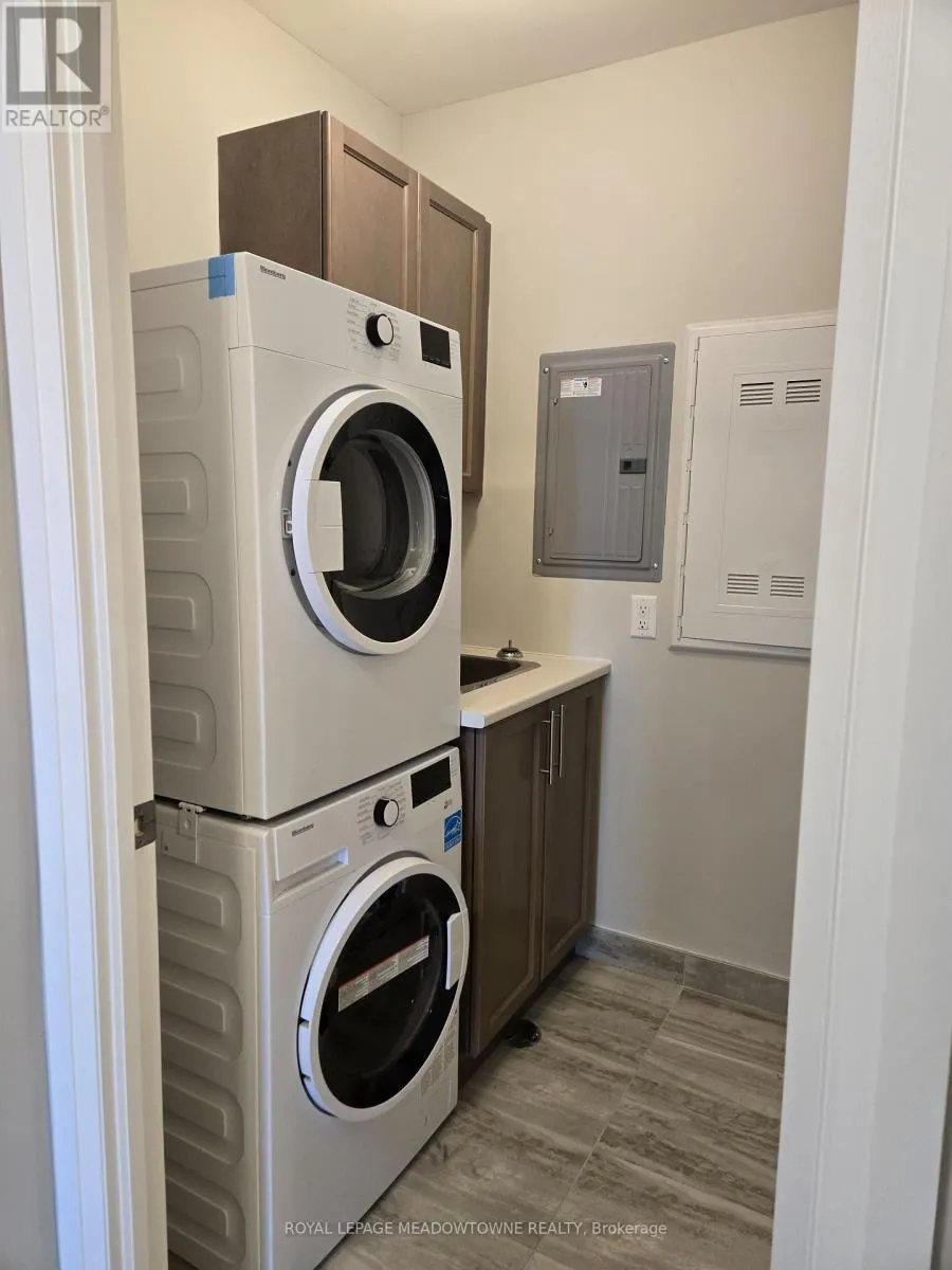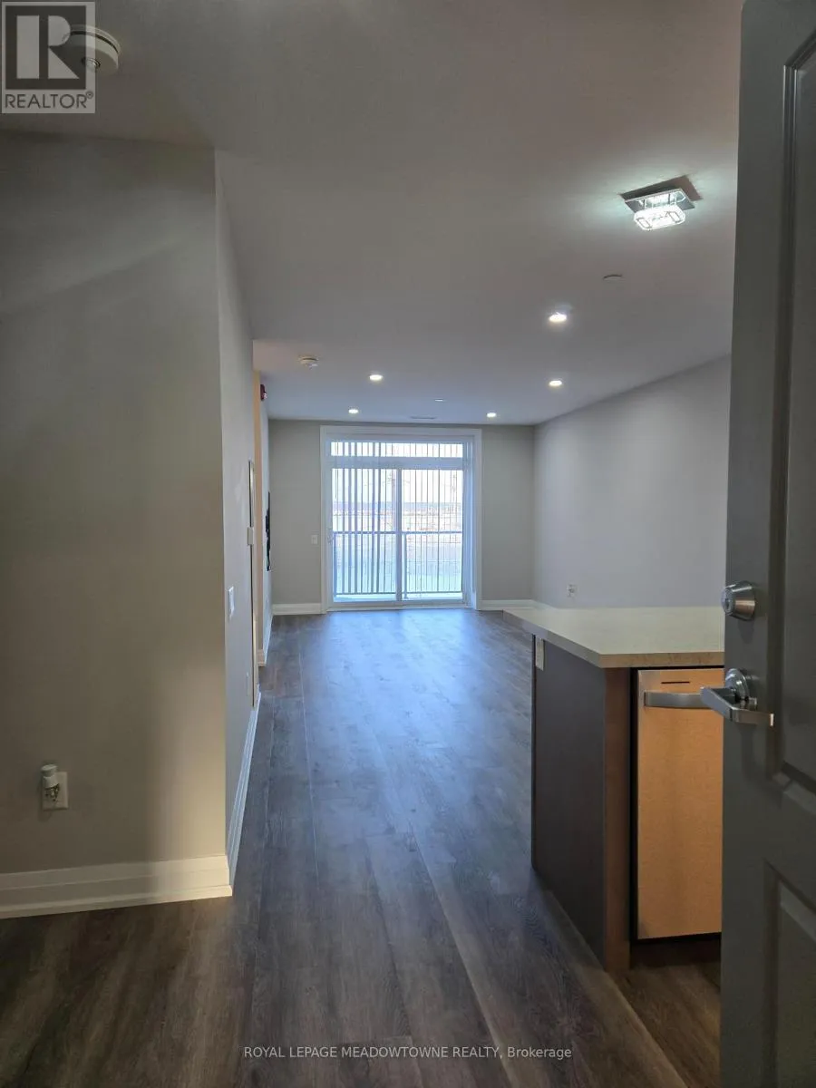 Derry Rd & Bronte St S LOCATION, LOCATION! This modern 1 bedroom + den condo, built in 2022, is ideally located in the heart of Milton; just steps to the hospital, shopping, parks, and everyday conveniences. Megson Terrace offers excellent amenities including a party room, large gym, games room, 1 underground parking space, and a locker. Inside, the 848sqft unit, you'll find a bright bedroom with a large closet and direct access to the balcony, along with convenient in-suite laundry. The stylish eat-in kitchen offers ample storage, medium-tone cabinetry, stone countertops and breakfast bar seating. Your open-concept living and dining area flows seamlessly to a generous 150sqft balcony, perfect for relaxing or entertaining. A separate den provides flexible space ideal for a home office or additional living area.A well-designed condo in a fantastic, central location; this unit truly has it all! (id:27476)