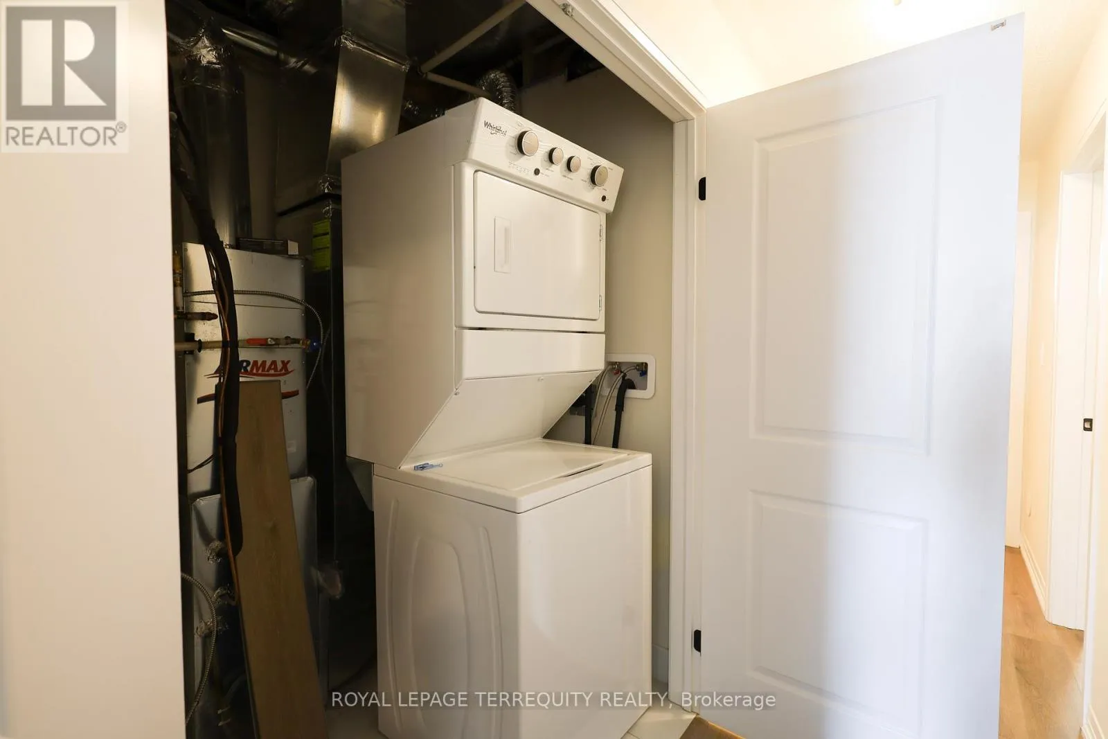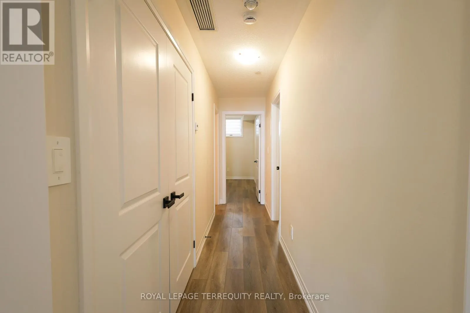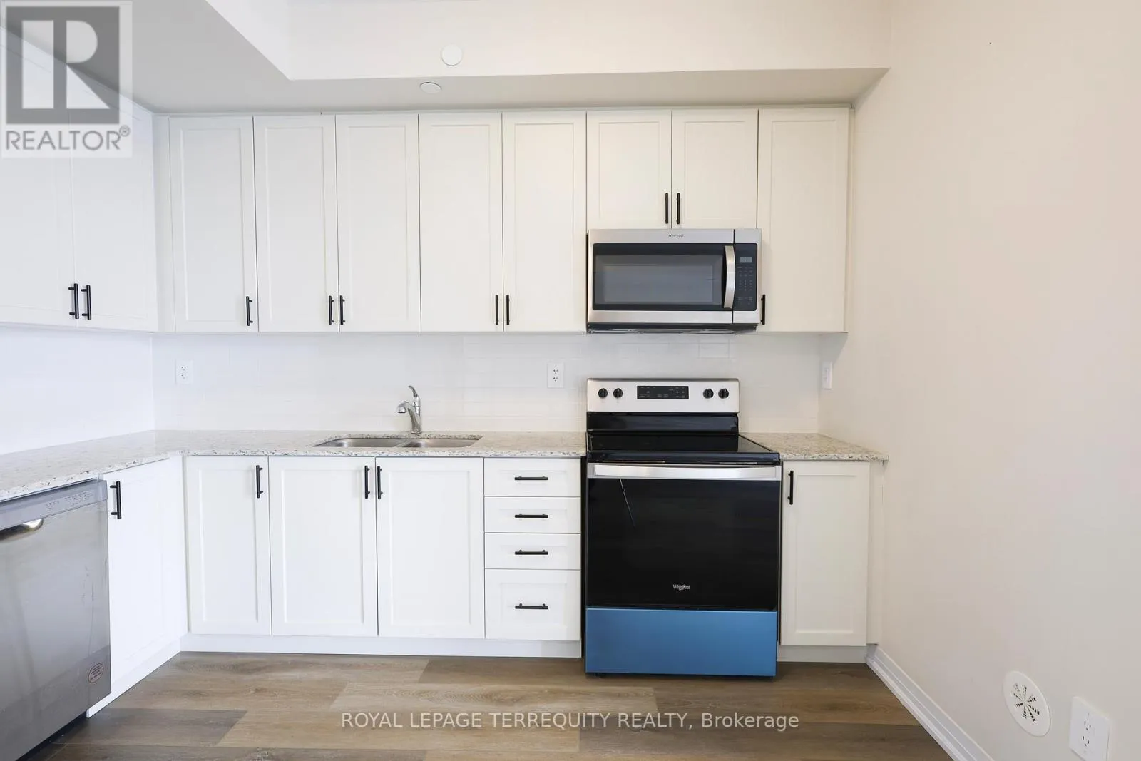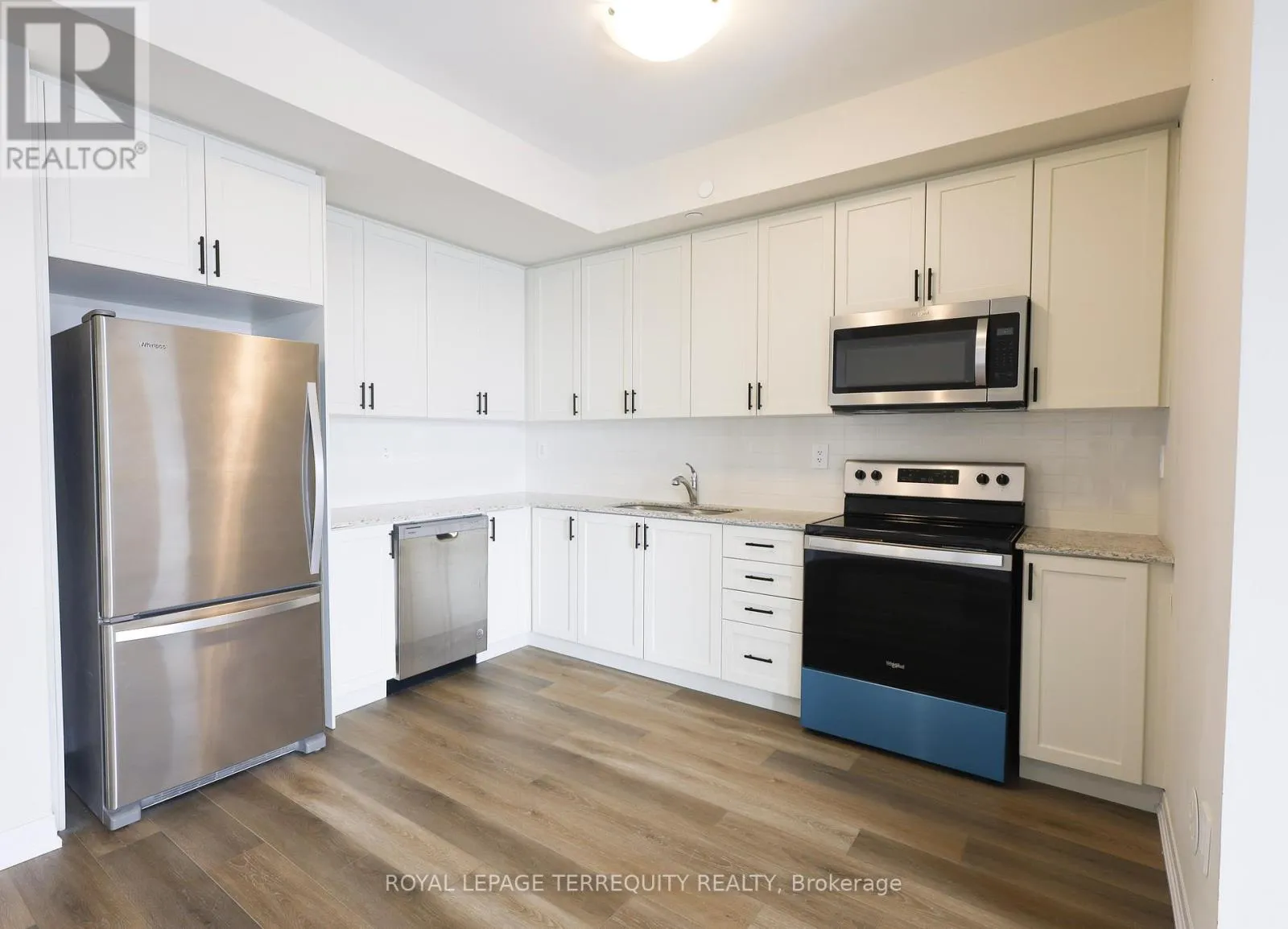 Britannia Rd/Rose Way Welcome to this bright and beautifully laid-out stacked townhome offering over 1,000 sqft of stylish living space. The open-concept layout features 9-foot ceilings, abundant natural light for a lower level unit, and a walkout to a private terrace - perfect for relaxing or entertaining. Functional corner kitchen boasts ample cabinetry, generous counter space, and stainless steel appliances. Two spacious bedrooms include large closets, with the primary suite featuring its own private ensuite. Convenient in-suite laundry completes this well designed home. Ideally located with quick access to Highway 401 and just minutes to Mississauga, Oakville, and Burlington. Close to shopping, dining, and everyday amenities - a fantastic opportunity in a growing community. (id:27476)