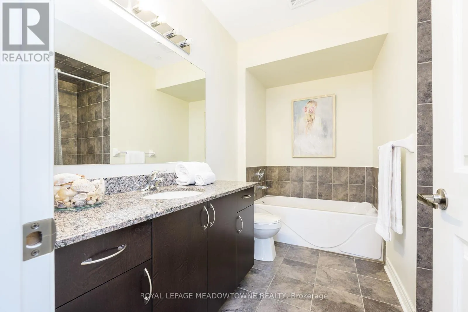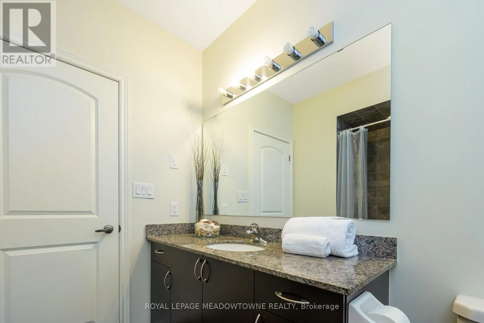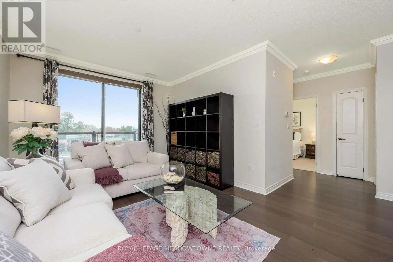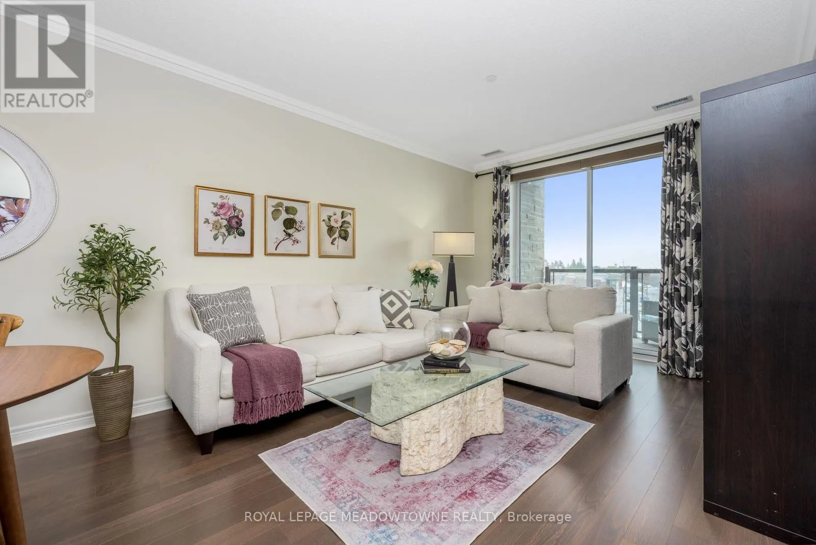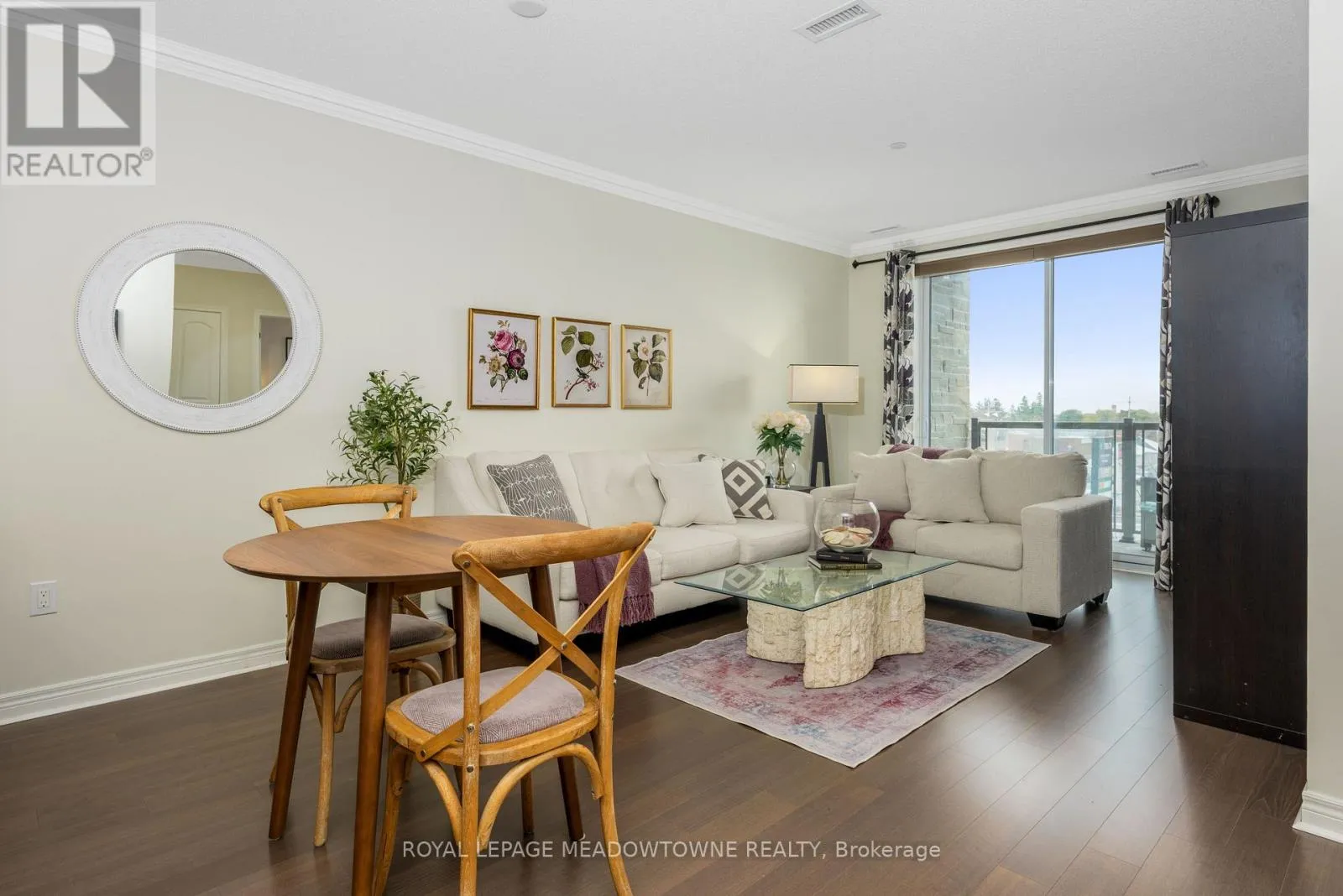 Cross Streets: Ontario & Main. ** Directions: . Comfort meets convenience in the heart of Milton. This beautifully maintained 2-bedroom, 2-bathroom suite offers 1,005 sq. ft. of thoughtfully designed living space in one of downtown's most sought-after communities. Enjoy energy-efficient geothermal heating and cooling, keeping utility costs manageable year-round. A welcoming foyer with a large front closet and additional storage in the laundry/mechanical room sets the tone for the functional layout. The stylish kitchen features a breakfast bar peninsula with pendant lighting and seating for four, stainless steel appliances, granite countertops, and ample cabinetry - perfect for both everyday living and entertaining. The open-concept living and dining area is finished with laminate flooring and walks out to a private south-facing balcony overlooking Main Street, offering charming downtown views. The spacious primary retreat includes broadloom flooring, two large closets, and a private 4-piece ensuite complete with a granite-topped vanity, under-mount sink, separate shower, and deep soaker jetted tub. The second bedroom is well-sized with broadloom flooring and a generous closet, complemented by a second full 4-piece bathroom featuring a granite vanity and tub/shower combination. This unit includes one underground parking space and a storage locker. Residents enjoy access to exceptional amenities including a fitness centre, party room, games room, and ample visitor parking - all just steps from transit, shops, restaurants, and everything downtown Milton has to offer. Urban convenience and comfortable living, all in one place. (id:27476)