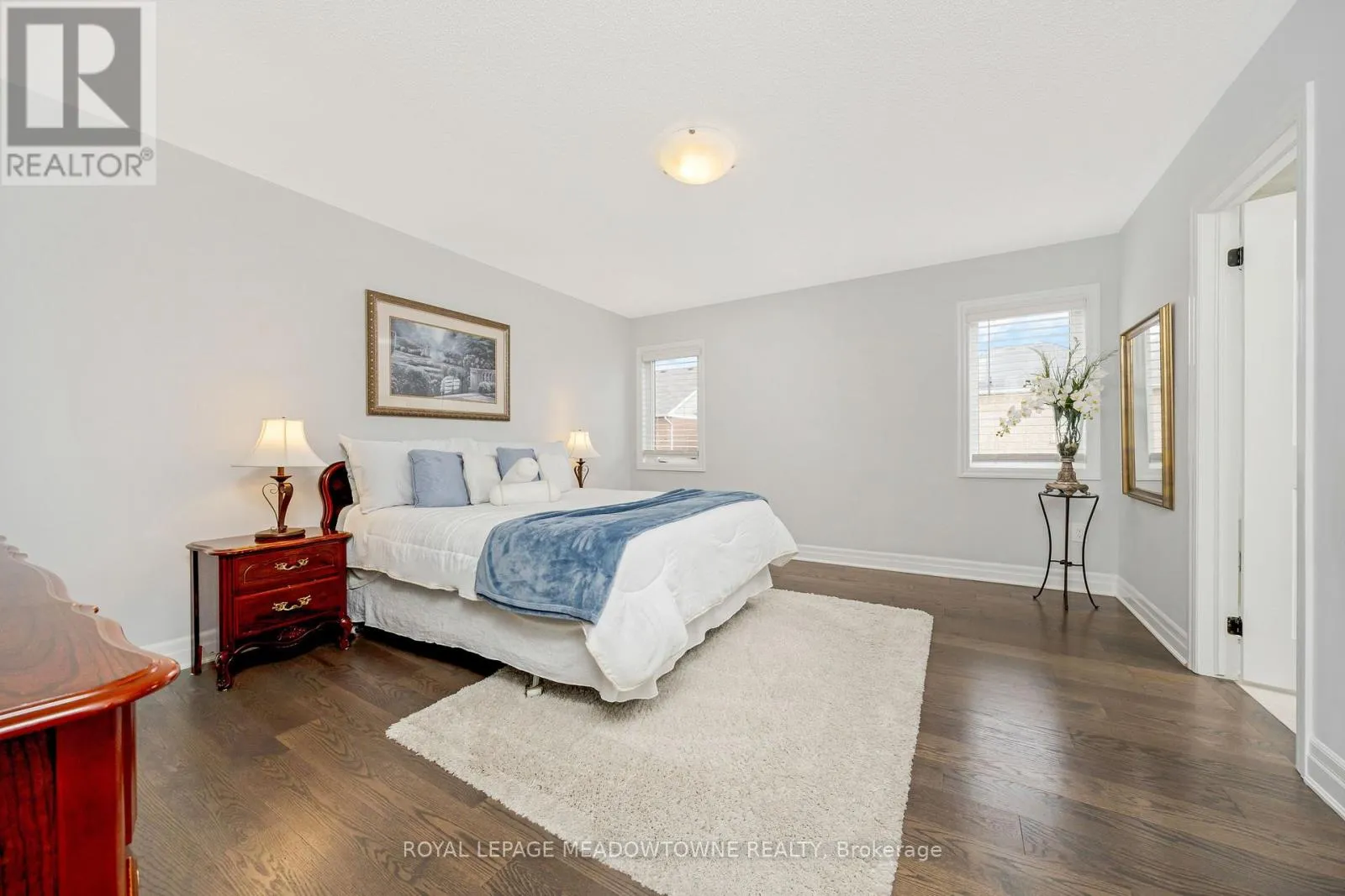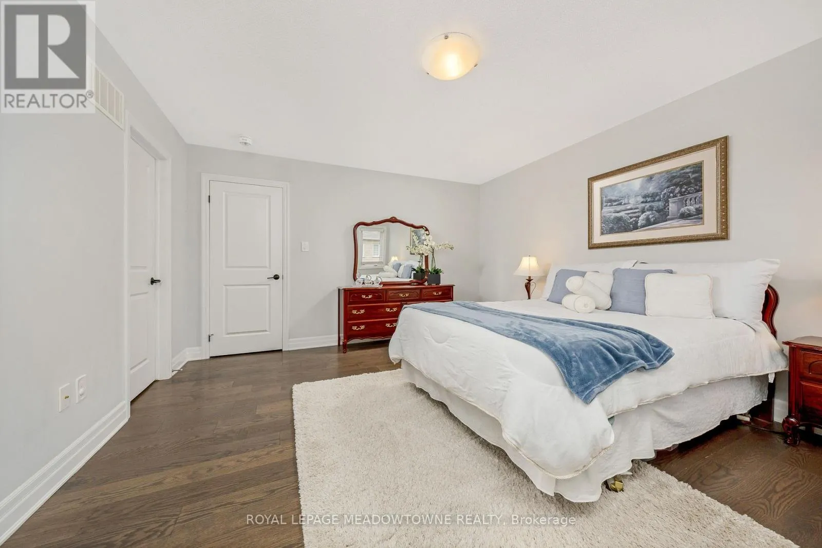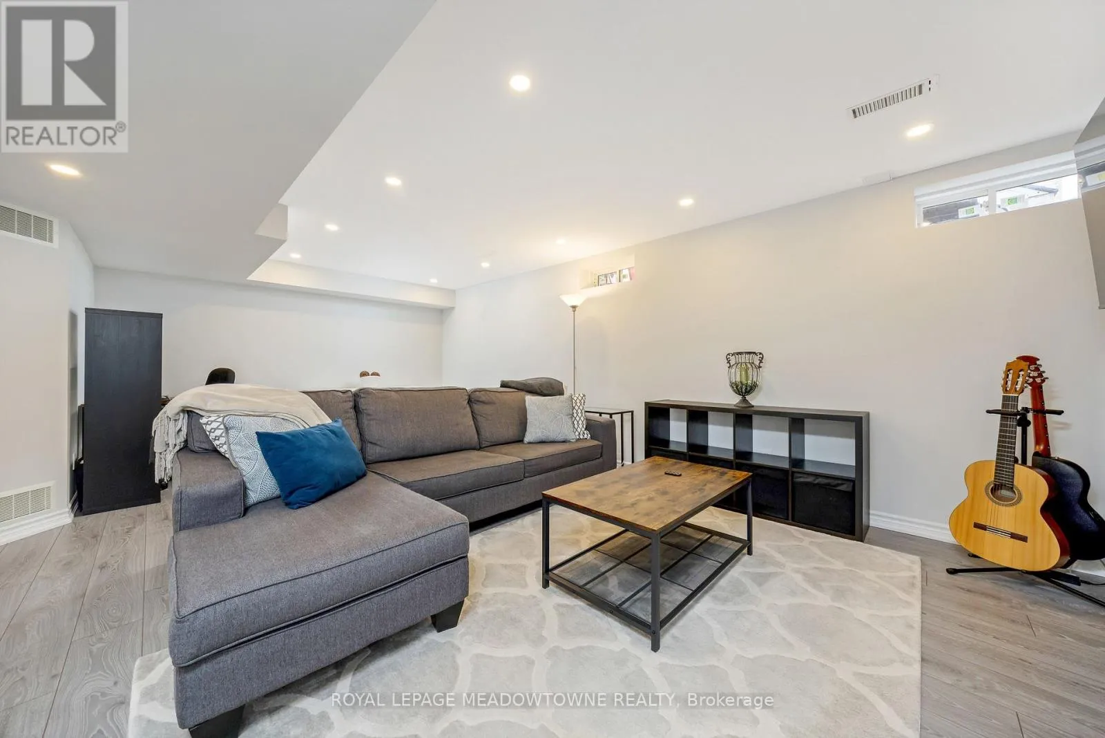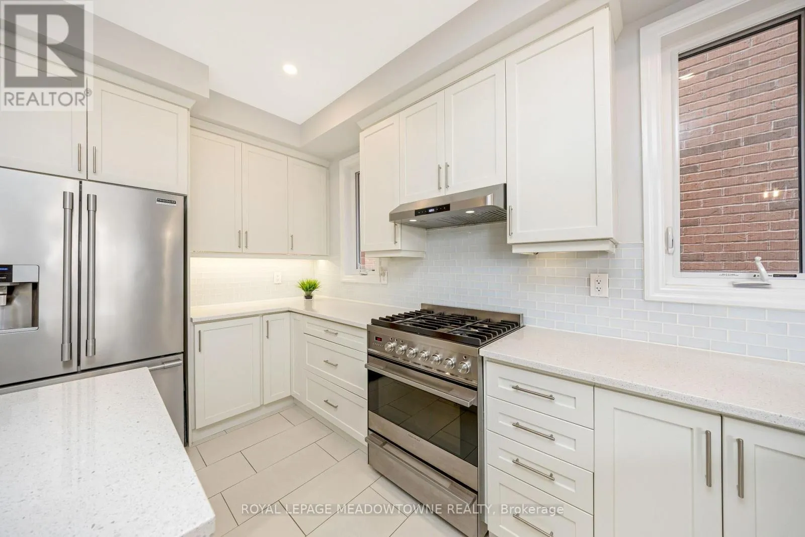 Brittania/Farmstead This lovely home is a Mattamy-built Nobleton model offering nearly 1,800 sq ft above grade plus approximately 700 sq ft of finished basement space, set on a quiet, low-traffic crescent in Milton where kids can ride bikes and walk to local schools. Aggregate concrete walkway and extended side patio lead to a backyard designed for gathering, featuring an integrated BBQ, fire pit cooking area, and low-maintenance vinyl shed. Main floor with 9 ft ceilings and spacious front entry. Open layout connects kitchen, dining, and family room. Kitchen includes centre island with built-in microwave, upgraded countertops and backsplash, pot lights, and gas stove. Breakfast bar overlooks main living space. Hardwood stairs with iron pickets from main to second floor. Upstairs laundry for added convenience. Primary bedroom with walk-in closet and ensuite featuring glass shower. Secondary bedroom with private balcony for added privacy. Finished basement features fireplace and built-in bar area, ideal for movie nights, home office, or entertaining. A well-designed home combining layout, functionality, and outdoor living in a family-friendly setting. (id:27476)