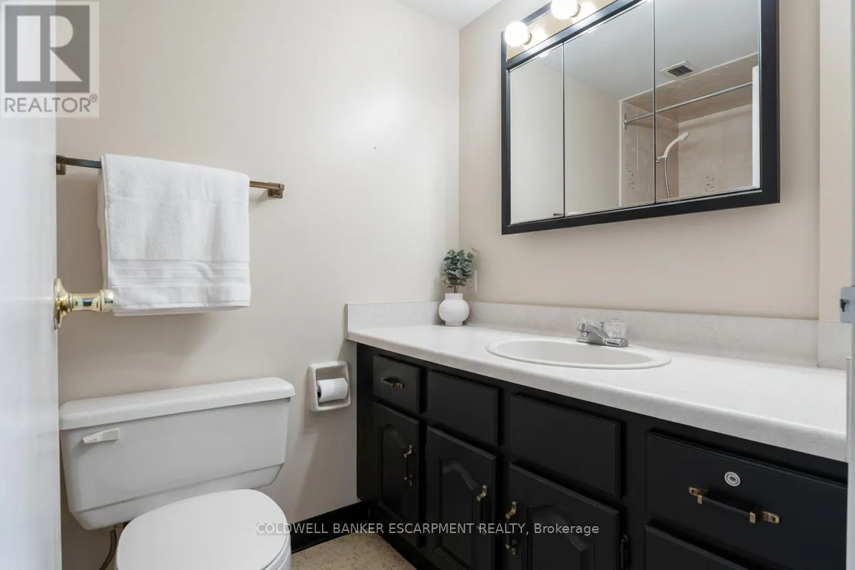 Cross Streets: Main St. E/Martin. ** Directions: Martin St., east on Millside, building on North side, 2nd driveway. Visitors parking at back of building. **Some photos are virtually staged** Ideally situated just steps from Milton's vibrant downtown and the scenic walking trails around Mill Pond, this bright and well-maintained 3-bedroom, 2-bathroom condo offers over 1,130 sq. ft. of living space. A perfect blend of comfort, functionality and value in one of Milton's most convenient neighbourhoods. Inside, you'll find a spacious living and dining area that's ideal for entertaining or relaxing. Incredible sunsets and Escarpment views from the balcony. The kitchen features classic solid wood cabinetry, ample counter space and a practical layout that connects easily to the rest of the home. A separate laundry room (with less than 2 year old washer and dryer) offers excellent storage for daily essentials and extras. Down the hall, a 4-piece bathroom with a full bathtub serves the secondary bedrooms, while the primary suite includes a private 2-piece ensuite and generous closet space. Two additional bedrooms provide flexibility for guests, children, or a home office. This unit's thoughtful layout, generous room sizes, and abundance of natural light make it feel like home from the moment you walk in. Located in a quiet, well-managed building with friendly residents and unbeatable access to downtown amenities, transit, shopping and Milton's parks and trails, this condo offers both comfort and lifestyle. Condo fee includes: Heat, Hydro, Water, Cable TV and Internet! The building and common areas have been beautifully maintained with recent upgrades, including a fully renovated parking area (2025), new balcony railings and roof replacement (2023). **Some photos are virtually stage (id:27476)