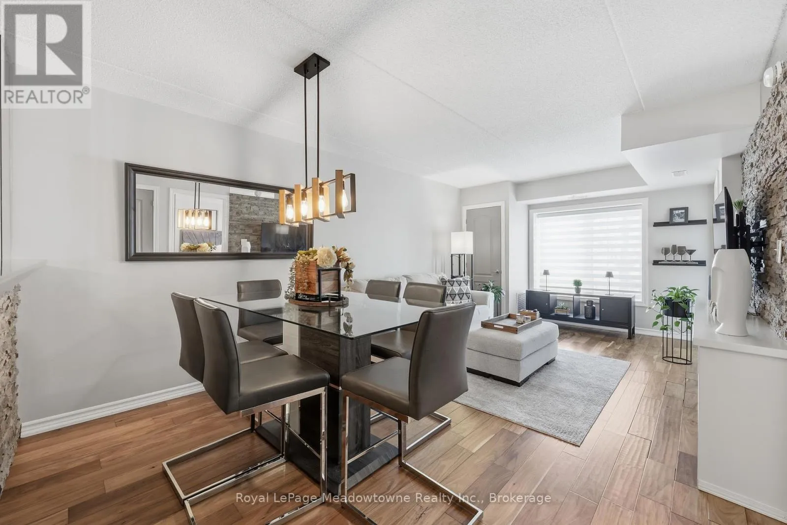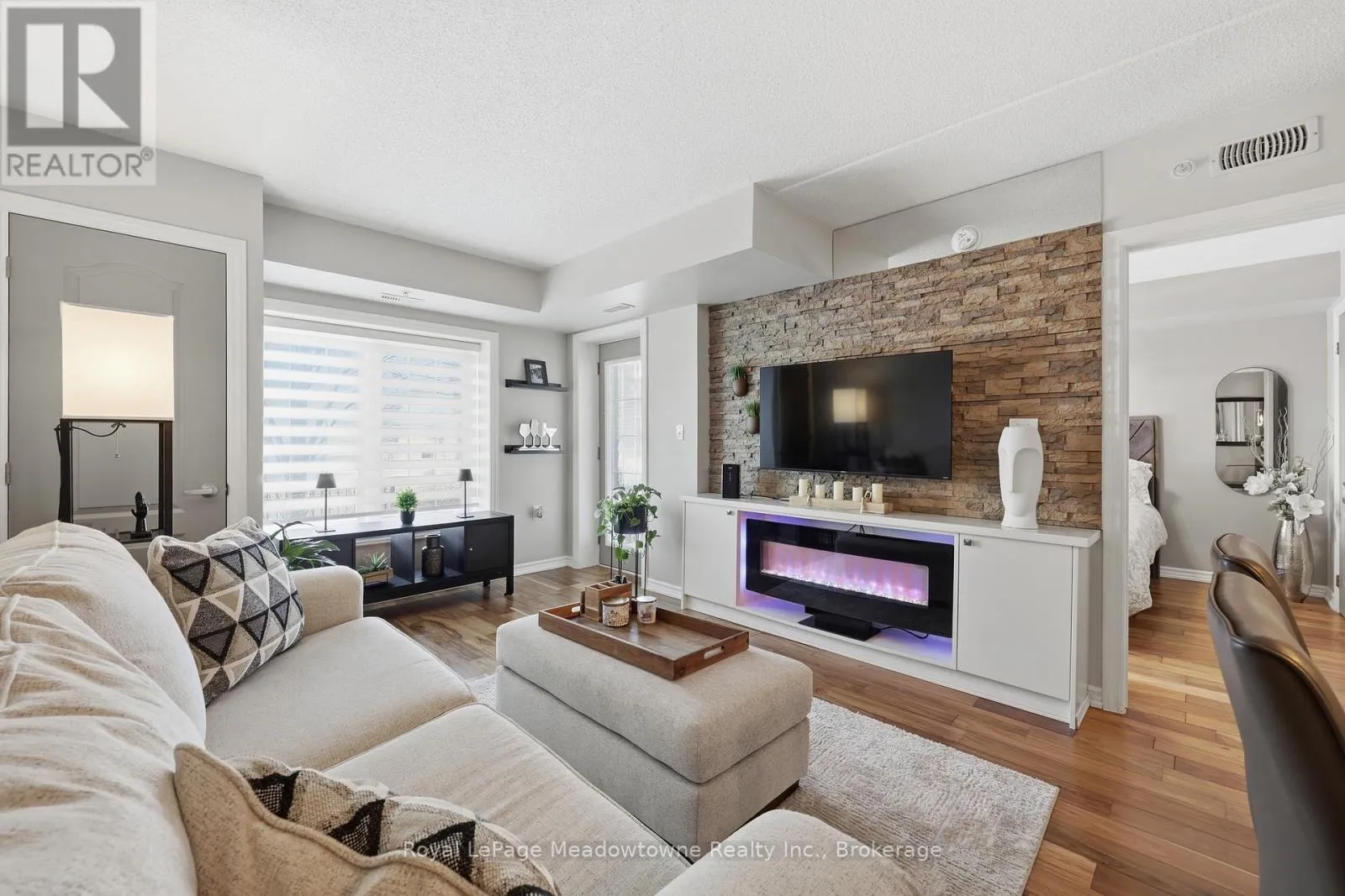 JAMES SNOW PKWY S TO MAIN STREET E Welcome home to this bright, freshly painted 1-bedroom condo that defines move-in ready! Perfectly suited for first-time buyers or downsizers, this unit features a spacious layout rarely found in 1-bedroom suites. The open-concept floor plan includes a dedicated large dining area, perfect for hosting dinner parties, which flows into a living space anchored by a cozy fireplace. The kitchen has been updated with brand new appliances, ensuring a modern cooking experience. Step through the French door to your private terrace; an extension of your living space. Practicality meets comfort with ensuite laundry, abundant storage, and an underground parking spot. Beyond the suite, the building offers a gym and party room. Location is excellent for commuters: you are steps from the bus stop and have quick access to the highway. (id:27476)