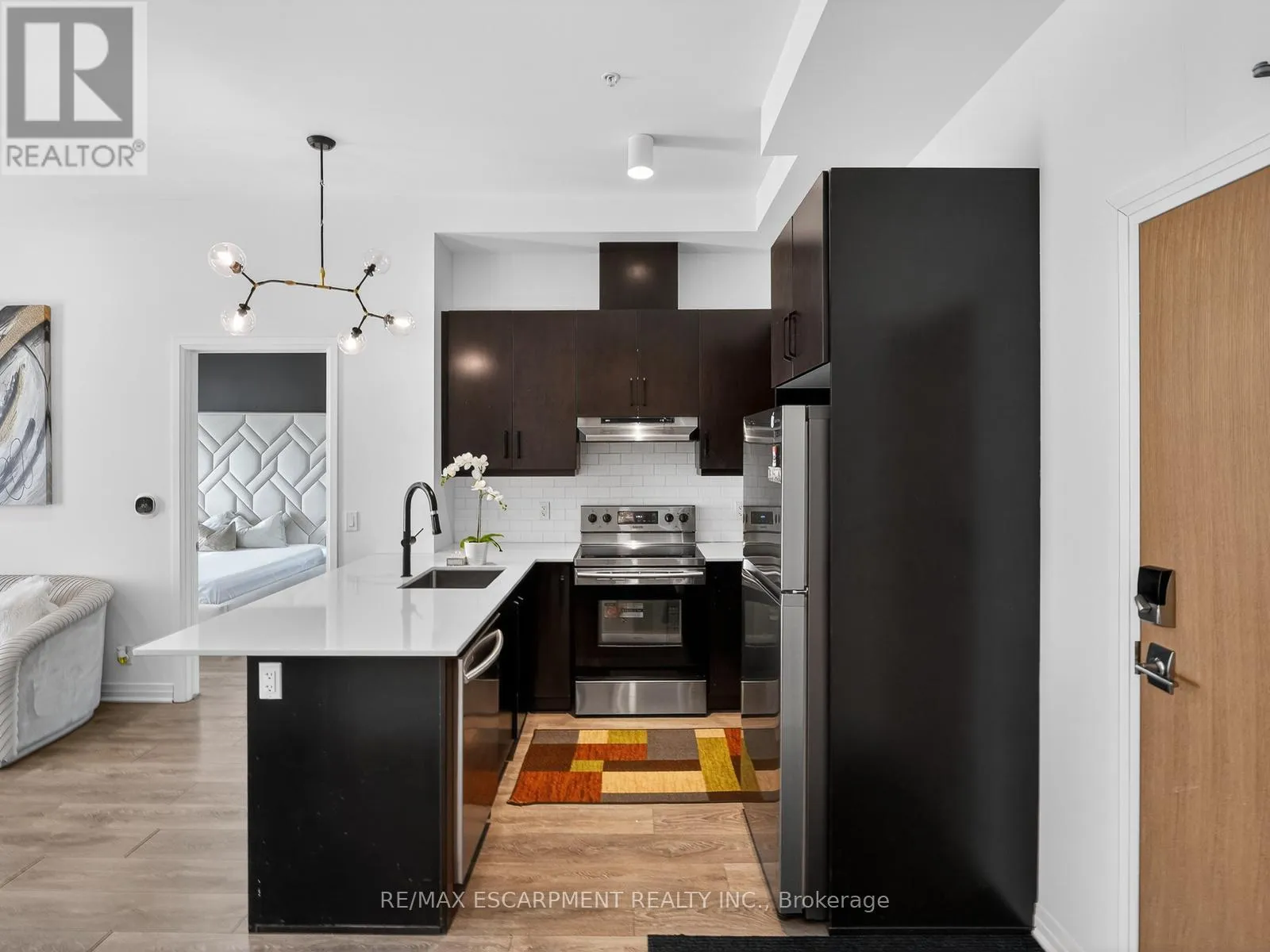 Cross Streets: LOUIS ST LAURENT AND LEGER. ** Directions: LOUIS ST LAURENT AND LEGE. Exceptional Top-Floor Condo - Bright, Spacious & Move-In Ready! Looking for a stylish, move-in-ready home in a competitive market? This stunning top-floor unit offers soaring 10-foot ceilings and abundant natural light, creating an inviting living space. The modern kitchen features stainless steel appliances, including a dishwasher, elegant quartz countertops, and ample cabinetry-perfect for entertaining and everyday living. Enjoy the convenience of a walk-in laundry closet, upgraded laminate flooring, and contemporary lighting fixtures that enhance the home's appeal. The bathroom's upgraded countertops and fixtures add a touch of luxury. Included with the unit are two parking spaces-one underground and one surface-as well as a storage locker for extra convenience. Located just minutes from top-rated schools, shopping, healthcare facilities, highways, and parks, this home combines accessibility with affordability. Don't miss out on this opportunity to own a beautifully updated home in a desirable location-an excellent investment in your future. (id:27476)