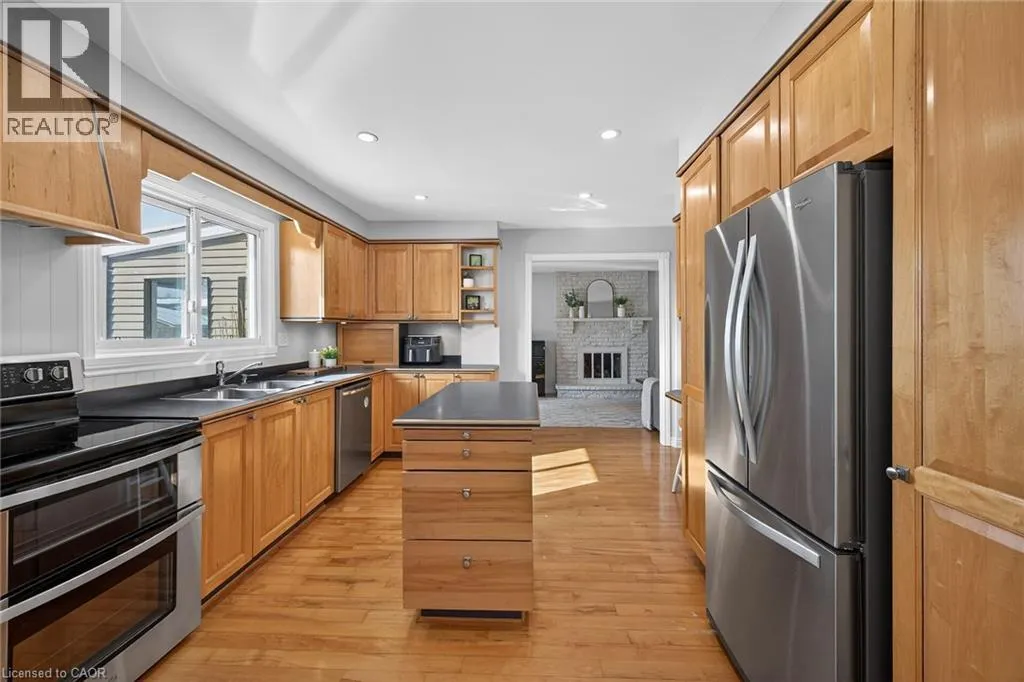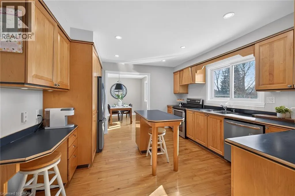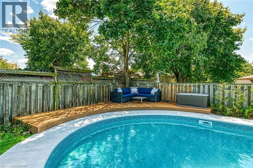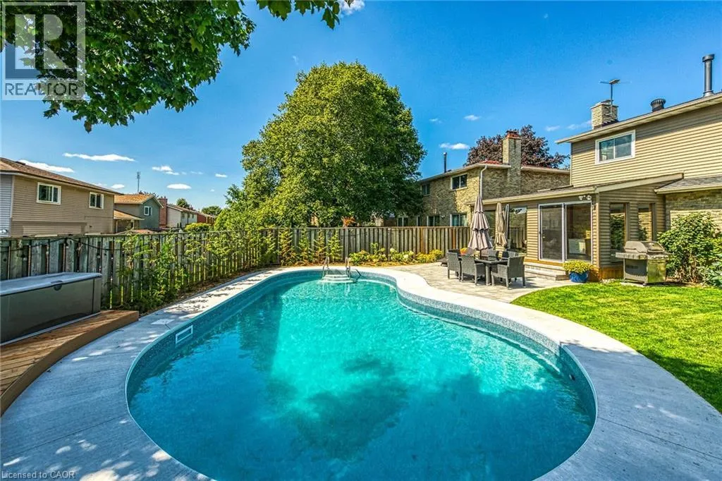 Welcome to this beautifully maintained family home in Miltonâs sought-after Timberlea neighbourhood, known for its great schools, parks, and welcoming community feel. Set on a quiet, child-friendly street where neighbours connect and kids play, this home offers the perfect setting to put down roots. Curb appeal shines with a four-car driveway, double garage with new garage door, and inviting front porch. Inside, the main floor features newly upgraded smooth ceilings with modern pot lights, creating bright, comfortable living spaces designed for everyday family life and entertaining alike. Enjoy a spacious living room, formal dining area, and cozy family room with fireplace, while the sun-filled 3-season sunroom offers the perfect spot to unwind while watching the kids enjoy the backyard. Step outside to your own summer retreat featuring a kidney-shaped in-ground pool with new lines, brand-new surrounding concrete and patio, and a new deck ideal for BBQs and gatherings, plus extra lawn space for kids and pets to play. The kitchen sits at the heart of the home, connecting seamlessly to the main living areas, while main floor laundry and a powder room add everyday convenience. Upstairs, the generous primary bedroom features a walk-in closet and private ensuite, while three additional bedrooms provide plenty of space for a growing family or home office needs. The partially finished basement offers additional living space, workshop potential, and storage ready to adapt as your familyâs needs evolve. A wonderful opportunity to own a move-in-ready home in one of Miltonâs most loved family communities. (id:27476)