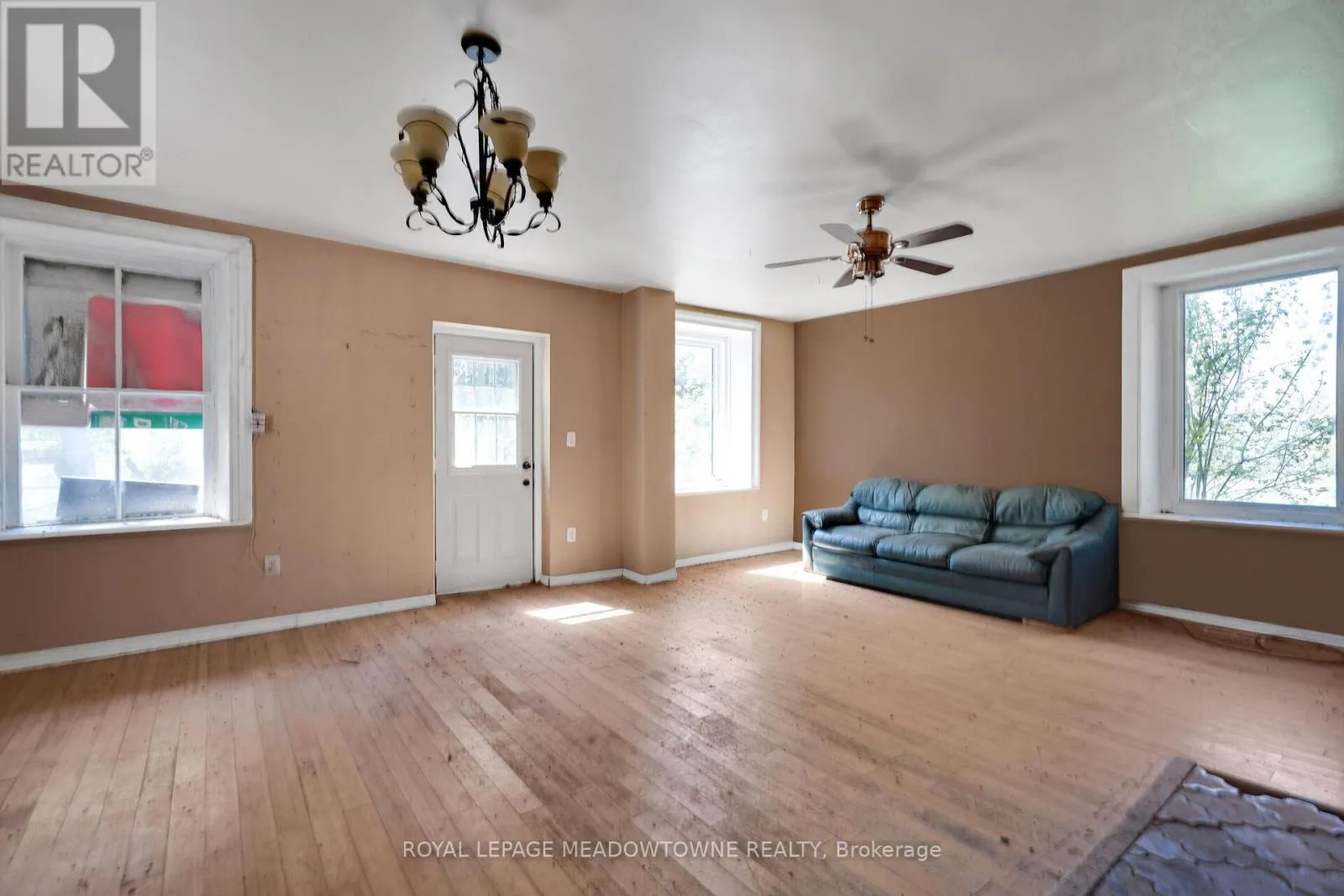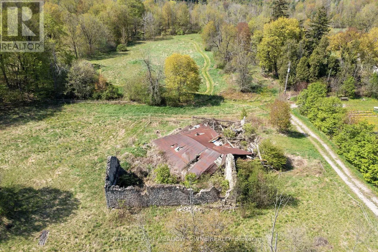 Cross Streets: N of Campbellville Rd S of 10th Sdrd. ** Directions: West of Guelph Line - north of Campbellville Road South 10 Sdrd. This rare scenic 83-acre-property - located just south of Hwy 401 and the Village of Moffat and north of Campbellville on a paved road. A beautiful blend of open fields and mature forest creates an idyllic setting for a private estate, recreational retreat or future homestead farm. At the heart of the property stands an 1890 Ashlar stone farmhouse with a metal roof. While not heritage designated, this 1 1/2 storey farmhouse that has withstood the test of time, proudly retaining the timeless beauty of its original exterior only. The Interior was renovated in the 1950's, it presents an exceptional opportunity to restore or incorporate its impressive stone facade into a truly magnificent custom estate home. Also on the property are the distinctive ruins of a grand 1890's stone bank barn. The barn's enduring footprint offers striking potential as a focal point for weddings, family gatherings, or film shoots - making it a unique feature full of rustic character. The property includes a very small portion of wetland in the north area regulated by Halton Conservation and Killbride Creek running through the northwest corner, bordering the Pioneer Creek Trail. The land is not within the NEC per their mapping, allowing more flexibility for building or returning the fields into cash crops. Padlocks existed in 2022. Convenient access to Hwy 6 and 401, Milton, and Campbellville makes this a superb location for commuters & those seeking a grand country lifestyle close to Town. This is a once-in-a-lifetime opportunity to own legacy farmland rich in history, natural beauty and endless future potential. Zoned Residential and A2 with no farm credit applied. The property may be subject to HST. The property has not been farmed for a long term. Two lots have been previously severed from the property. Frontage calculated by property width to the North and Southern lot lines. (id:27476)